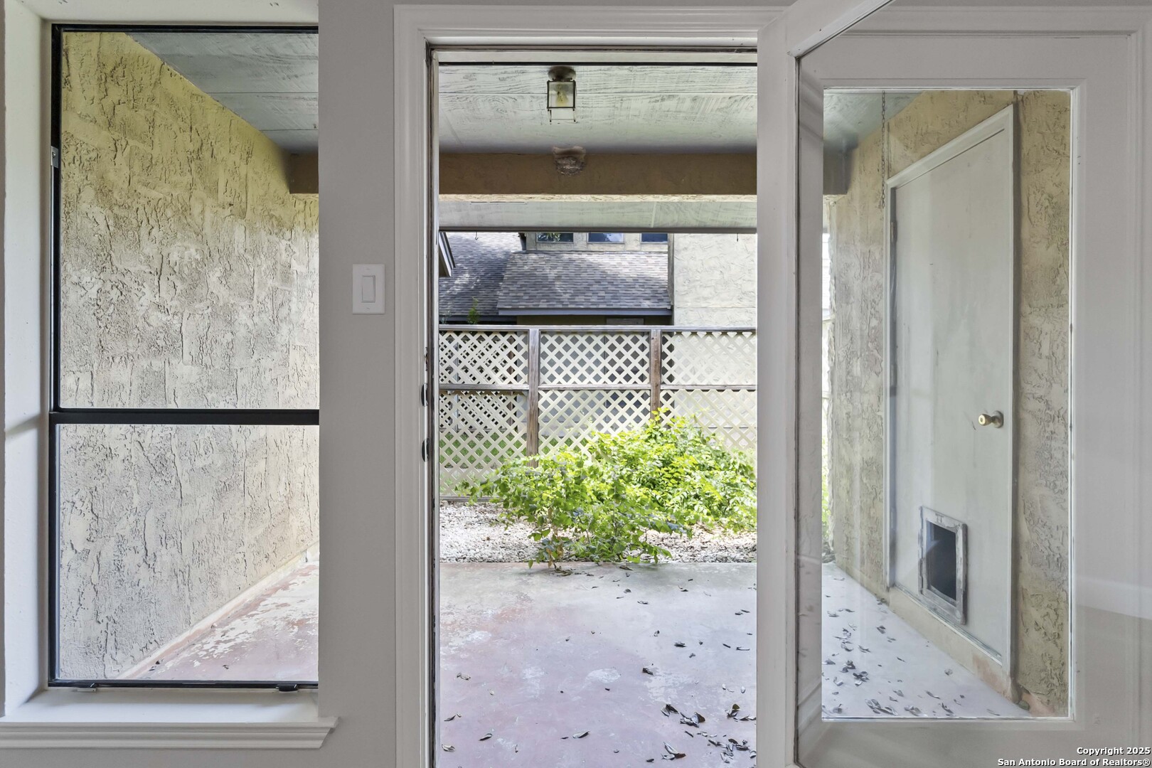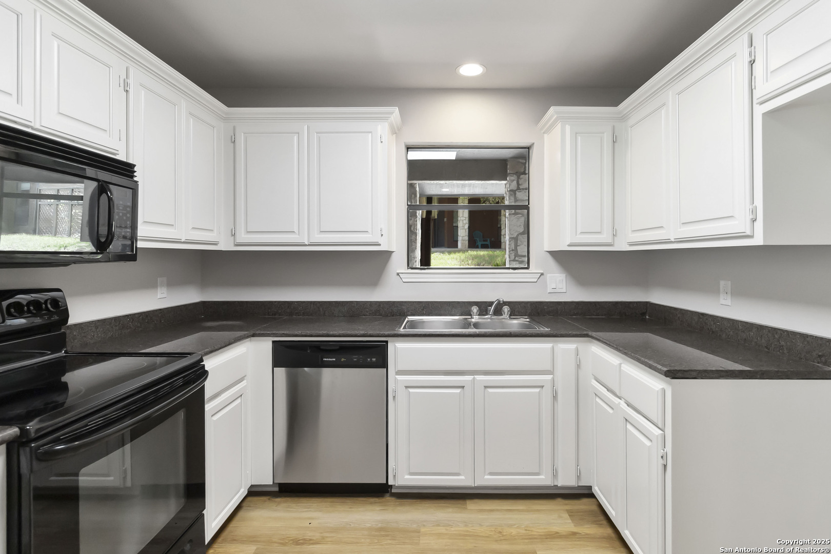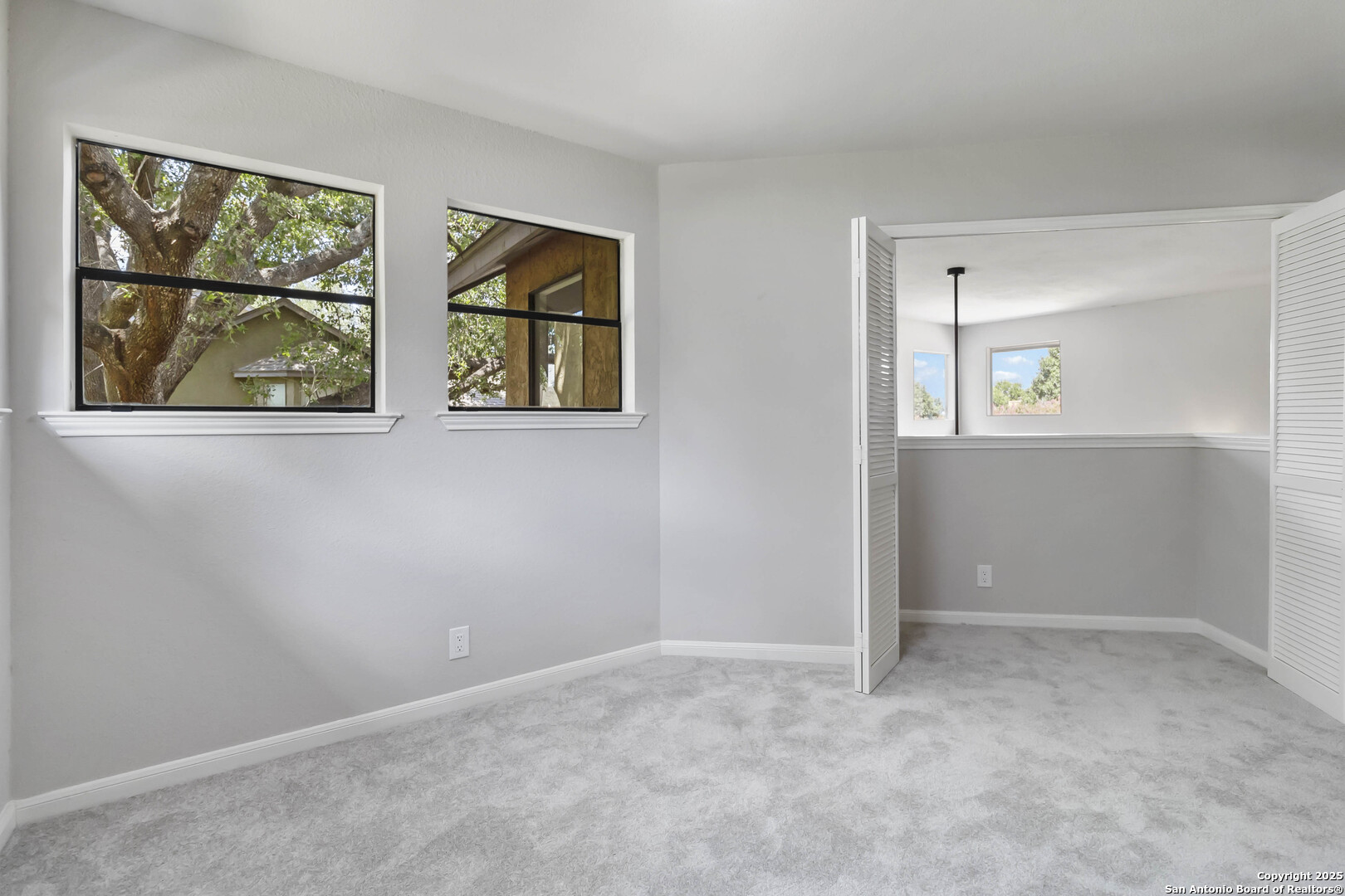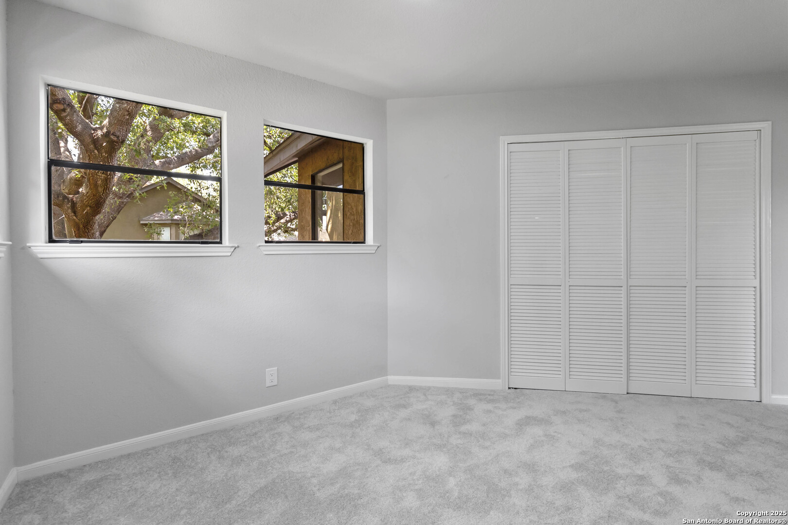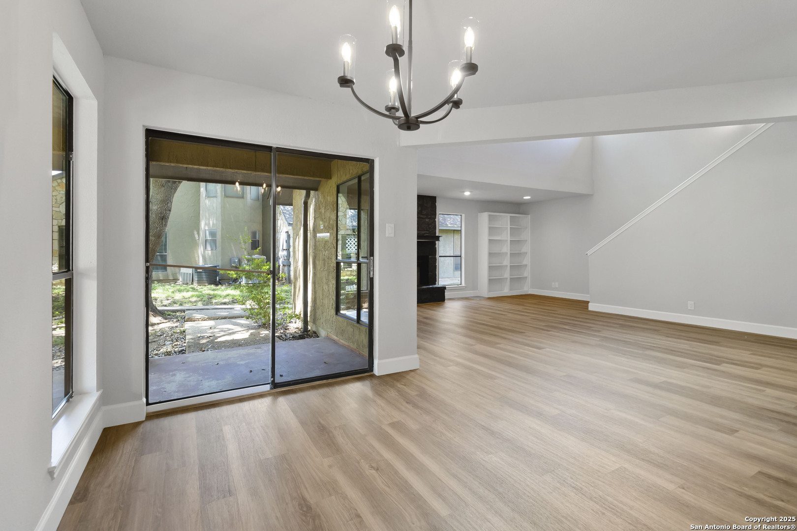 Welcome to 501 Thetford, a thoughtfully updated 3-bedroom, 2.5-bath condominium nestled in a charming gated community in San Antonio. This spacious home blends modern finishes with functional living across two well-designed levels. Step inside to discover brand new vinyl plank flooring on the main level and plush Shaw carpeting upstairs, all set against a freshly repainted backdrop in designer-selected hues. The downstairs primary suite offers privacy and comfort with a walk-in closet, fully equipped ensuite bath, and direct access to a serene private patio. The flexible third bedroom includes a built-in desk, making it perfect for a home office or creative space. A cozy living room features a wood-burning fireplace and wet bar-ideal for both relaxation and entertaining-while the kitchen shines with granite countertops and a double-basin sink. Upstairs, two additional bedrooms provide separation and quiet, perfect for guests or family. Enjoy the benefits of community living with access to a well-maintained clubhouse and sparkling pool.