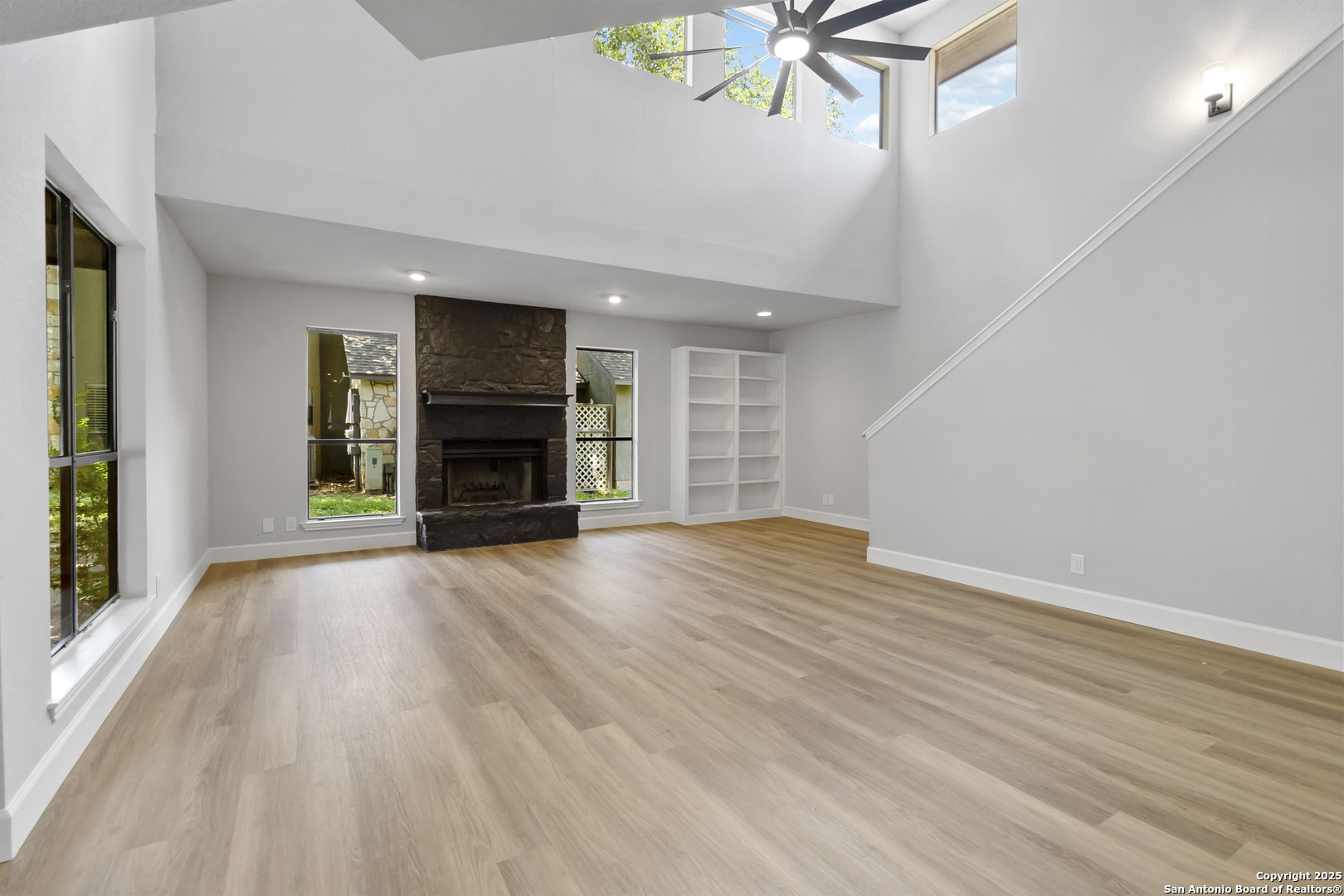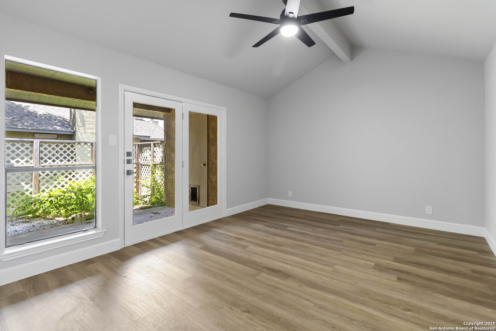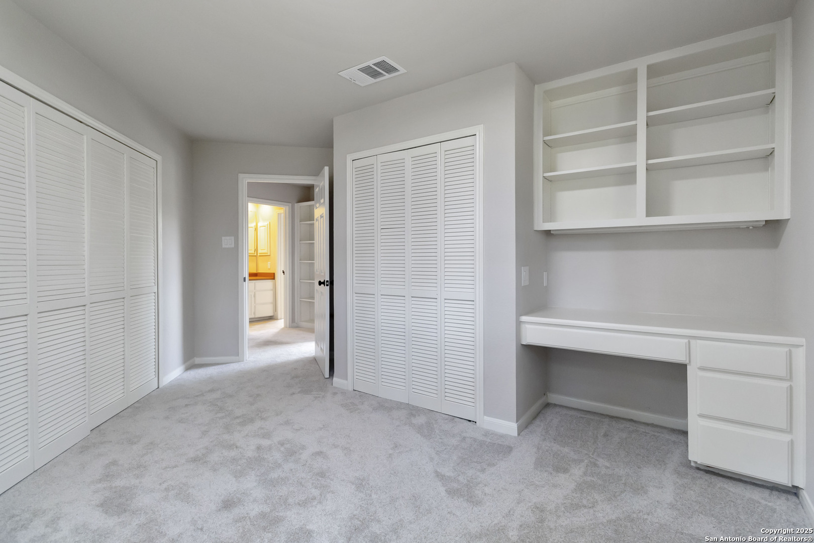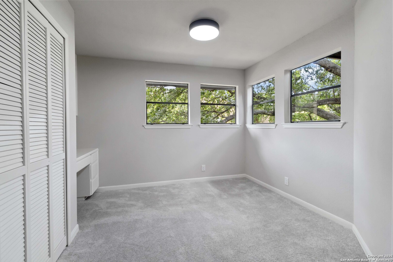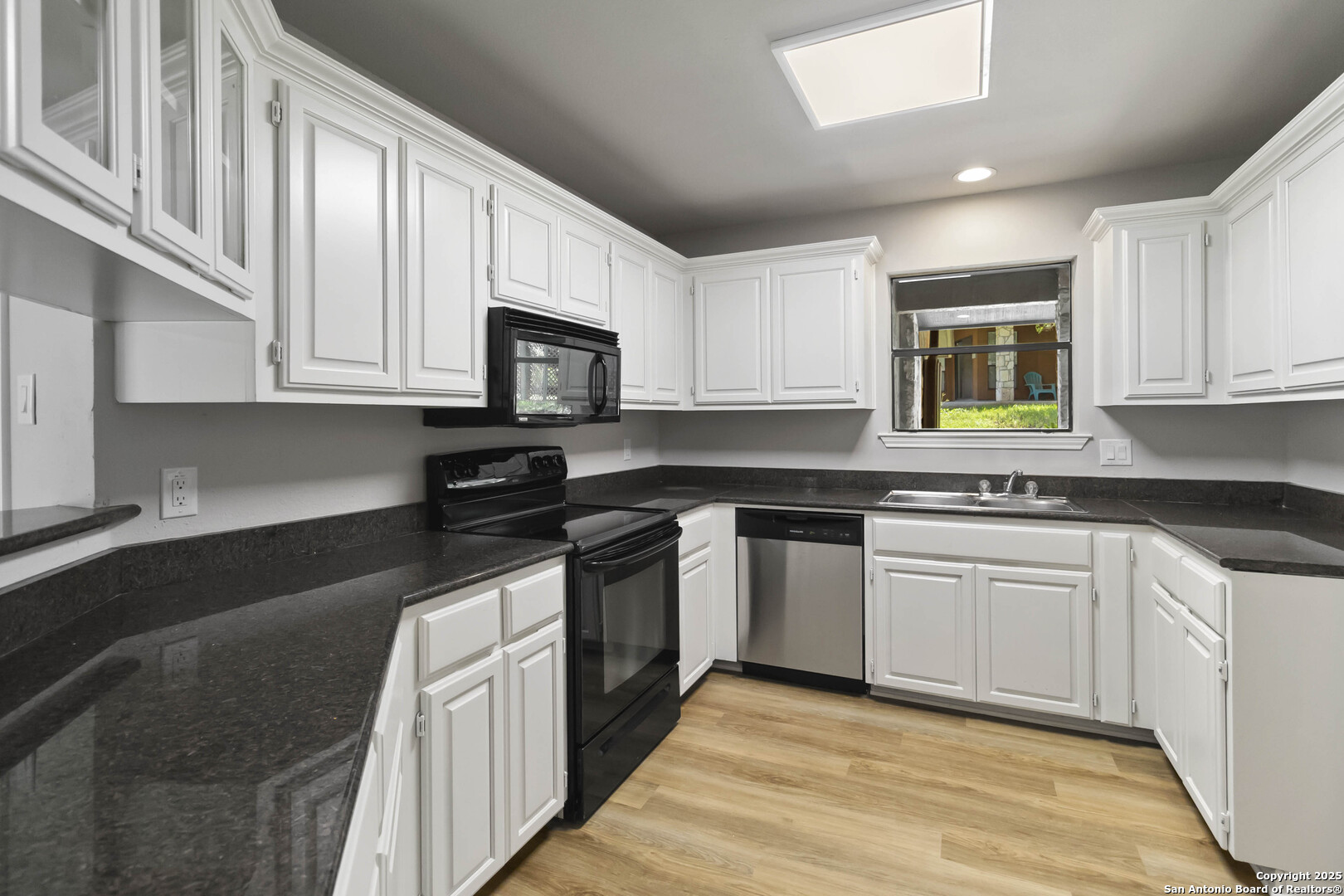 Welcome to 501 Thetford, a thoughtfully updated 3-bedroom, 2.5-bath condominium nestled in a charming gated community in San Antonio. This spacious home blends modern finishes with functional living across two well-designed levels. Step inside to discover brand new vinyl plank flooring on the main level and plush Shaw carpeting upstairs, all set against a freshly repainted backdrop in designer-selected hues. The downstairs primary suite offers privacy and comfort with a walk-in closet, fully equipped ensuite bath, and direct access to a serene private patio. The flexible third bedroom includes a built-in desk, making it perfect for a home office or creative space. A cozy living room features a wood-burning fireplace and wet bar-ideal for both relaxation and entertaining-while the kitchen shines with granite countertops and a double-basin sink. Upstairs, two additional bedrooms provide separation and quiet, perfect for guests or family. Enjoy the benefits of community living with access to a well-maintained clubhouse and sparkling pool.