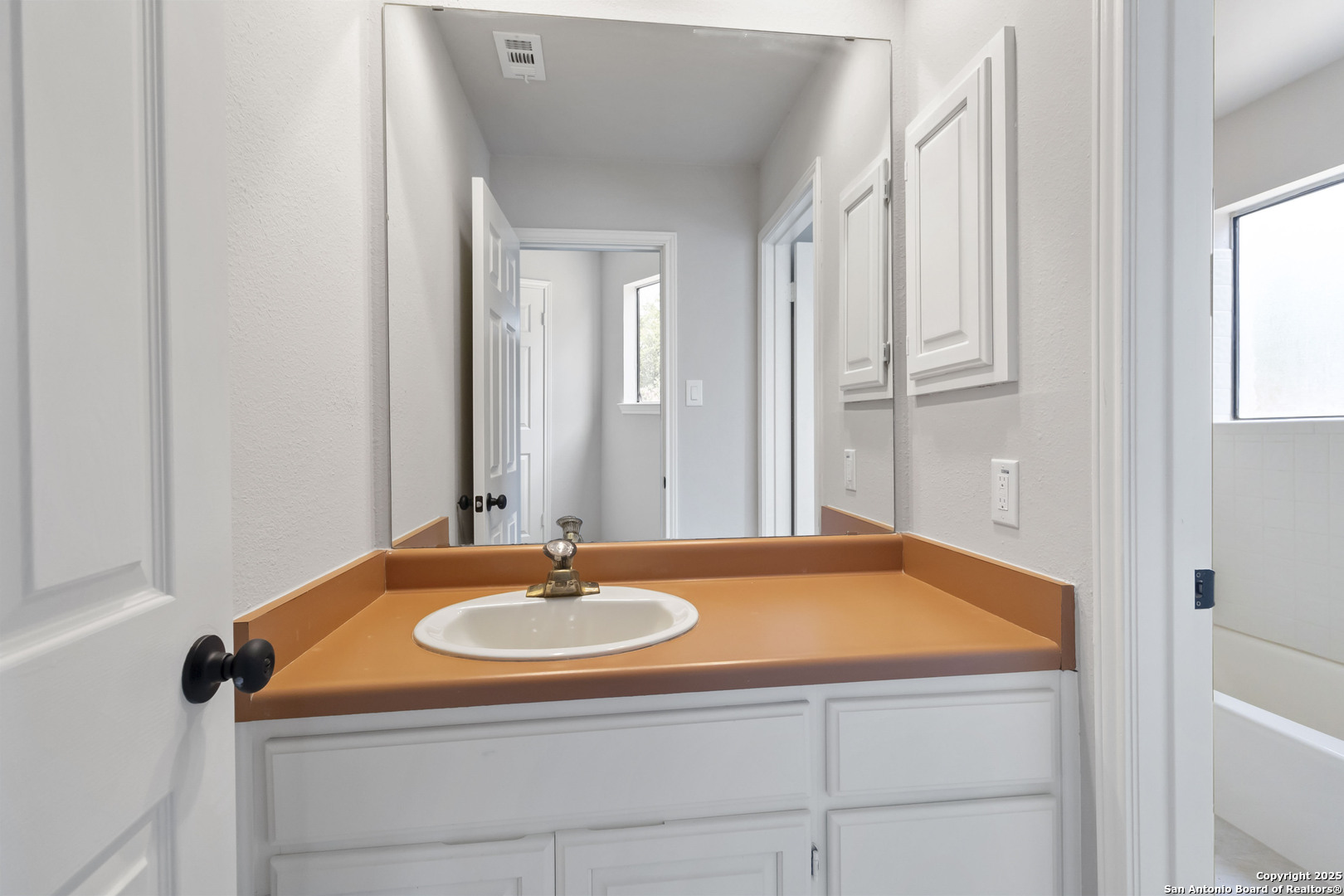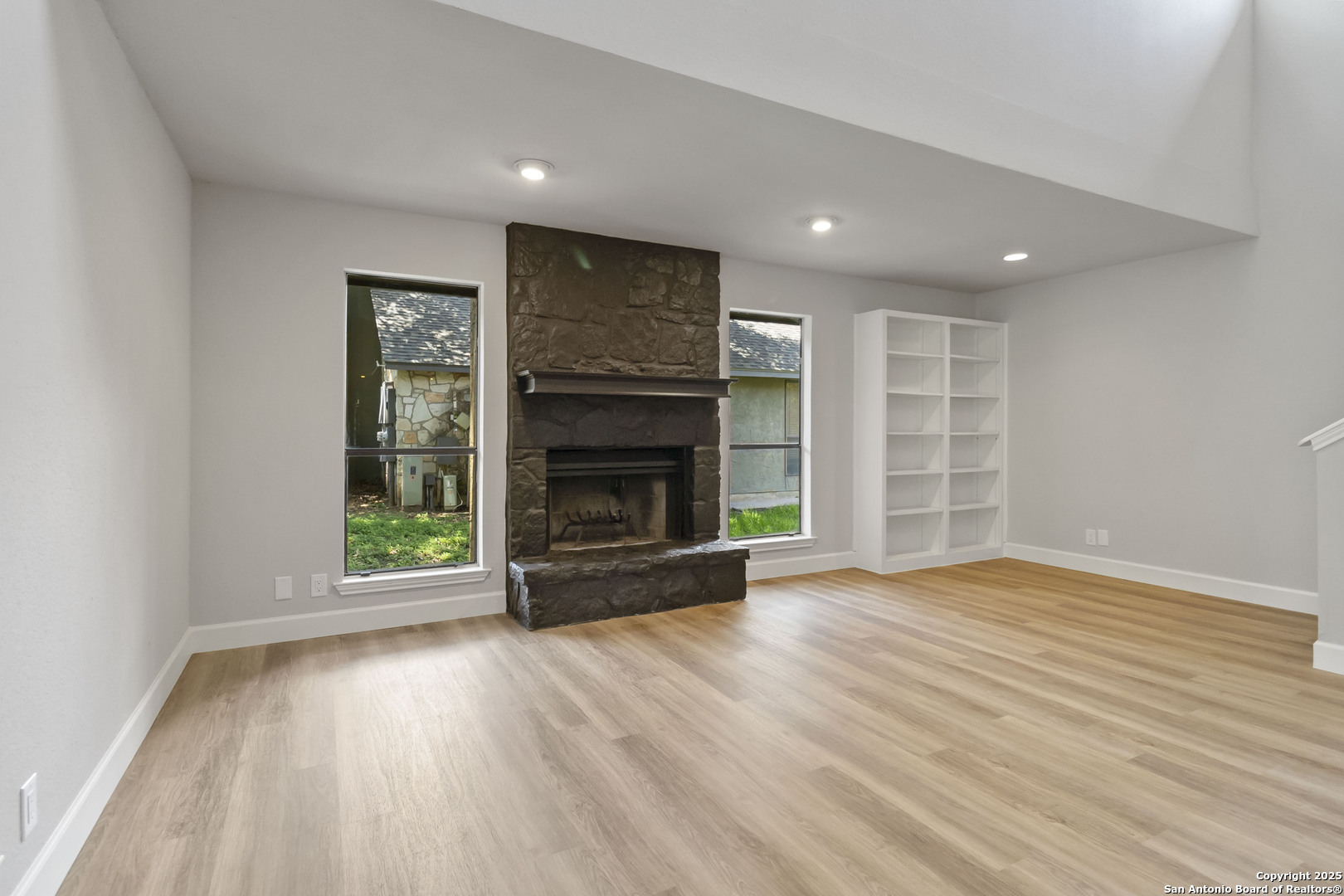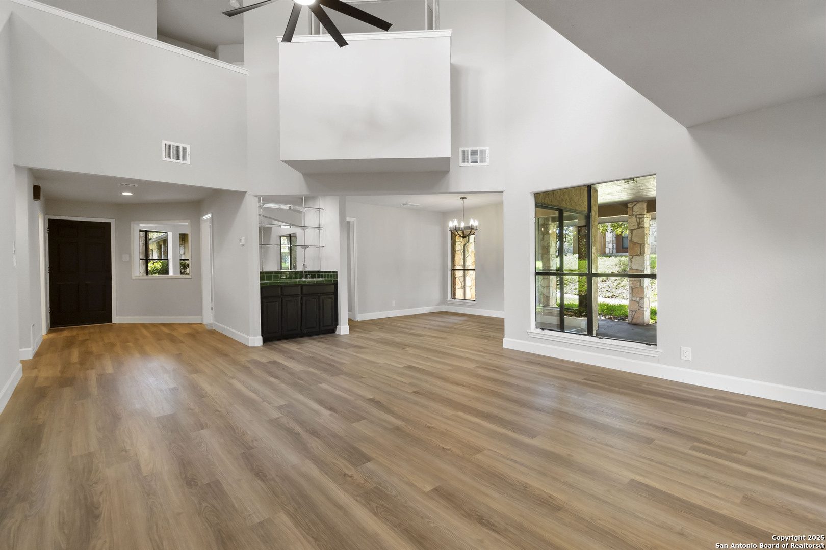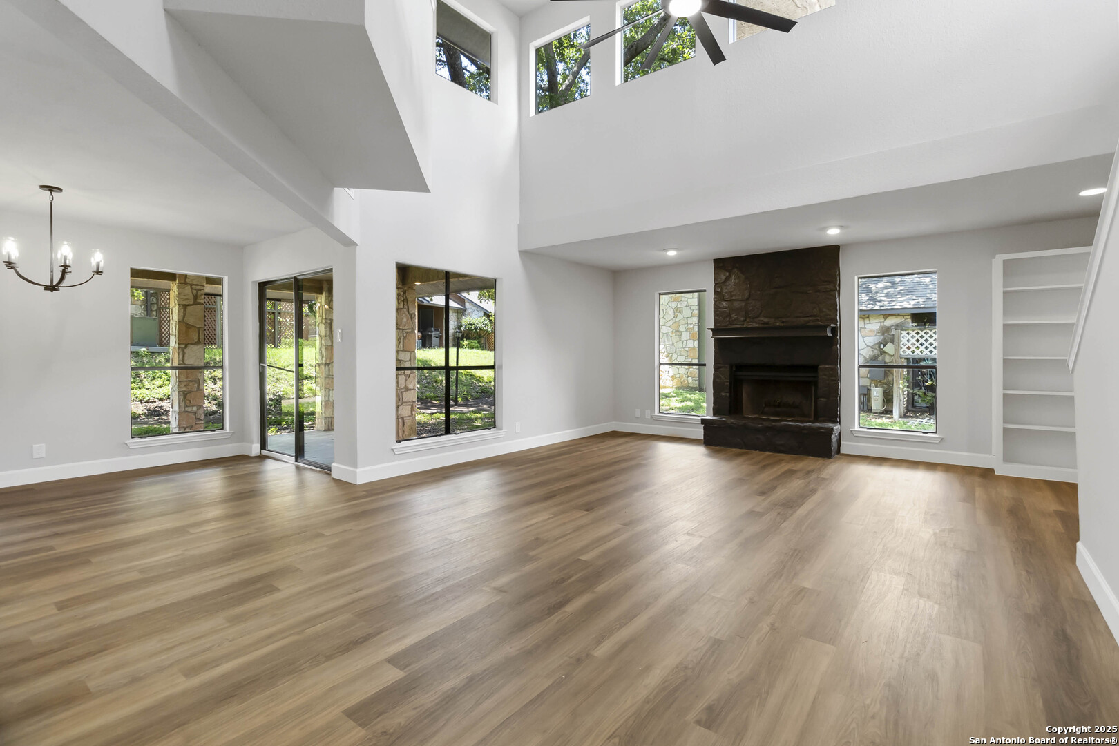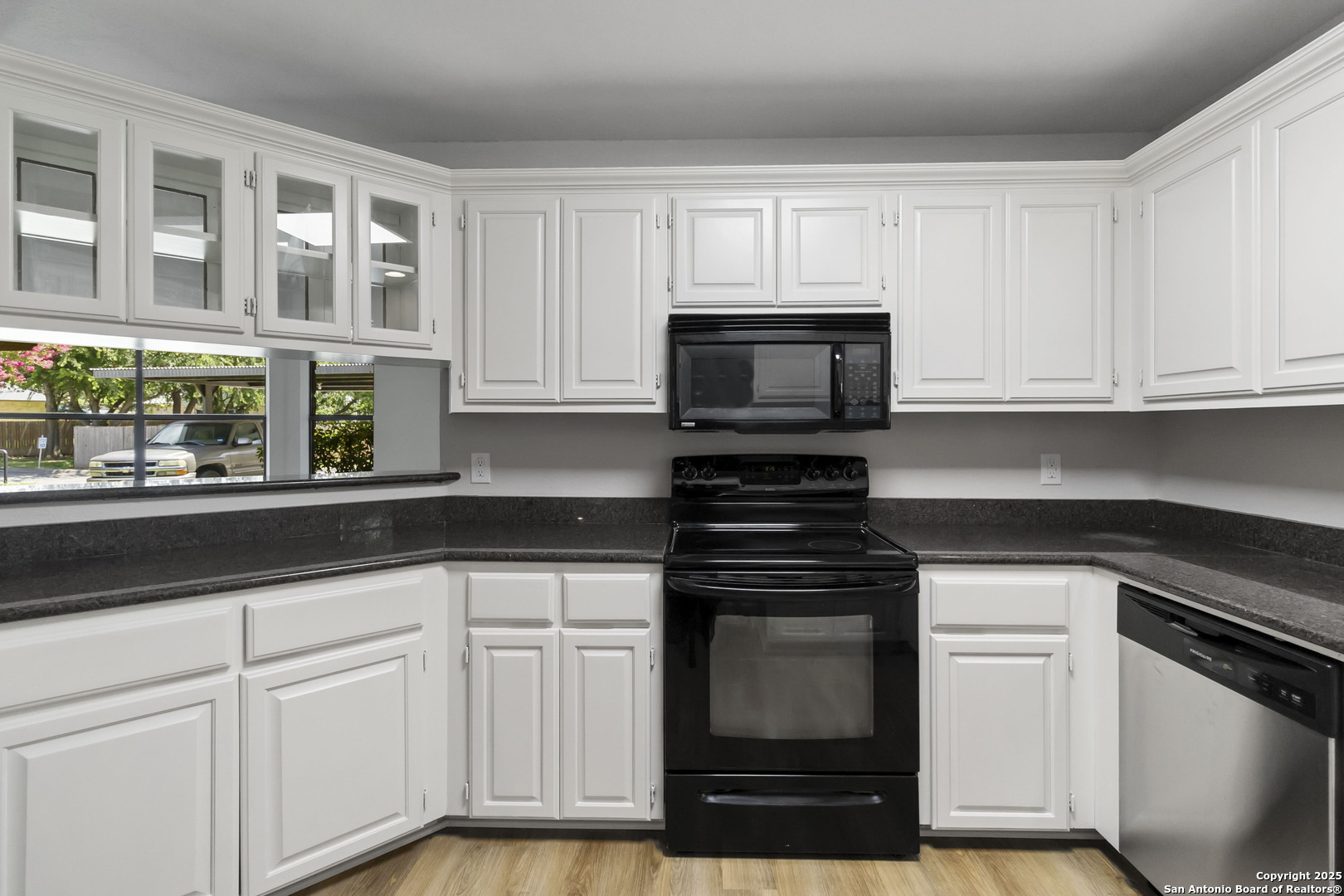 Welcome to 501 Thetford, a thoughtfully updated 3-bedroom, 2.5-bath condominium nestled in a charming gated community in San Antonio. This spacious home blends modern finishes with functional living across two well-designed levels. Step inside to discover brand new vinyl plank flooring on the main level and plush Shaw carpeting upstairs, all set against a freshly repainted backdrop in designer-selected hues. The downstairs primary suite offers privacy and comfort with a walk-in closet, fully equipped ensuite bath, and direct access to a serene private patio. The flexible third bedroom includes a built-in desk, making it perfect for a home office or creative space. A cozy living room features a wood-burning fireplace and wet bar-ideal for both relaxation and entertaining-while the kitchen shines with granite countertops and a double-basin sink. Upstairs, two additional bedrooms provide separation and quiet, perfect for guests or family. Enjoy the benefits of community living with access to a well-maintained clubhouse and sparkling pool.