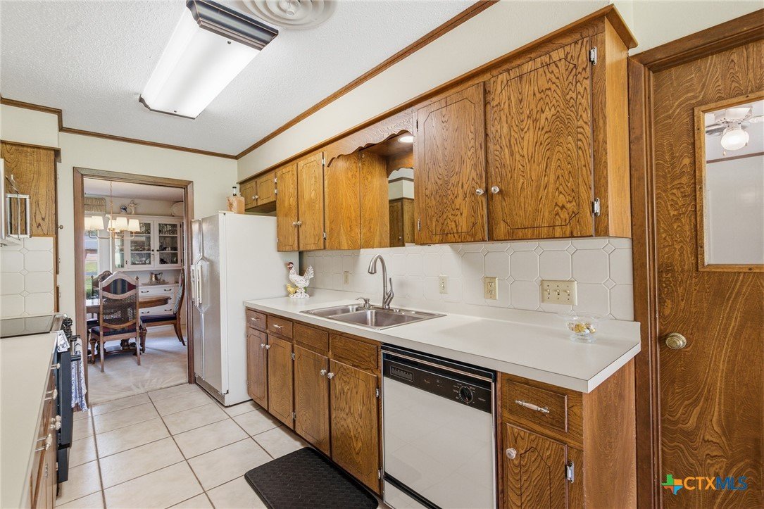 Beautifully maintained home in Northcrest area, on over half an acre, in immaculate condition, proudly & meticulously cared for by the original owner. This 3 bedroom, 2 bath property features a manicured lawn & well kept landscaping beds, offering fantastic curb appeal & plenty of outdoor space to enjoy. It even includes a convenient working water well, along with a full yard sprinkler system. Inside this lovely home, you will find a spacious & functional layout with two living areas & two dining spaces, perfect for both entertaining & day-to-day living. A wood burning fireplace adds warmth & charm to the main living area. Outside, you are welcomed by a huge covered patio with cathedral wood stained ceilings, creating the perfect space for relaxing or hosting gatherings year round. Major updates include an all new roof in 2018 & a hot water heater just 2 years old, providing peace of mind for years to come. The home also features a large utility room, complete with a refrigerator & laundry sink for added convenience. The 2 car attached garage includes a large interior storage room, while the detached third car garage offers additional parking, workshop space, or extra storage. This home truly reflects pride of ownership & is move-in ready. This is an exceptional opportunity you won't want to miss. Kitchen refrigerator also conveys with an acceptable offer.