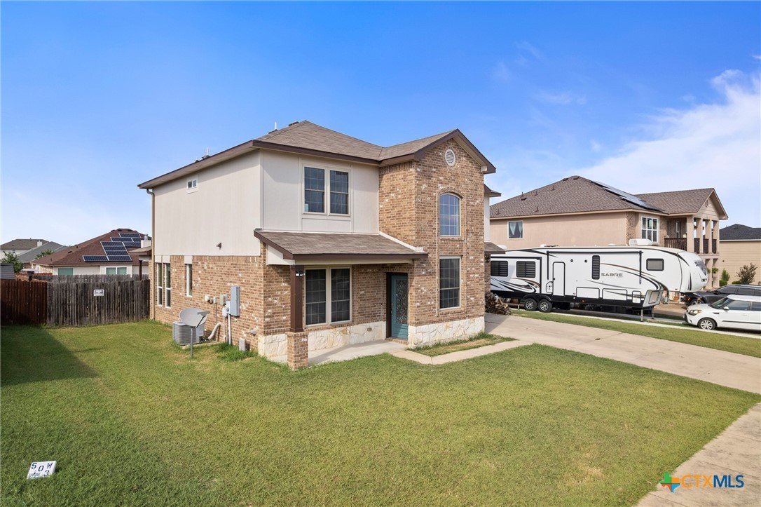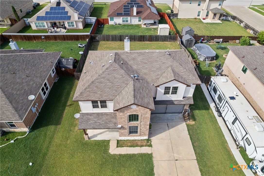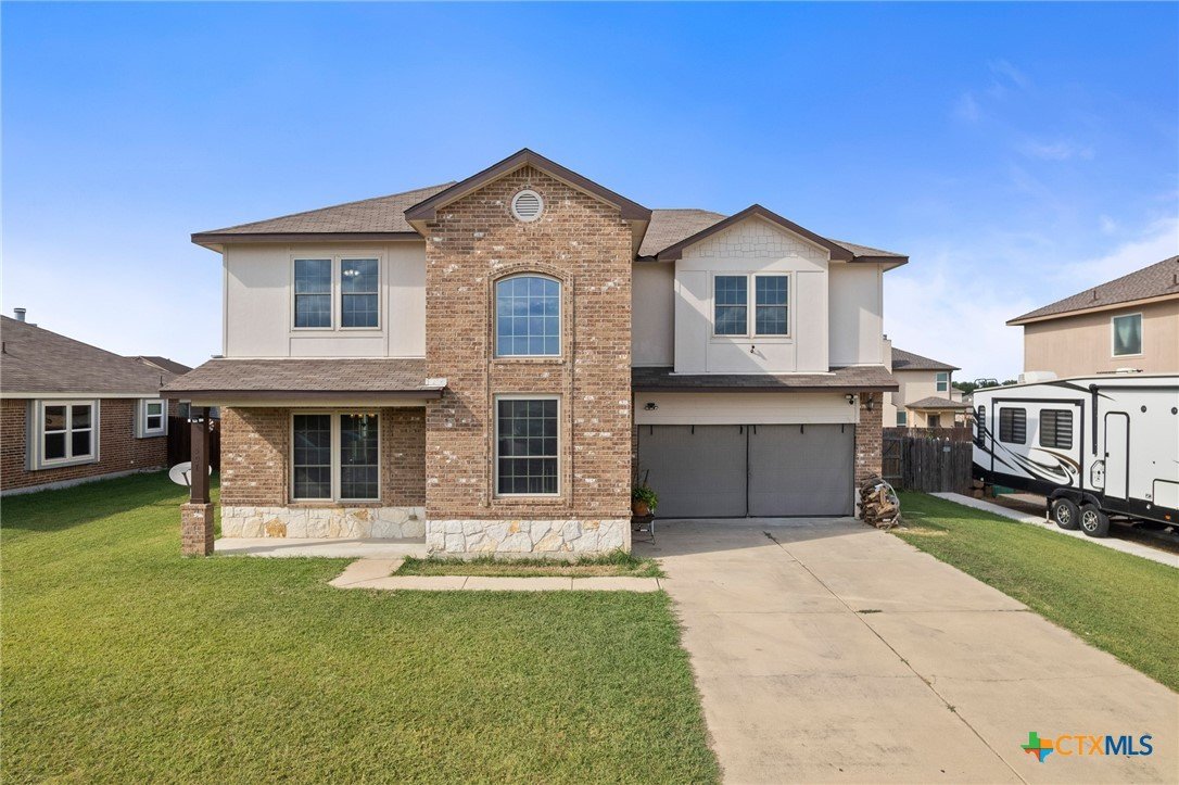 Step into this custom-built Saratoga Built, featuring a spacious floor plan with four total bedrooms, two and a half baths, and a generous office/flex space that can easily be converted into a fifth bedroom or an ideal workspace. Located in No HOA Trimmier Estates, this property is centrally located 15 minutes from Fort Hood military base, has quick access to Highway 195, and all amenities within a five-mile radius of medical services, shopping centers, restaurants, entertainment, and schools. As you enter the foyer, you will be led to your open floor-plan living area, which is suitable for gatherings and relaxation and creates a cozy atmosphere paired perfectly with a wood-burning fireplace. The aroma of delicious meals will fill this chef's kiss kitchen with its stunning tiled backsplash, stainless steel appliances, and custom cabinetry. The granite countertops provide a sleek and modern look. Escape to the luxurious primary suite on the secondary floor, tucked away in the right wing of the home, offering ultimate privacy and tranquility with his and her vanities, a walk-in closet, and a beautifully built bathtub that creates an experience with a large walk-in shower and garden tub. The secondary bedrooms are situated in the left wing of the house, optimizing the spacious sizes of the bedrooms and walk-in closets for a functional layout. The covered rear patio offers ample room for outdoor enjoyment. The house's design creates a relaxing and serene ambiance. It is a perfect retreat for anyone. Take advantage of the opportunity to experience the luxury and comfort of this home. Contact your favorite realtor and schedule a showing today!