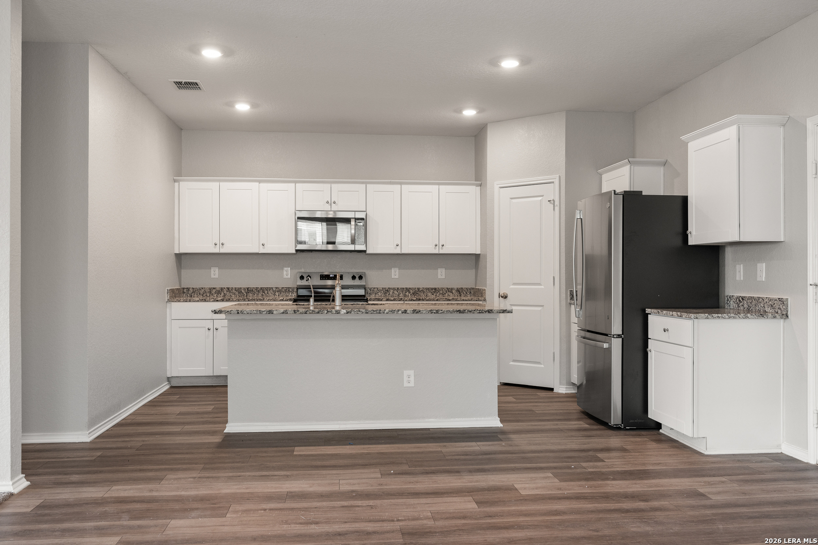 Experience the perfect blend of modern design and community living in this stunning 5-bedroom, 3-bathroom home. Built in 2021 and meticulously maintained, this "like-new" residence boasts an expansive open floor plan that seamlessly connects the gourmet island kitchen-featuring granite countertops and stainless steel appliances-to a sun-drenched living area. The rare 5-bedroom layout includes a convenient downstairs bedroom, perfect for guests or a home office. Escape to the oversized primary suite featuring a luxurious walk-in shower and massive closet. Step outside to your private, fenced backyard, or enjoy Meridian's resort-style amenities including an infinity-edge pool, splash pad, and community garden. Located in the prestigious Medina Valley ISD and just minutes from Lackland AFB and Alamo Ranch shopping.