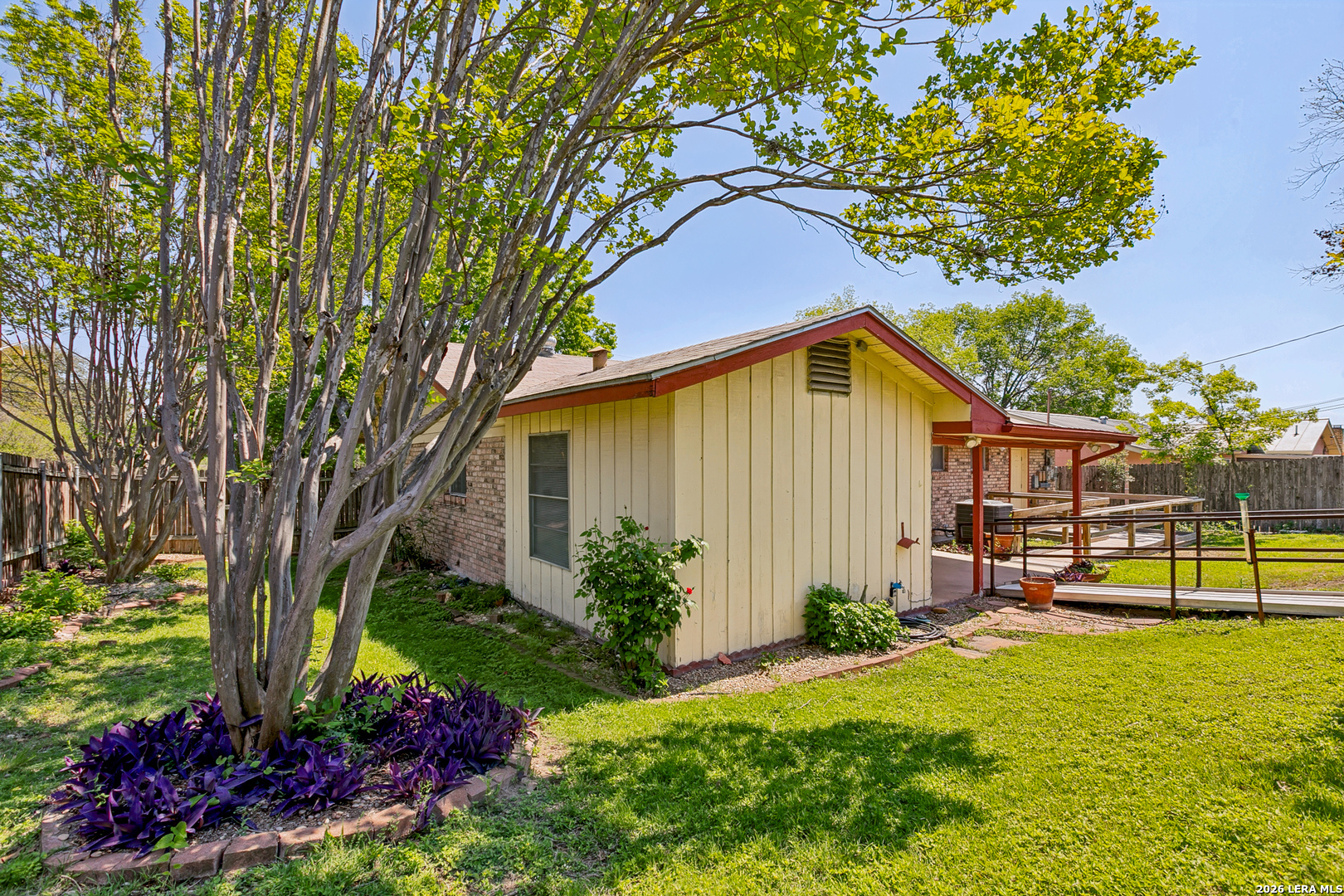 Charming single-story home offering 3 bedrooms, 2 bathrooms, and 1,806 square feet of comfortable living space plus detached apartment with bathroom and kitchenette. This home features a spacious living area and a large kitchen with breakfast area, perfect for everyday living & entertaining. Step outside to enjoy the covered patio. Freshly painted with new ceiling fans and new window blinds, this home is truly move-in ready. In addition to the bedrooms, the property includes a dedicated office and a separate workroom, providing flexible space for remote work, hobbies, or storage. One of the bathrooms has been updated for handicap accessibility, offering added convenience and functionality.A standout feature is the detached apartment complete with its own bathroom and kitchenette - perfect for extended family, guests, rental income, or Airbnb opportunities. With its flexible layout and additional living space, this property offers both convenience and versatility. Washer, dryer, and refrigerator convey with the sale. Don't miss this unique opportunity to own a single story home with income potential and room to grow.