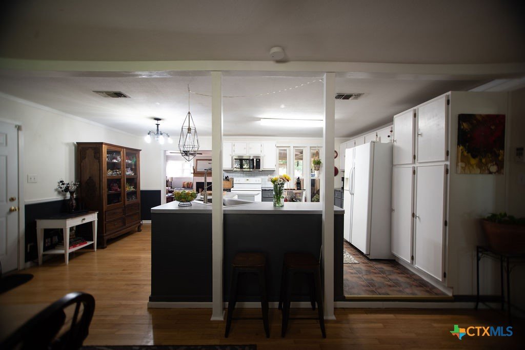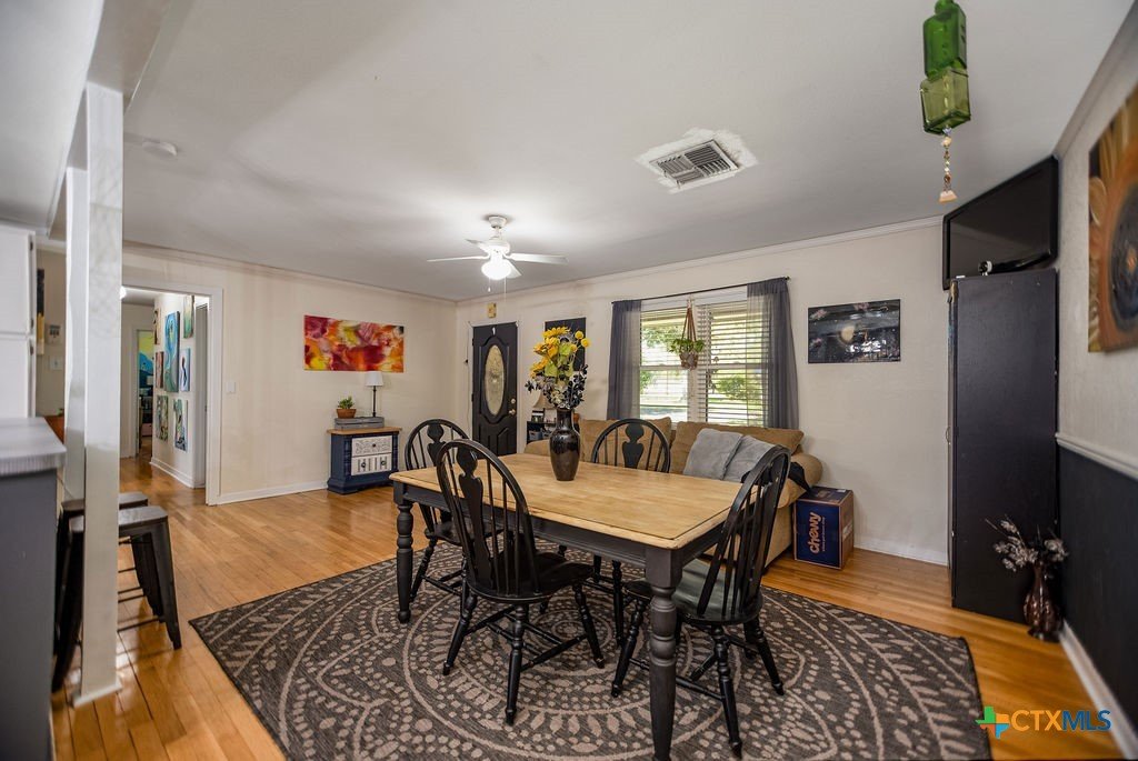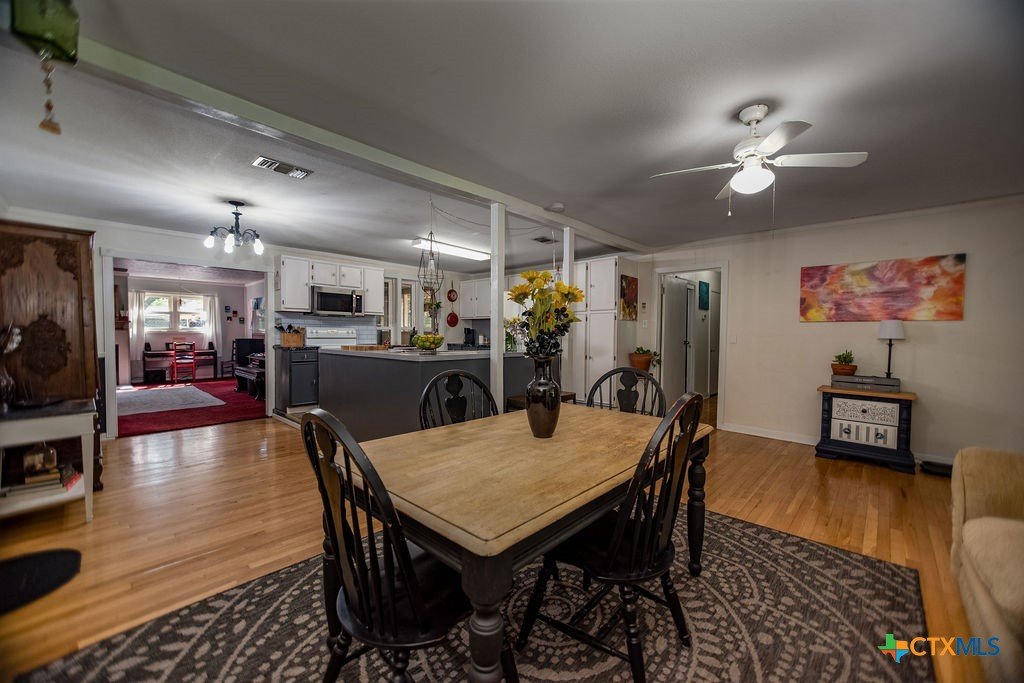 This charming 3 bedroom, 2 bath ranch style home is ideally located on a quiet, tree-lined street in the heart of El Campo, just minutes from schools, shopping, and local conveniences. Step inside to a welcoming layout that blends comfort and functionality. The open kitchen offers clear sightlines to the living room, dining area, and cozy family room, making it ideal for everyday living and entertaining. The family room features a wood-burning fireplace, a full bath, and direct access to the screened-in porch, perfect for enjoying the outdoors year-round. Additional highlights include:wood flooring, with carpet in the oversized primary bedroom and family room Double-pane windows for energy efficiency, Roof replaced in 2020, entire HVAC replaced in 2021, Attached garage with utility space Nice-sized backyard patio for relaxing or entertaining This well-maintained home offers great value in a sought-after neighborhood. Contact your agent today to schedule a showing.