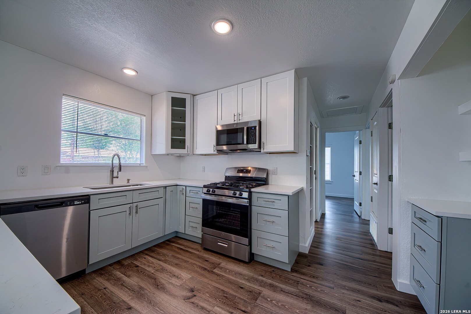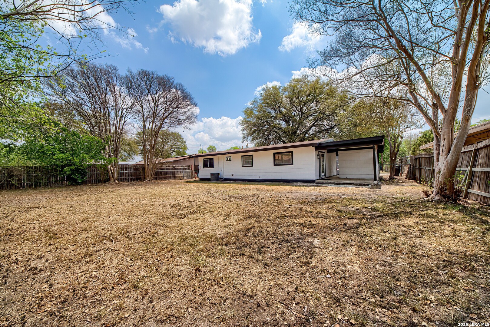 Welcome home to this beautifully renovated 3bedroom, 1 bath home offering 1,032 square feet of modern comfort and style. This move in ready property features fresh finishes, contemporary touches, and a spacious layout perfect for everyday living. Step inside to brand new vinyl plank flooring that flows seamlessly throughout the home, creating a clean and cohesive look. The beautifully tiled bathroom has been fully upgraded with modern fixtures and elegant details, providing a fresh and inviting space to unwind. The bright kitchen and open living areas make the home feel warm and welcoming, while each bedroom offers comfort and flexibility-ideal for family, guests, or a home office. Outside, the large backyard provides endless possibilities for entertaining, gardening, pets, or future expansion. Convenience is unmatched with easy access to I10, I35, I-37 and Loop 410. Located within 15 minutes of San Antonio International Airport and downtown San Antonio, you're never far from shopping, dining, entertainment, and major employers. Plus, you're just 7 minutes from BAMC and 20 minutes from Randolph AFB, making this an exceptional option for military personnel or anyone seeking quick commute times. With modern renovations, a generous yard, and a prime location, this home is the perfect blend of comfort and convenience. Schedule your showing today!