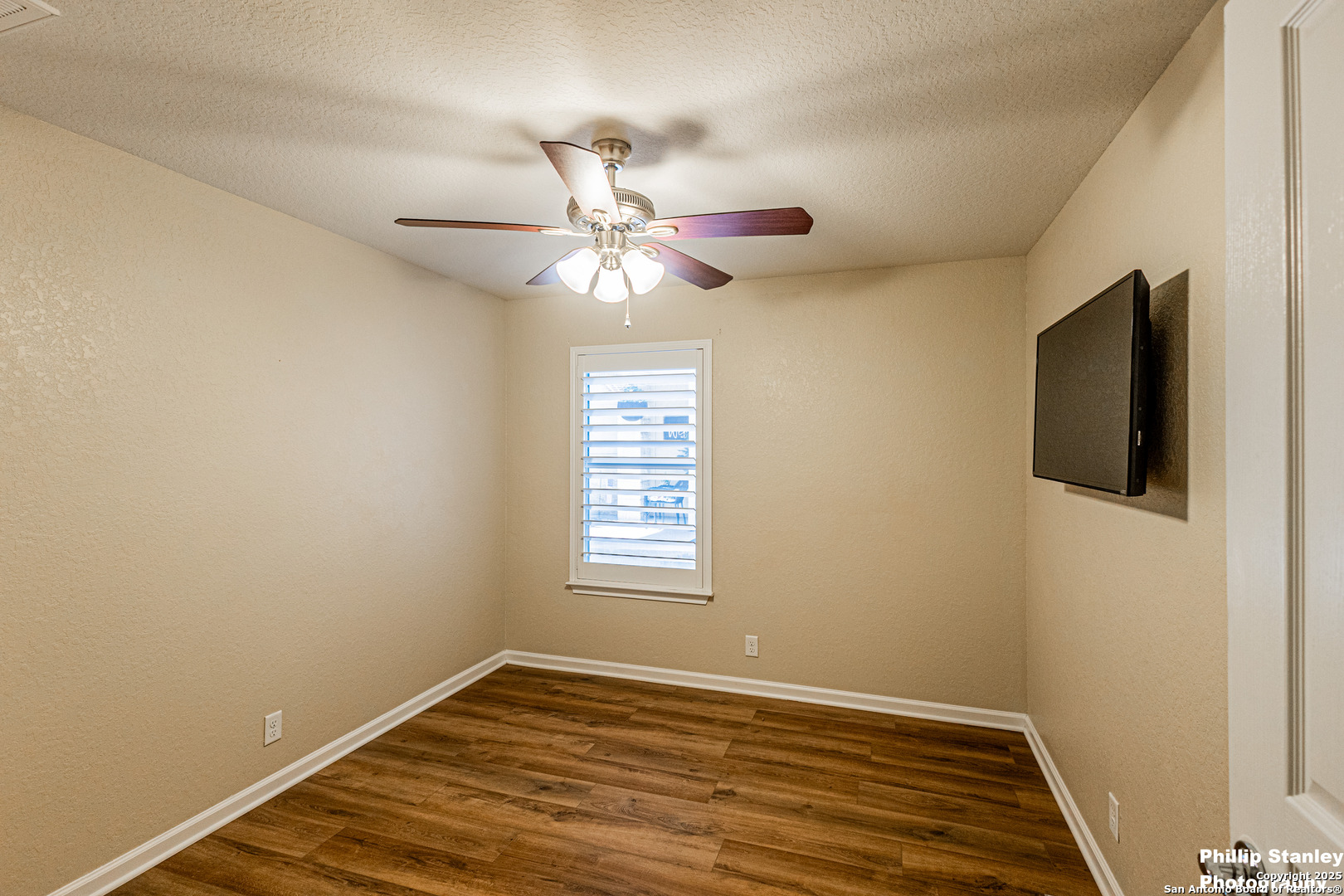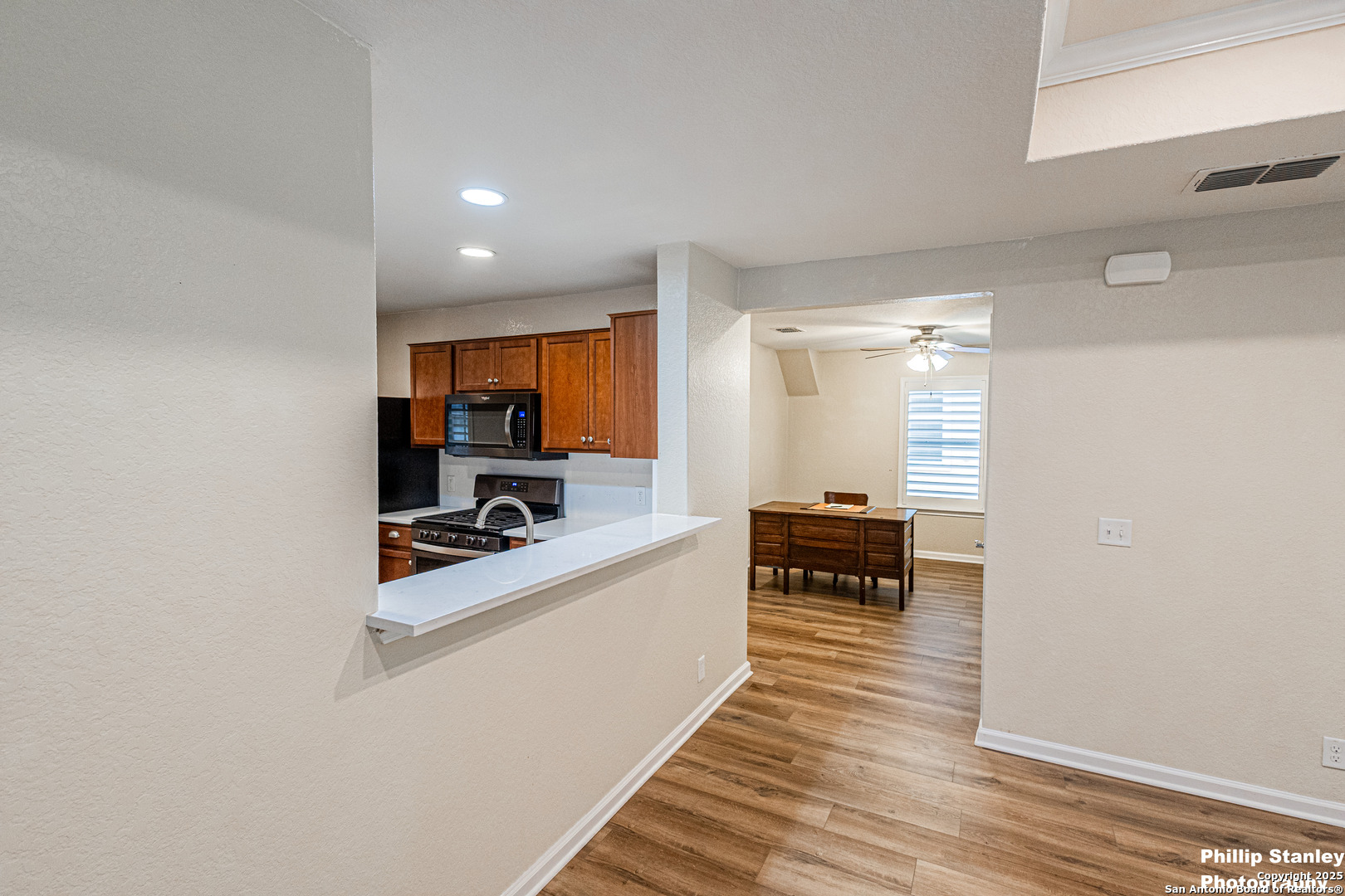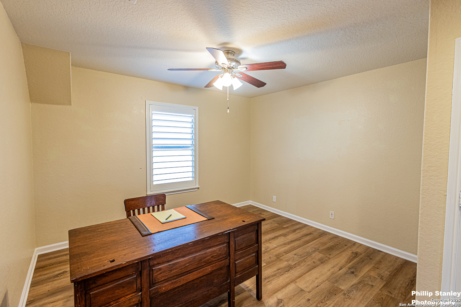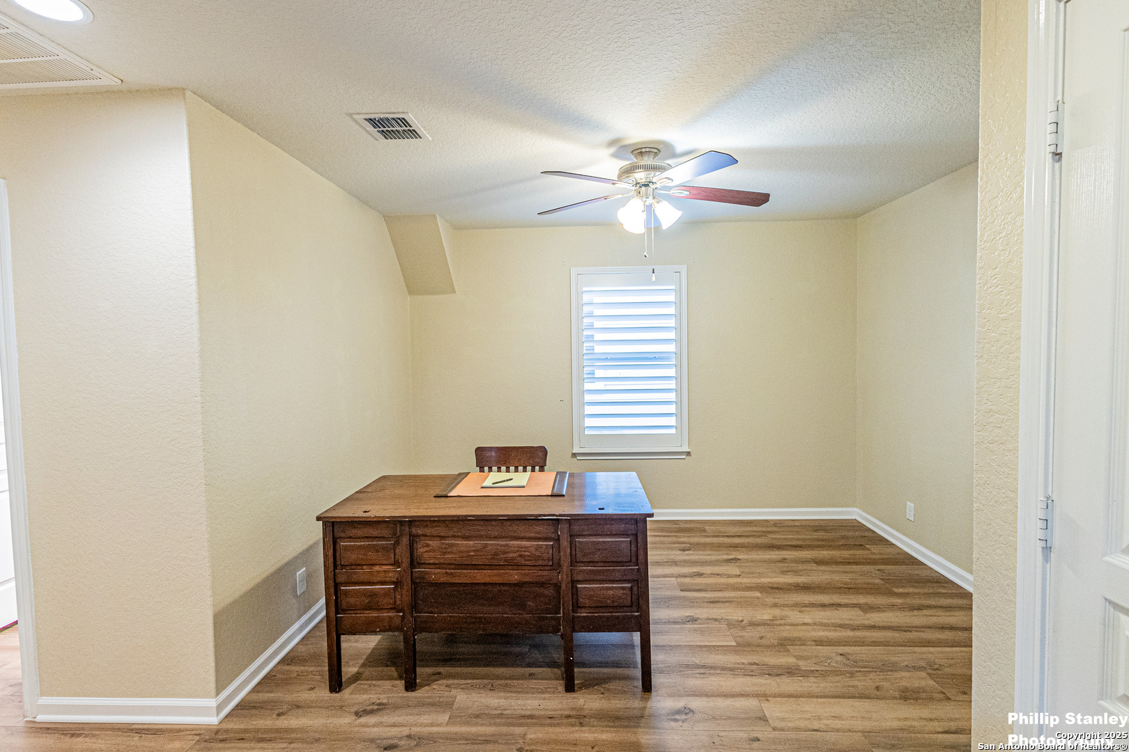 Impeccable Gem in Del Webb 55+ Hill Country Retreat: Welcome to this beautifully maintained one-story home that radiates pride of ownership at every turn. Featuring 2 bedrooms, 2 bathrooms, and a versatile flex room ideal for a home office, craft space, or cozy TV room. Step inside to find luxury vinyl plank flooring throughout, plantation shutters, elegant tray ceilings, and crown molding in both the primary suite and family room. The kitchen boasts solid surface countertops and all appliances, offering both style and function. Step outside to your extended covered patio and take in the serene beauty of a private backyard that backs to a lush greenbelt. It's the perfect spot to unwind while watching birds and deer pass by. Whether you're enjoying peaceful mornings or hosting evening gatherings, this home is truly a Hill Country retreat.