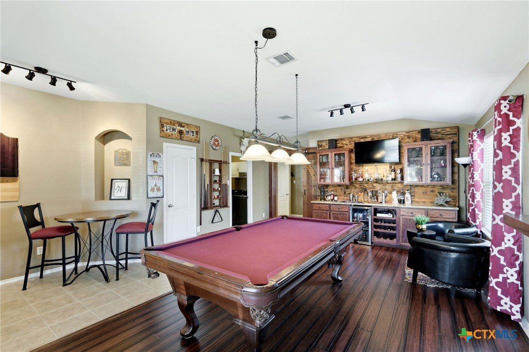 Beautifully maintained home with bamboo hardwood in living & game rooms, cozy wood-burning fireplace, and impressive game room with built-in bar & barn door. Open kitchen with island, walk-in pantry, desk area, and tons of cabinet space. Primary closet with built-in shelves. Enclosed back patio, large deck, and extra patio with no rear neighbors. Mother-in-law suite, built-in garage shelves, powered workshop, Vivint security system, sprinkler, water softener, and updated carpet. Roof ~4 yrs, water heater 10 yrs.