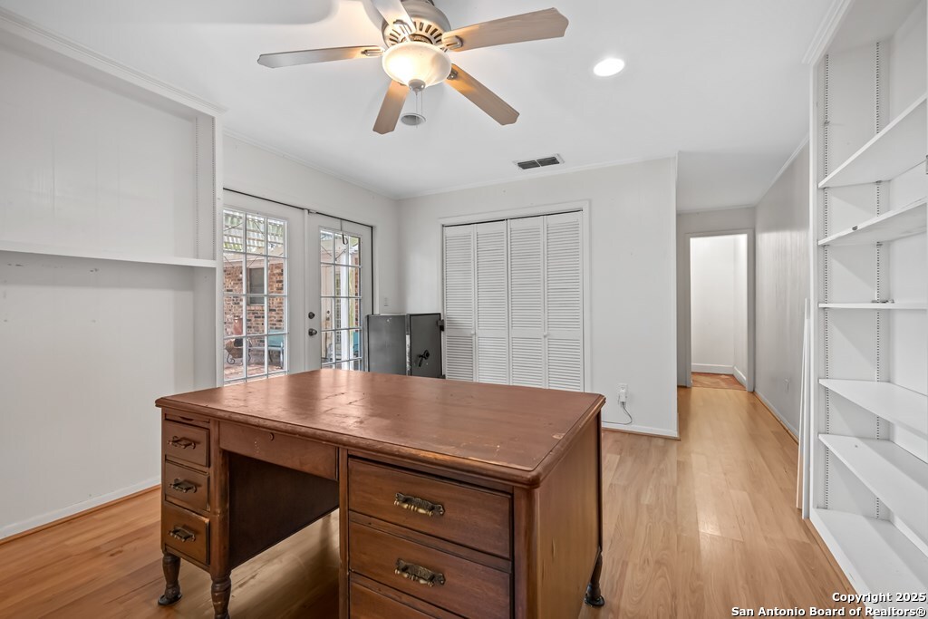 This lovely, centrally located home is a gem you won't want to miss! Plantation shutters, a beautiful upgrade, are present throughout the home. The home offers three spacious bedrooms and two full baths with a roomy living area open to the kitchen and dining area. A second flex space can be used as an office or extra living area. Walk out the french doors into the backyard onto the pergola covered patio. The fenced yard offers plenty of space for rest and relaxation under the large, shady oaks. Located one block from Klipstine Park and near center of town, shopping and entertainment are close and convenient. This house is ready for you to make it your home!; Original MLS#: 113435; Deed Restrictions: ; Features: Porch-Front, Porch-Back; Home Warranty: No; Land Dimensions: 65 x 120; Room List: Kitchen/Dining; Water District: Yes; Water Heater: Electric; Windows: Aluminum