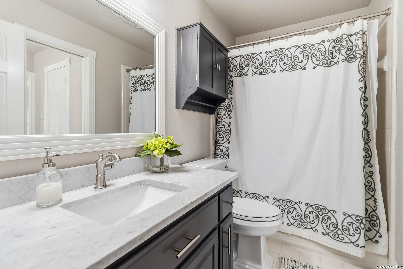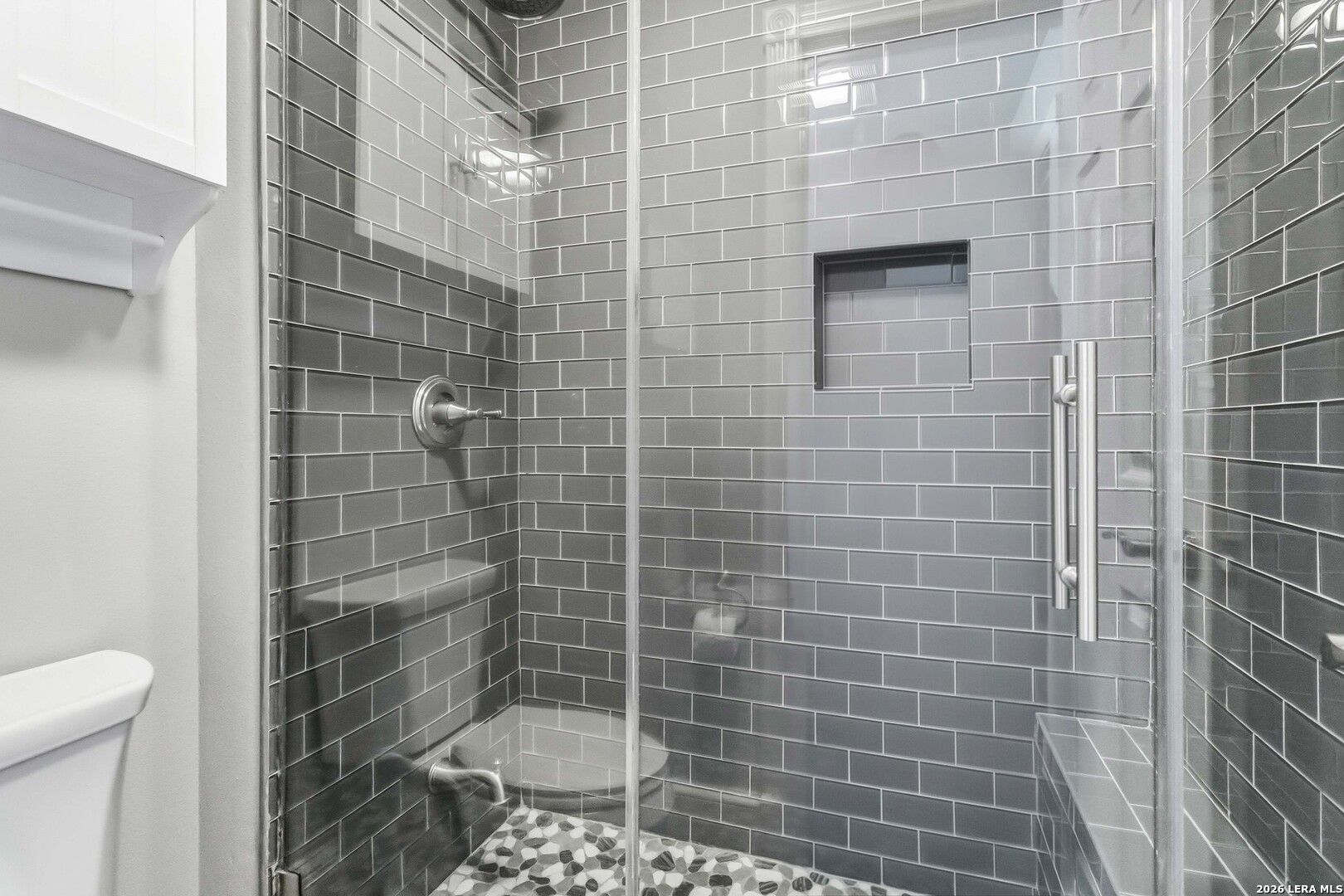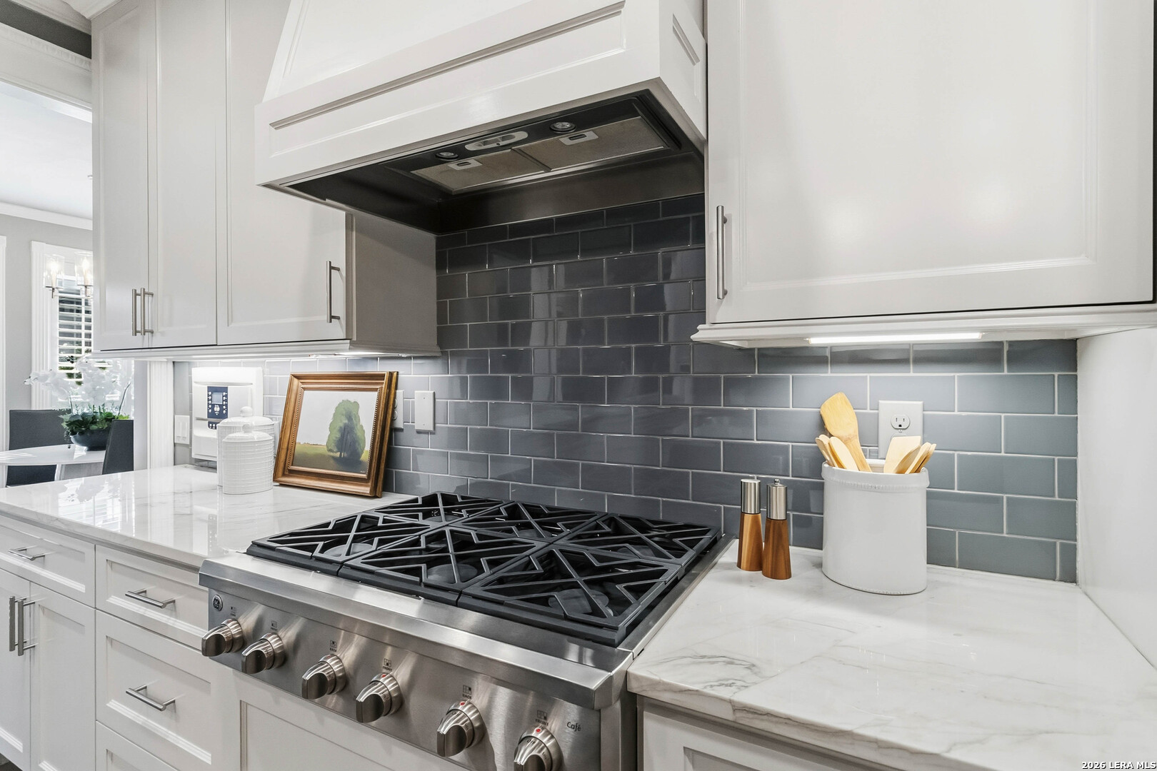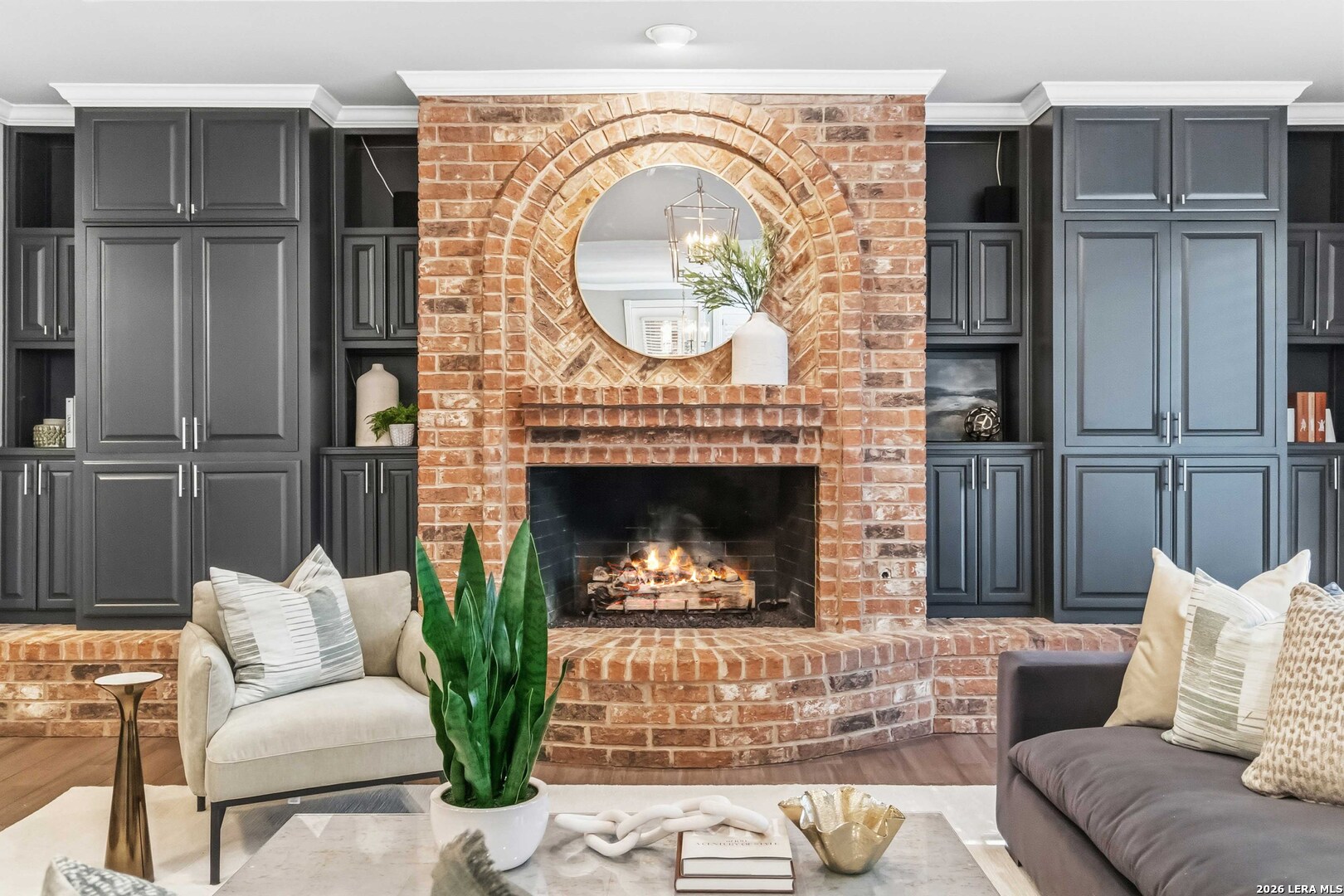 Welcome to Bluff View, a centrally located neighborhood known for its peaceful streets and the canopy of mature oak trees. Over generations, residents have built a warm, connected community that blends long standing tradition with a fresh, modern energy. Bluff View's rich history and welcoming character are part of what makes this community a special place to be home. The property offers convenient access to US 281 / I-37, Loop 1604, Bitters Road, Blanco Road, Wurzbach Parkway and Huebner Road making daily routines and city amenities within easy reach. The grand entry is defined by 19 foot tall ceilings that immediately set the tone for this beautiful home. This property offers four bedrooms and four bathrooms, plus a convenient and updated half bath located on the main level. Each bedroom includes its own private bath, providing comfort, privacy and convenience throughout the home. Architectural detailing was preserved and elevated throughout this home. Enhanced crown molding and extra tall baseboards highlight the home's traditional character while adding refinement to each room. These details frame the spaces beautifully, reinforcing the quality of craftsmanship and lending a timeless, finished feel from floor to ceiling. Downstairs, durable wood like tile flooring was selected for both style and function, offering the warmth of hardwood with the resilience needed for a busy household. Wood flooring was added all throughout the second floor, providing continuity, warmth, and an elevated finish. The kitchen underwent a complete transformation, with the original space fully demolished and reimagined to meet modern living standards. Monte Blanc Quartzite countertops, all new cabinetry, stainless steel appliances, and updated lighting come together in a space that is both functional and striking. Above bar and recessed lighting were added to enhance ambiance and highlight the kitchen as a central gathering place. The main living areas were reimagined to improve flow and everyday use while still maintaining a sense of scale. By removing the wall between the breakfast area and living room, the home now offers a more open and connected layout ideal for both entertaining and daily life. High ceilings, abundant natural light, and clean sightlines create living spaces that feel expansive and comfortable. Two of the upstairs bathrooms were fully updated with tubs removed in favor of oversized walk in showers, finished with elegant glass enclosures and specialty tile flooring. Granite and marble countertops add a refined style to each one. The primary suite was further refined by relocating the bedroom entry to create a seamless flow off the living areas. The primary suite features two walk in closets with double layered, hanging spaces, taking advantage of the home's high ceilings. The exterior of the home has been thoughtfully maintained. The fence was recently stained to enhance both durability and overall curb appeal. The heated pool allows for comfortable enjoyment well beyond the summer months, while the hot tub is conveniently accessed from the patio off the primary suite, creating a seamless indoor to outdoor experience.