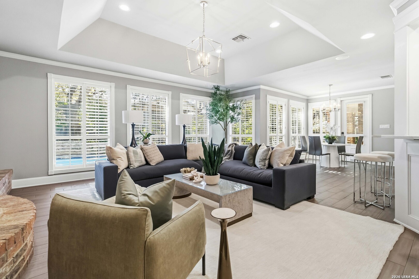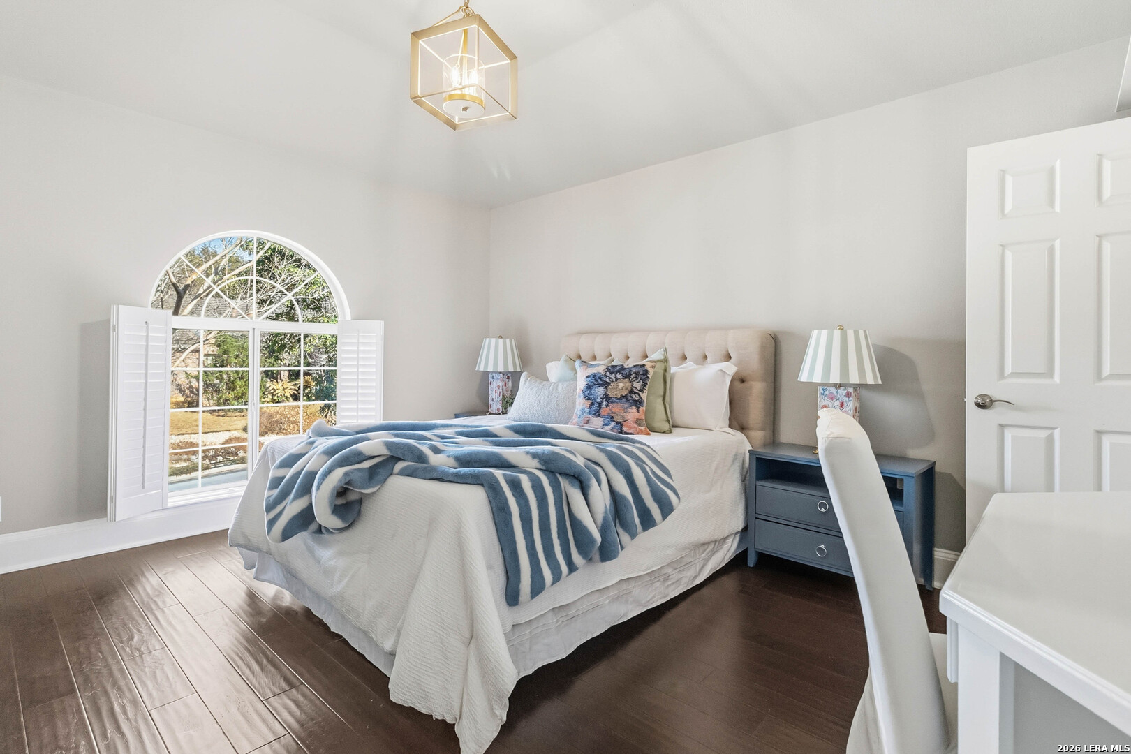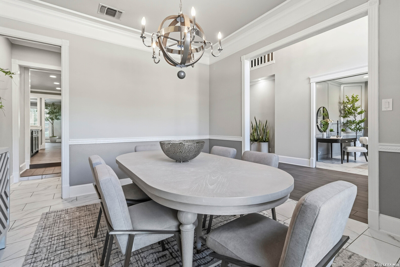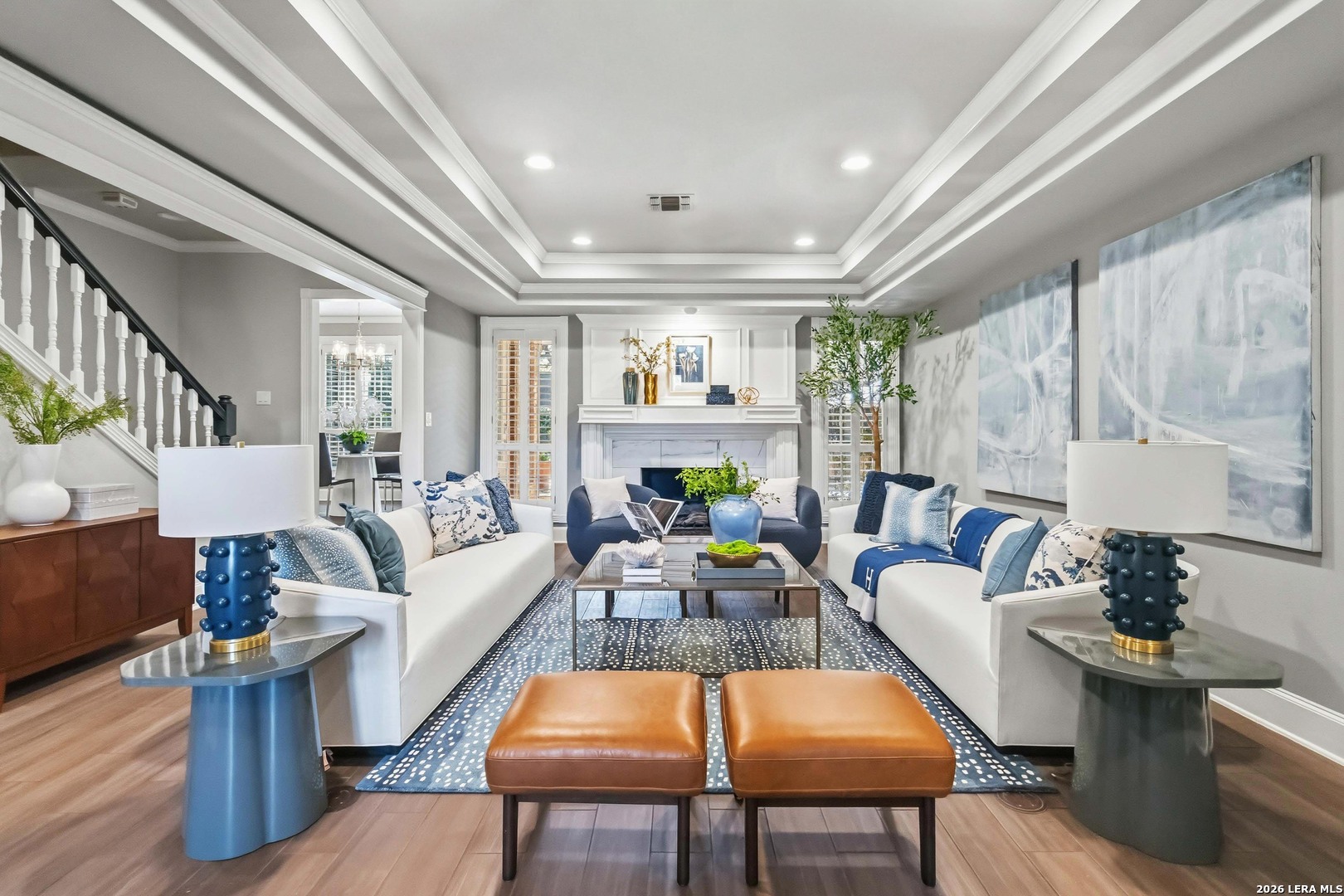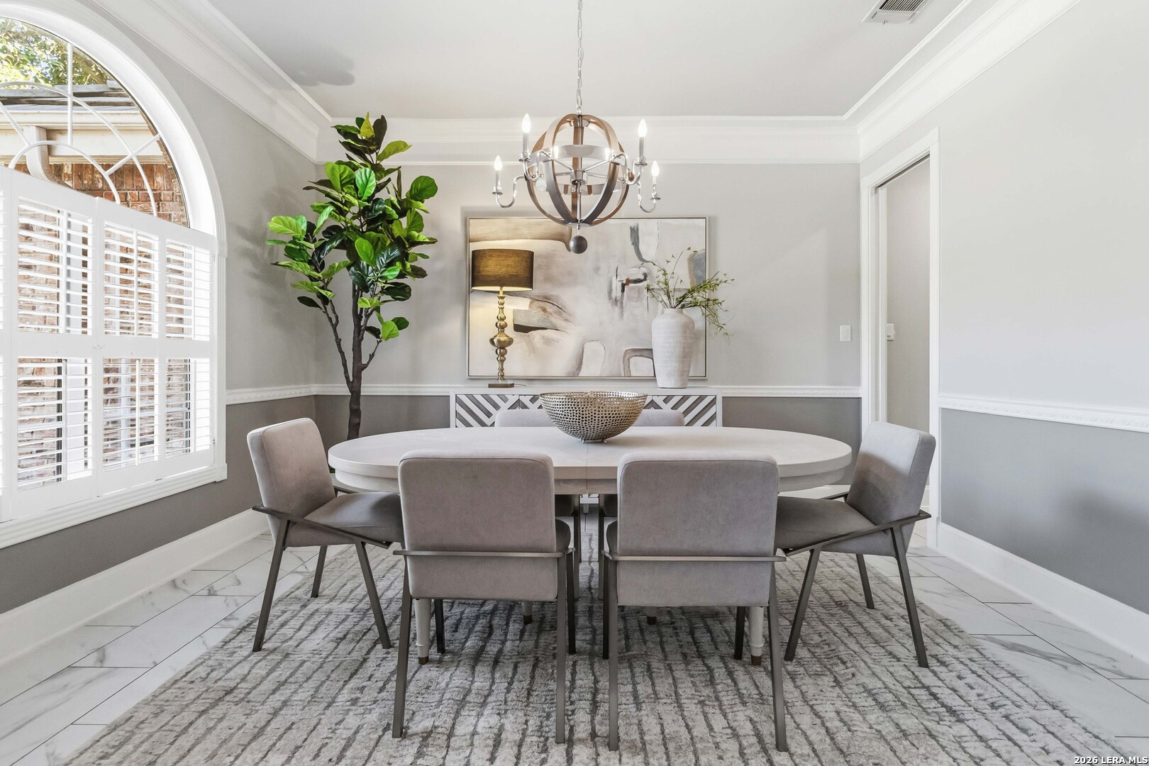 Welcome to Bluff View, a centrally located neighborhood known for its peaceful streets and the canopy of mature oak trees. Over generations, residents have built a warm, connected community that blends long standing tradition with a fresh, modern energy. Bluff View's rich history and welcoming character are part of what makes this community a special place to be home. The property offers convenient access to US 281 / I-37, Loop 1604, Bitters Road, Blanco Road, Wurzbach Parkway and Huebner Road making daily routines and city amenities within easy reach. The grand entry is defined by 19 foot tall ceilings that immediately set the tone for this beautiful home. This property offers four bedrooms and four bathrooms, plus a convenient and updated half bath located on the main level. Each bedroom includes its own private bath, providing comfort, privacy and convenience throughout the home. Architectural detailing was preserved and elevated throughout this home. Enhanced crown molding and extra tall baseboards highlight the home's traditional character while adding refinement to each room. These details frame the spaces beautifully, reinforcing the quality of craftsmanship and lending a timeless, finished feel from floor to ceiling. Downstairs, durable wood like tile flooring was selected for both style and function, offering the warmth of hardwood with the resilience needed for a busy household. Wood flooring was added all throughout the second floor, providing continuity, warmth, and an elevated finish. The kitchen underwent a complete transformation, with the original space fully demolished and reimagined to meet modern living standards. Monte Blanc Quartzite countertops, all new cabinetry, stainless steel appliances, and updated lighting come together in a space that is both functional and striking. Above bar and recessed lighting were added to enhance ambiance and highlight the kitchen as a central gathering place. The main living areas were reimagined to improve flow and everyday use while still maintaining a sense of scale. By removing the wall between the breakfast area and living room, the home now offers a more open and connected layout ideal for both entertaining and daily life. High ceilings, abundant natural light, and clean sightlines create living spaces that feel expansive and comfortable. Two of the upstairs bathrooms were fully updated with tubs removed in favor of oversized walk in showers, finished with elegant glass enclosures and specialty tile flooring. Granite and marble countertops add a refined style to each one. The primary suite was further refined by relocating the bedroom entry to create a seamless flow off the living areas. The primary suite features two walk in closets with double layered, hanging spaces, taking advantage of the home's high ceilings. The exterior of the home has been thoughtfully maintained. The fence was recently stained to enhance both durability and overall curb appeal. The heated pool allows for comfortable enjoyment well beyond the summer months, while the hot tub is conveniently accessed from the patio off the primary suite, creating a seamless indoor to outdoor experience.