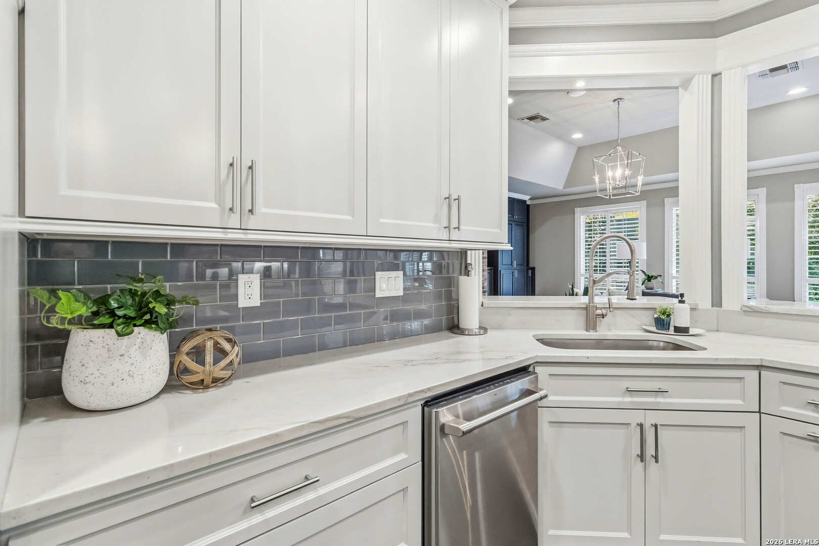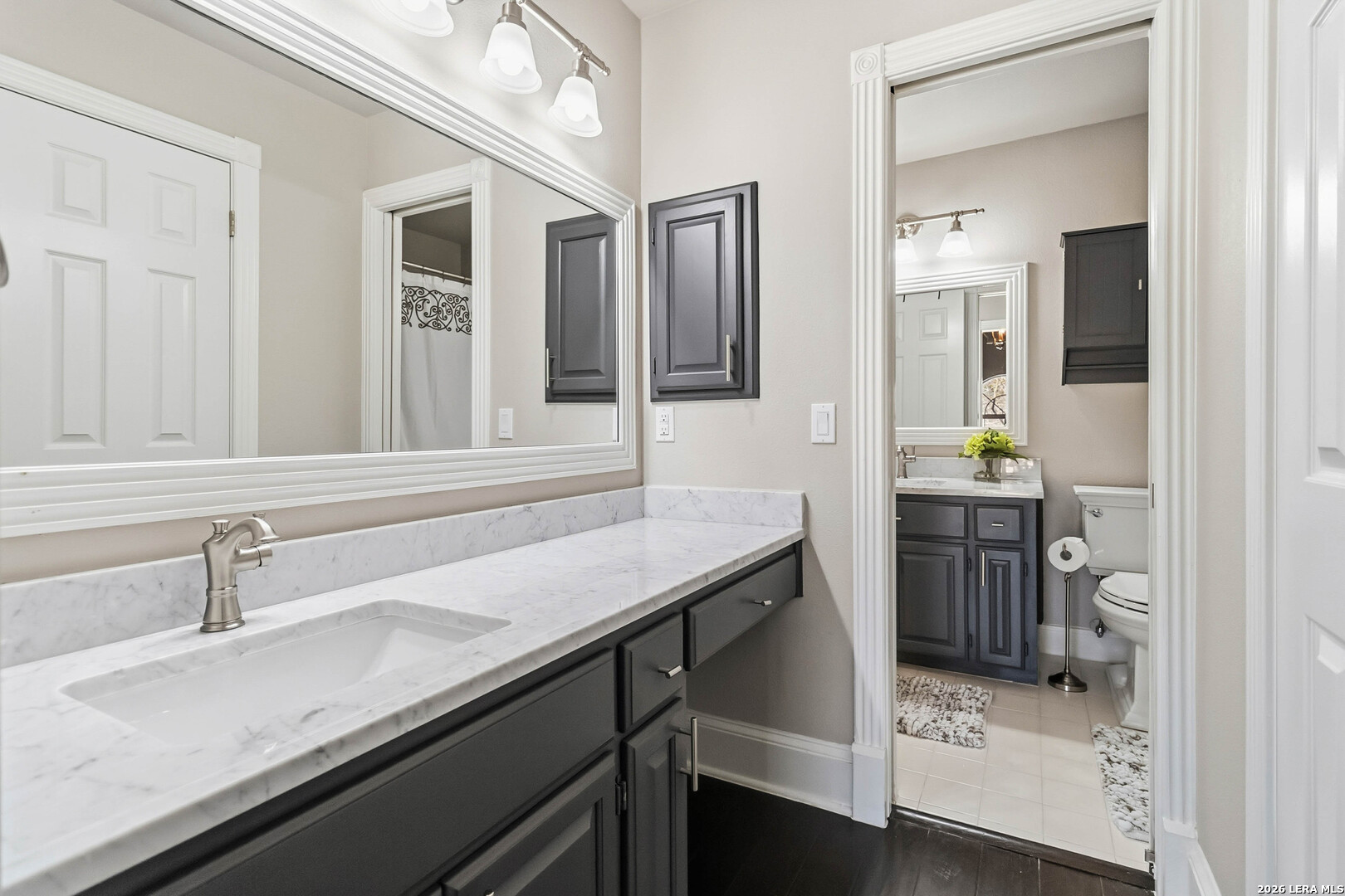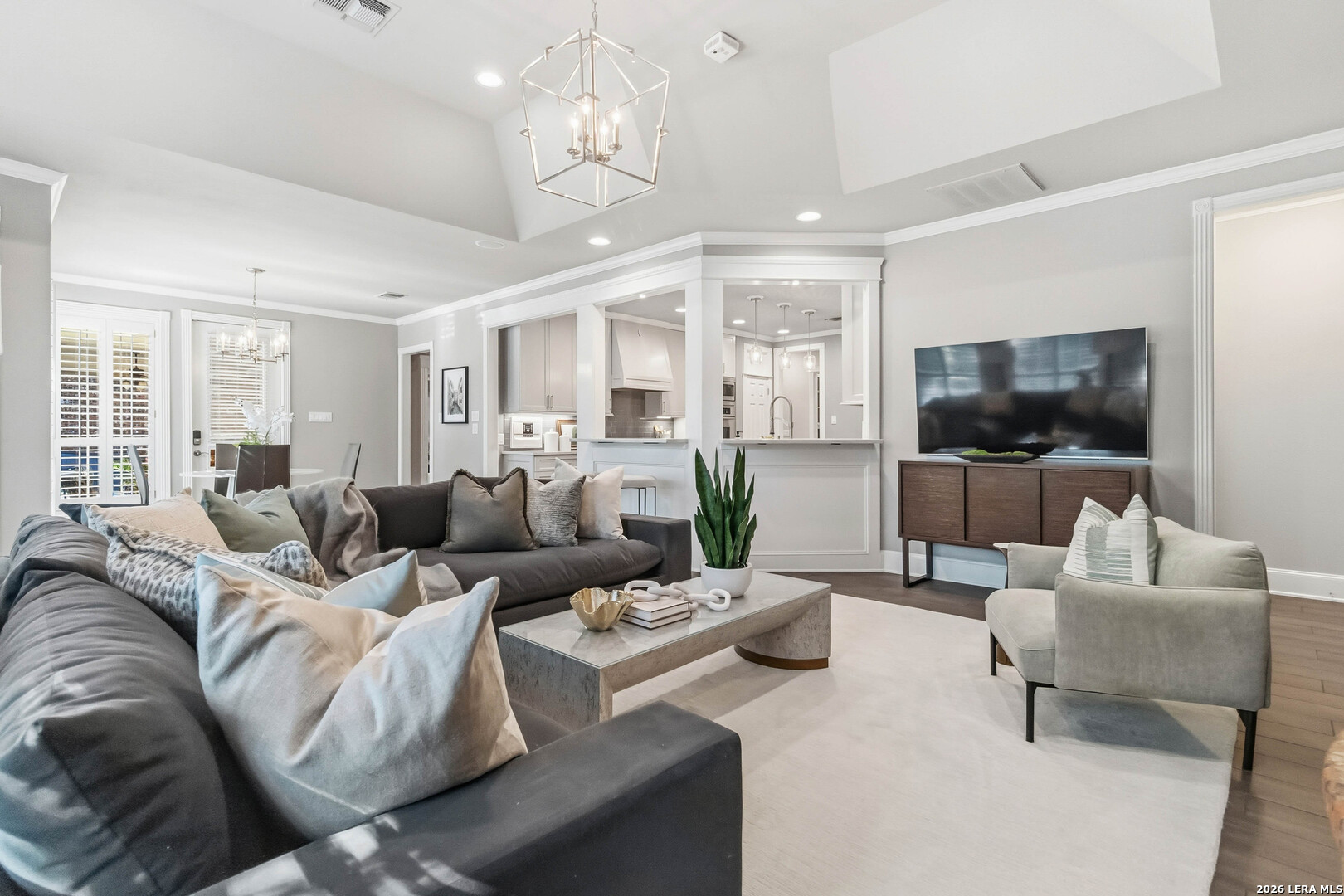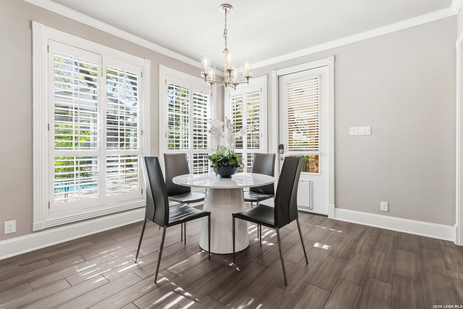 Welcome to Bluff View, a centrally located neighborhood known for its peaceful streets and the canopy of mature oak trees. Over generations, residents have built a warm, connected community that blends long standing tradition with a fresh, modern energy. Bluff View's rich history and welcoming character are part of what makes this community a special place to be home. The property offers convenient access to US 281 / I-37, Loop 1604, Bitters Road, Blanco Road, Wurzbach Parkway and Huebner Road making daily routines and city amenities within easy reach. The grand entry is defined by 19 foot tall ceilings that immediately set the tone for this beautiful home. This property offers four bedrooms and four bathrooms, plus a convenient and updated half bath located on the main level. Each bedroom includes its own private bath, providing comfort, privacy and convenience throughout the home. Architectural detailing was preserved and elevated throughout this home. Enhanced crown molding and extra tall baseboards highlight the home's traditional character while adding refinement to each room. These details frame the spaces beautifully, reinforcing the quality of craftsmanship and lending a timeless, finished feel from floor to ceiling. Downstairs, durable wood like tile flooring was selected for both style and function, offering the warmth of hardwood with the resilience needed for a busy household. Wood flooring was added all throughout the second floor, providing continuity, warmth, and an elevated finish. The kitchen underwent a complete transformation, with the original space fully demolished and reimagined to meet modern living standards. Monte Blanc Quartzite countertops, all new cabinetry, stainless steel appliances, and updated lighting come together in a space that is both functional and striking. Above bar and recessed lighting were added to enhance ambiance and highlight the kitchen as a central gathering place. The main living areas were reimagined to improve flow and everyday use while still maintaining a sense of scale. By removing the wall between the breakfast area and living room, the home now offers a more open and connected layout ideal for both entertaining and daily life. High ceilings, abundant natural light, and clean sightlines create living spaces that feel expansive and comfortable. Two of the upstairs bathrooms were fully updated with tubs removed in favor of oversized walk in showers, finished with elegant glass enclosures and specialty tile flooring. Granite and marble countertops add a refined style to each one. The primary suite was further refined by relocating the bedroom entry to create a seamless flow off the living areas. The primary suite features two walk in closets with double layered, hanging spaces, taking advantage of the home's high ceilings. The exterior of the home has been thoughtfully maintained. The fence was recently stained to enhance both durability and overall curb appeal. The heated pool allows for comfortable enjoyment well beyond the summer months, while the hot tub is conveniently accessed from the patio off the primary suite, creating a seamless indoor to outdoor experience.