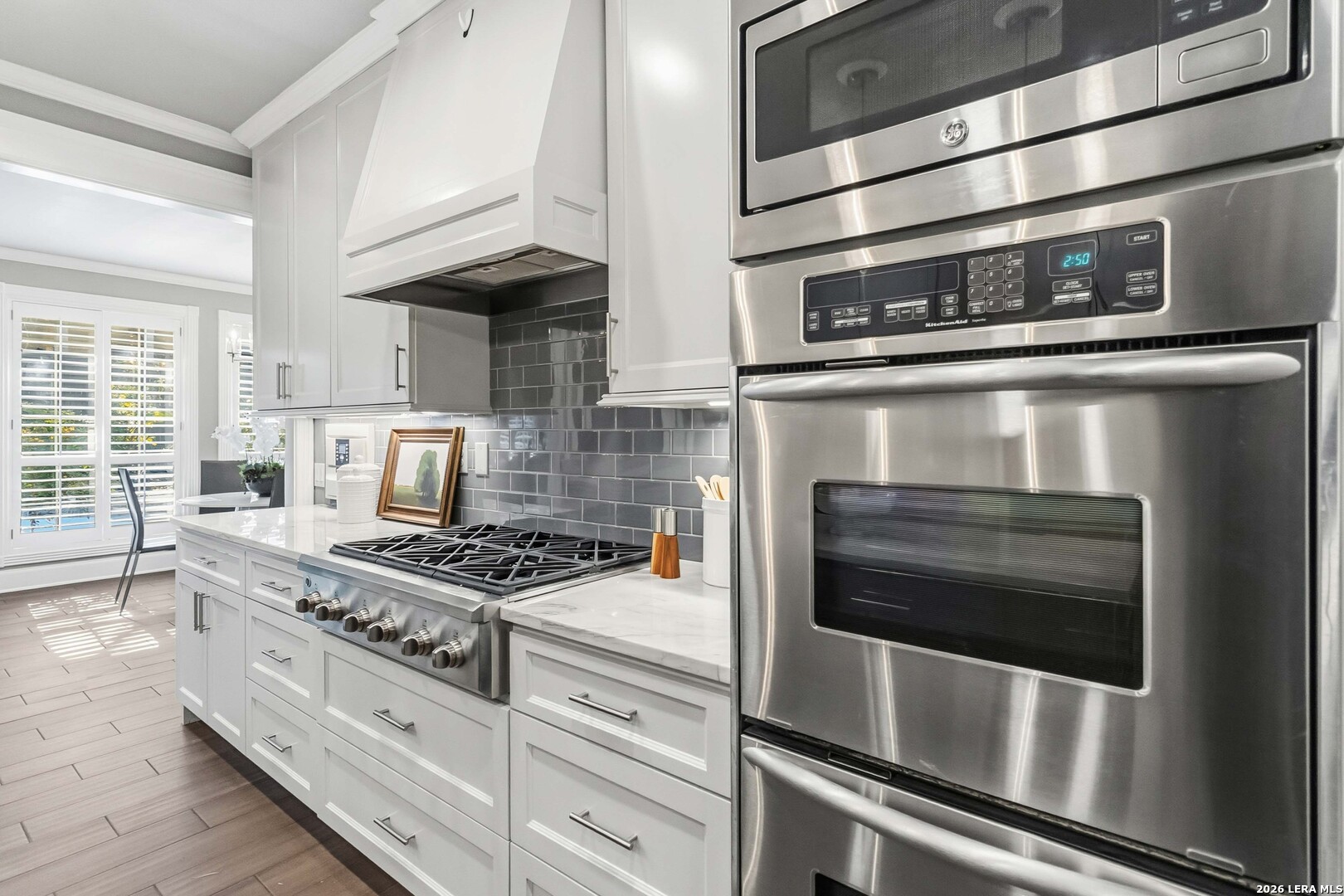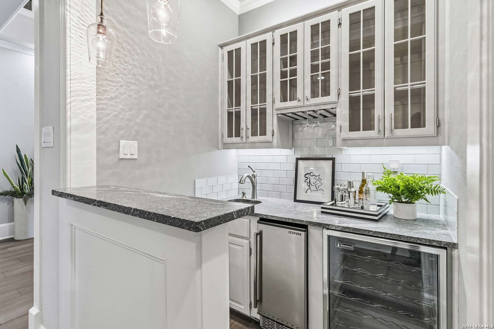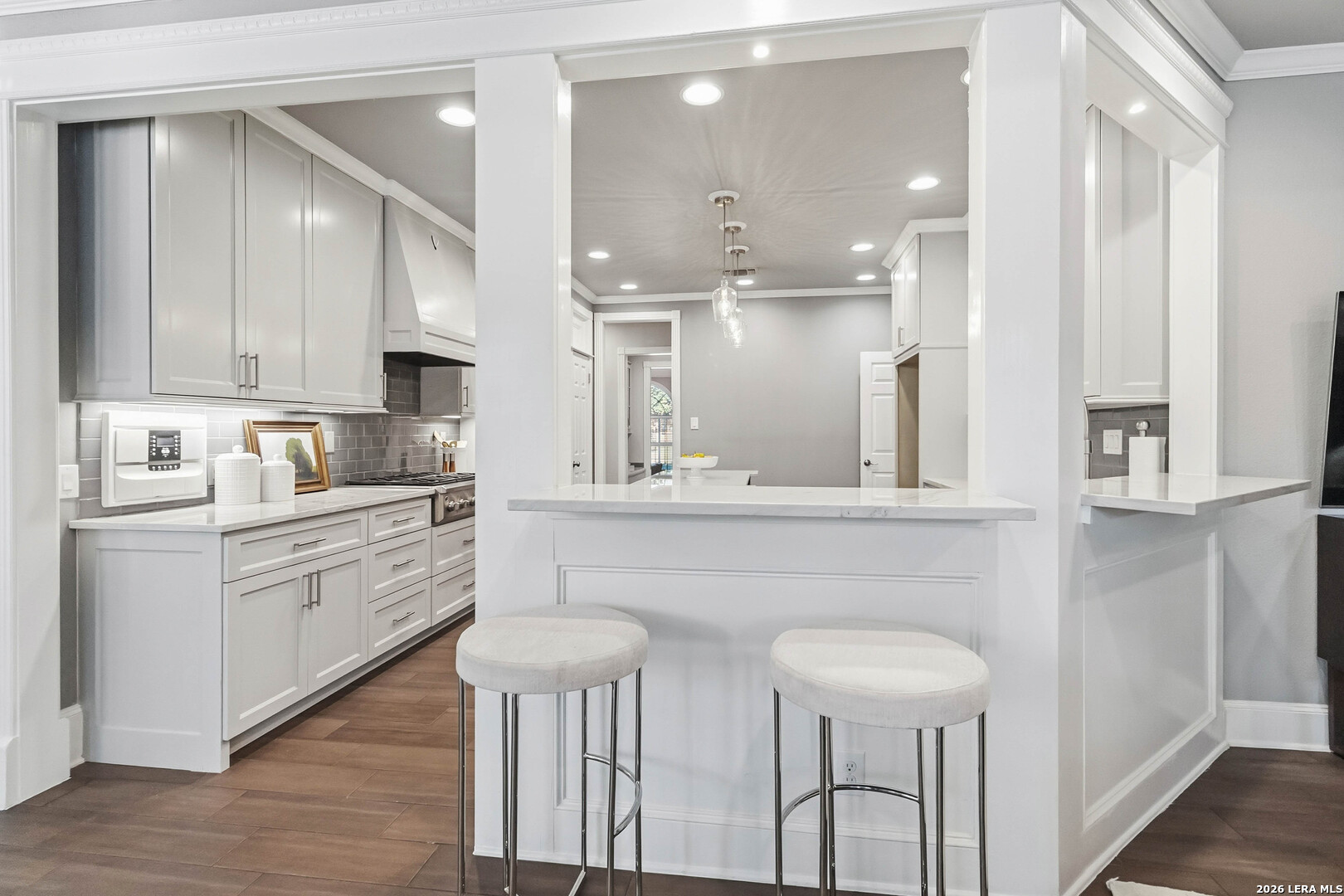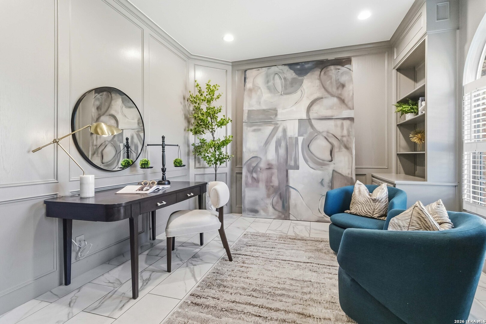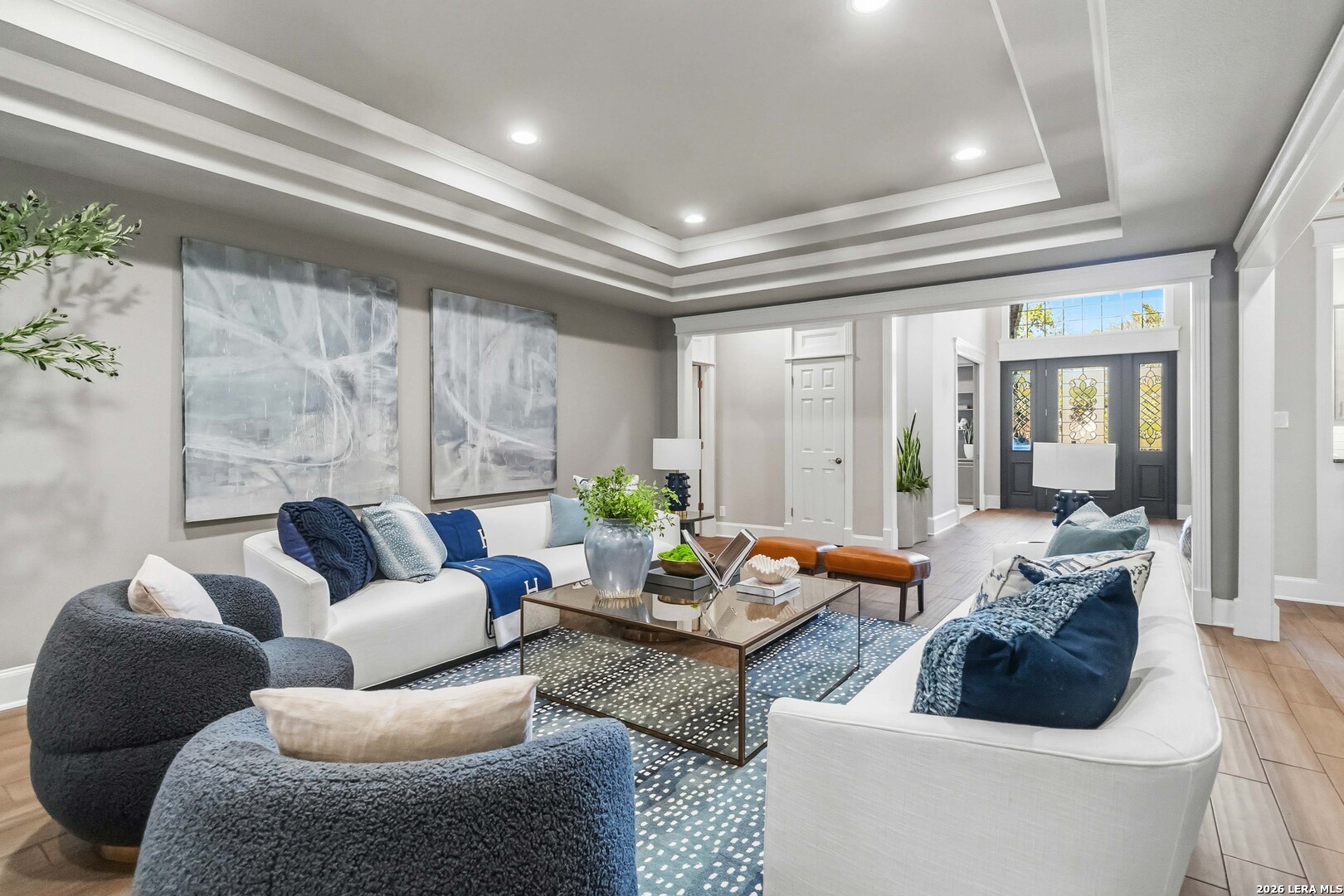 Welcome to Bluff View, a centrally located neighborhood known for its peaceful streets and the canopy of mature oak trees. Over generations, residents have built a warm, connected community that blends long standing tradition with a fresh, modern energy. Bluff View's rich history and welcoming character are part of what makes this community a special place to be home. The property offers convenient access to US 281 / I-37, Loop 1604, Bitters Road, Blanco Road, Wurzbach Parkway and Huebner Road making daily routines and city amenities within easy reach. The grand entry is defined by 19 foot tall ceilings that immediately set the tone for this beautiful home. This property offers four bedrooms and four bathrooms, plus a convenient and updated half bath located on the main level. Each bedroom includes its own private bath, providing comfort, privacy and convenience throughout the home. Architectural detailing was preserved and elevated throughout this home. Enhanced crown molding and extra tall baseboards highlight the home's traditional character while adding refinement to each room. These details frame the spaces beautifully, reinforcing the quality of craftsmanship and lending a timeless, finished feel from floor to ceiling. Downstairs, durable wood like tile flooring was selected for both style and function, offering the warmth of hardwood with the resilience needed for a busy household. Wood flooring was added all throughout the second floor, providing continuity, warmth, and an elevated finish. The kitchen underwent a complete transformation, with the original space fully demolished and reimagined to meet modern living standards. Monte Blanc Quartzite countertops, all new cabinetry, stainless steel appliances, and updated lighting come together in a space that is both functional and striking. Above bar and recessed lighting were added to enhance ambiance and highlight the kitchen as a central gathering place. The main living areas were reimagined to improve flow and everyday use while still maintaining a sense of scale. By removing the wall between the breakfast area and living room, the home now offers a more open and connected layout ideal for both entertaining and daily life. High ceilings, abundant natural light, and clean sightlines create living spaces that feel expansive and comfortable. Two of the upstairs bathrooms were fully updated with tubs removed in favor of oversized walk in showers, finished with elegant glass enclosures and specialty tile flooring. Granite and marble countertops add a refined style to each one. The primary suite was further refined by relocating the bedroom entry to create a seamless flow off the living areas. The primary suite features two walk in closets with double layered, hanging spaces, taking advantage of the home's high ceilings. The exterior of the home has been thoughtfully maintained. The fence was recently stained to enhance both durability and overall curb appeal. The heated pool allows for comfortable enjoyment well beyond the summer months, while the hot tub is conveniently accessed from the patio off the primary suite, creating a seamless indoor to outdoor experience.