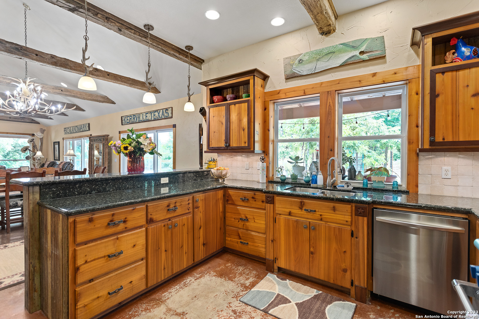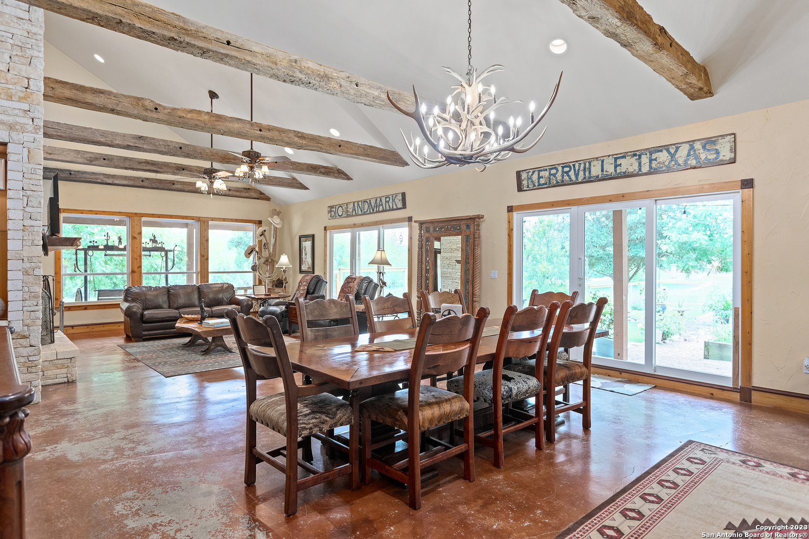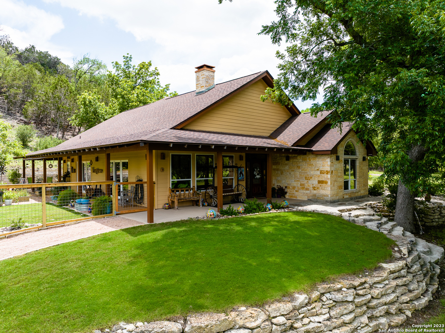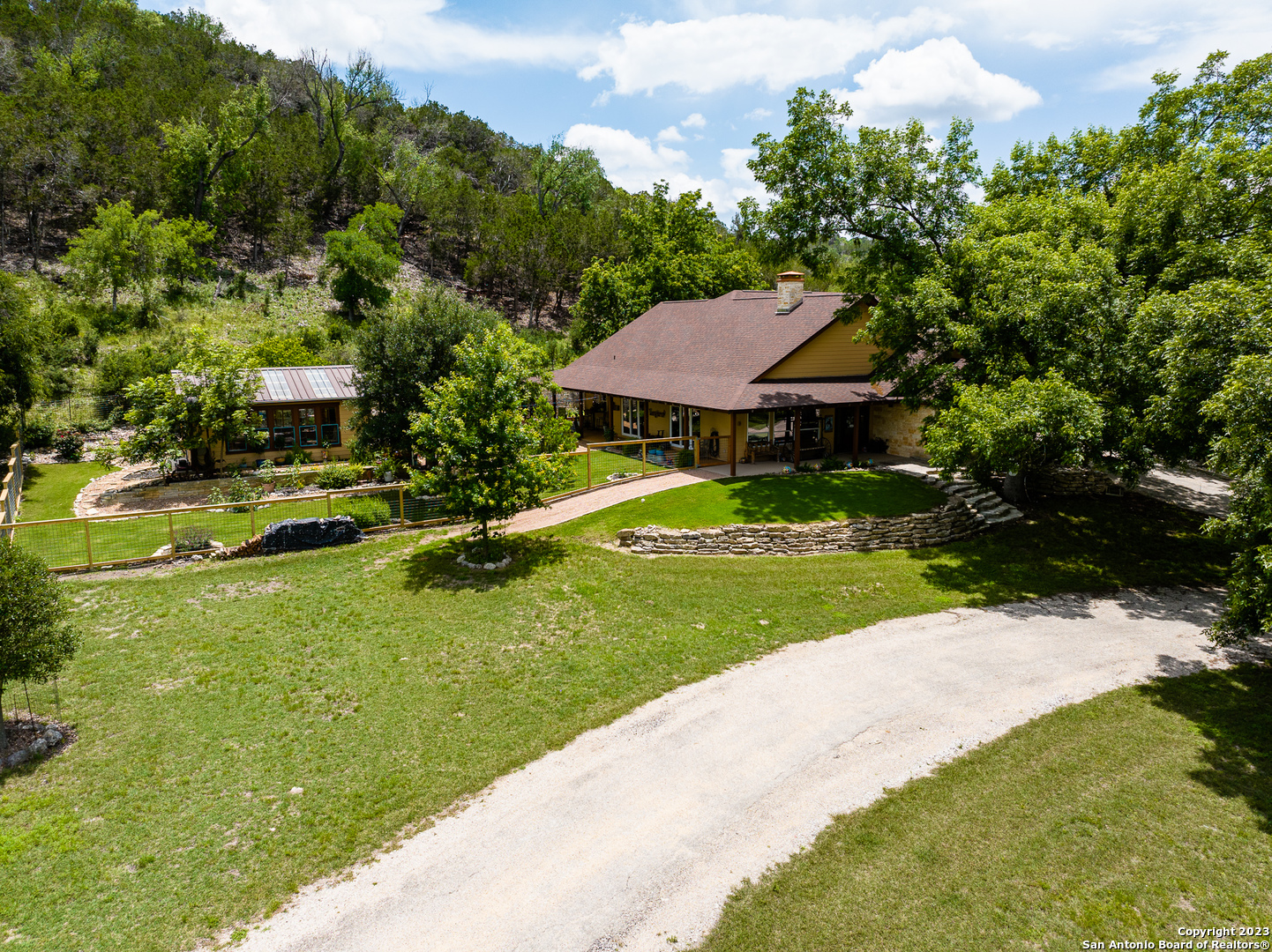 Gorgeous Custom Built Hill Country Home situated on 13.21 acres in the sought after HORIZON Subdivision. The home boasts just under 3800 sq. ft. of living area in the main house with 3 bedrooms and 3 full bathrooms, plus a huge media/game room upstairs. Home is open concept design that everyone desires with an amazing kitchen with sealed granite counter tops. Huge wood beams and interior stonework give the inside so much charm! The exterior of the home is rock veneer and HardiPlank. Also a large greenhouse (concrete floor) with water and electricity. The property also has a detached cozy guest house as well as a large workshop with a 2nd level for more space. Camp Meeting Creek meanders through this wonderful property with a beautiful meadow between the creek and the house with gorgeous mature trees giving you a picturesque setting. So very quiet and peaceful. The Horizon Ranch is a 1040 acre high fenced and gated private community. Exotic game animals roam the ranch with an active ranch mgmt. program with white tail deer, axis, fallow, blackbuck, and red sheep. Located outside the city limits, minutes to downtown Kerrville. You will love this Wonderful Home & Ag Exempt Acreage!