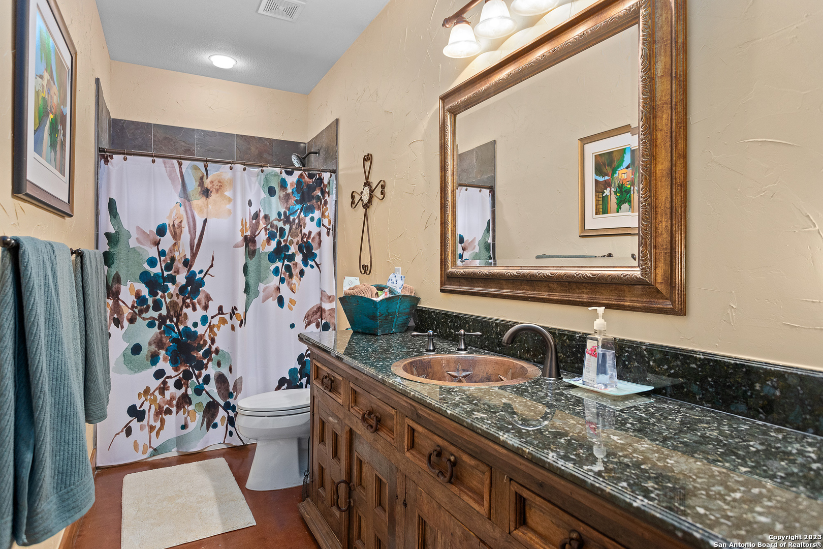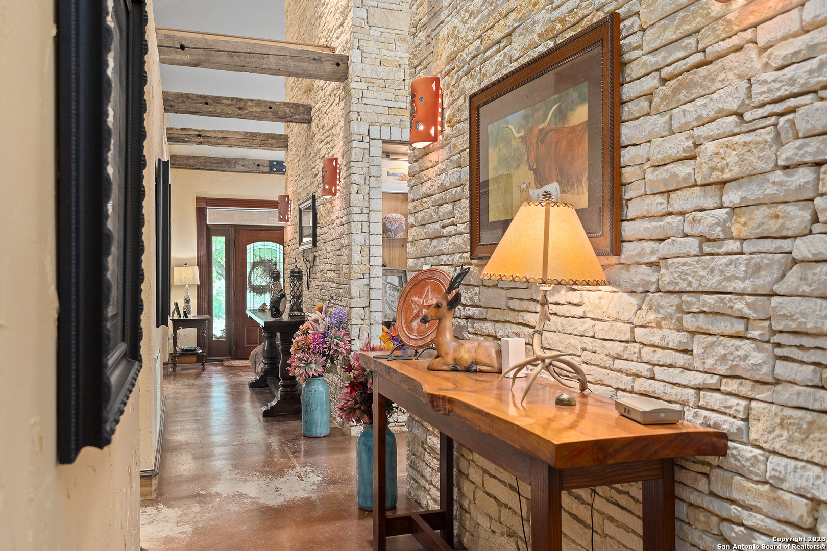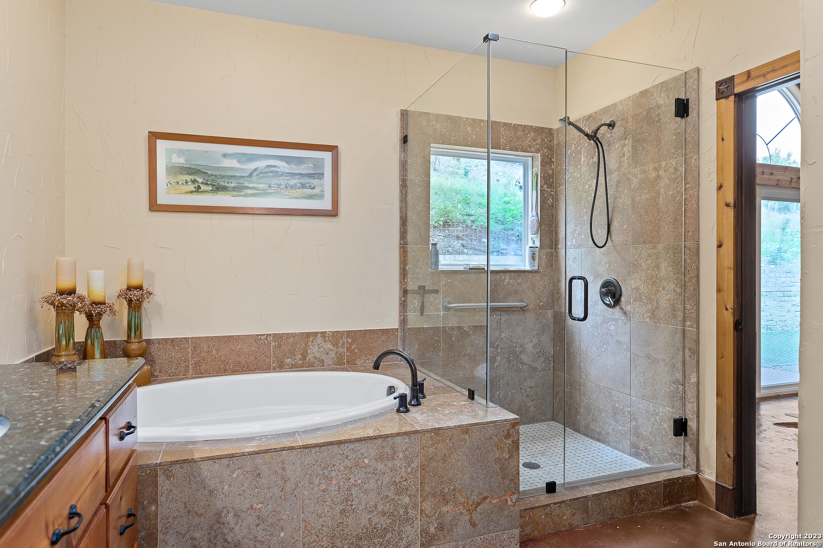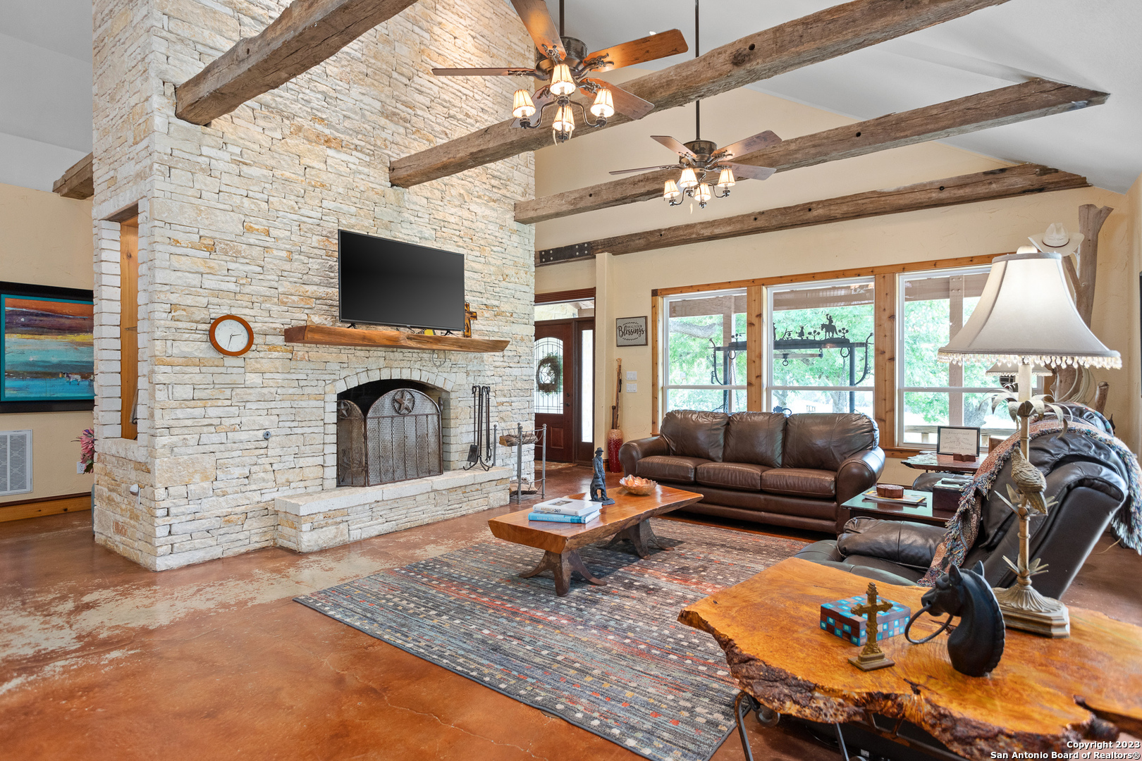 Gorgeous Custom Built Hill Country Home situated on 13.21 acres in the sought after HORIZON Subdivision. The home boasts just under 3800 sq. ft. of living area in the main house with 3 bedrooms and 3 full bathrooms, plus a huge media/game room upstairs. Home is open concept design that everyone desires with an amazing kitchen with sealed granite counter tops. Huge wood beams and interior stonework give the inside so much charm! The exterior of the home is rock veneer and HardiPlank. Also a large greenhouse (concrete floor) with water and electricity. The property also has a detached cozy guest house as well as a large workshop with a 2nd level for more space. Camp Meeting Creek meanders through this wonderful property with a beautiful meadow between the creek and the house with gorgeous mature trees giving you a picturesque setting. So very quiet and peaceful. The Horizon Ranch is a 1040 acre high fenced and gated private community. Exotic game animals roam the ranch with an active ranch mgmt. program with white tail deer, axis, fallow, blackbuck, and red sheep. Located outside the city limits, minutes to downtown Kerrville. You will love this Wonderful Home & Ag Exempt Acreage!