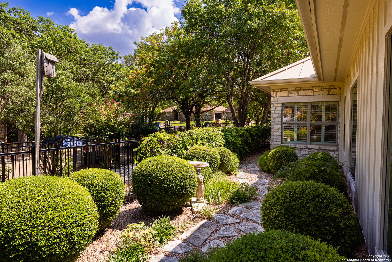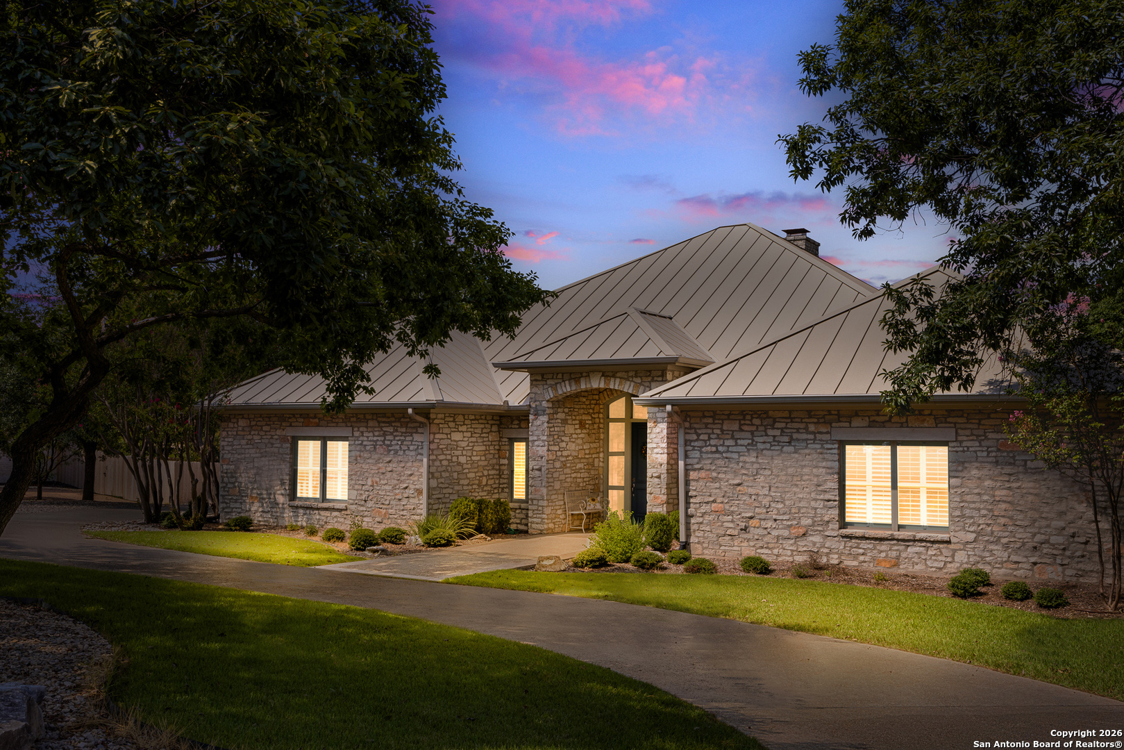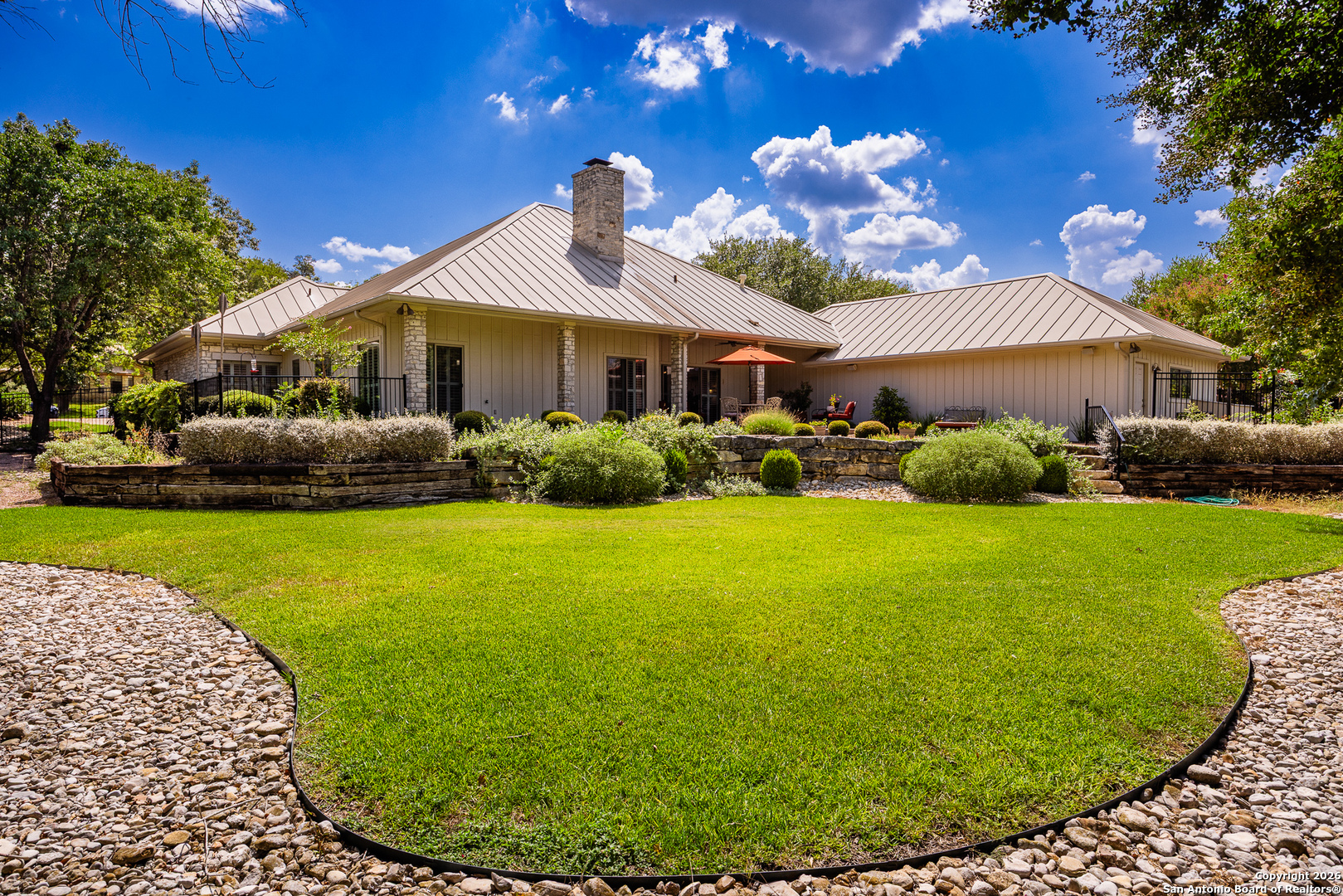 TEXAS HILL COUNTRY - Kerrville, Texas - Exceptional one-level living in Riverhill Golf Course Community. This 3,086 SF home offers a desirable split-bedroom design. The Primary bedroom offers a true retreat with dressing room, spa-style bath featuring double vanities, walk-in shower, soaking tub, and two spacious closets. Guests are welcome with two en-suite bedrooms designed for comfort and privacy. Spacious great room with wood flooring, 10 -foot ceilings, and a striking double-sided fireplace shared with the gourmet kitchen which creates warmth and ambiance for both living and entertaining spaces. A dedicated office adds flexibility for working from home. The side-entry four-car garage is ideal for vehicles, storage, or hobbies. Step outside to enjoy lush garden grounds and a fully fenced backyard, perfect for outdoor living, pets, or relaxing in privacy. Riverhill Country Club is a member only country club featuring 18-hole golf course, swimming pool, tennis facility and mansion dining. This membership can be purchased separately. No Homeowner fees.