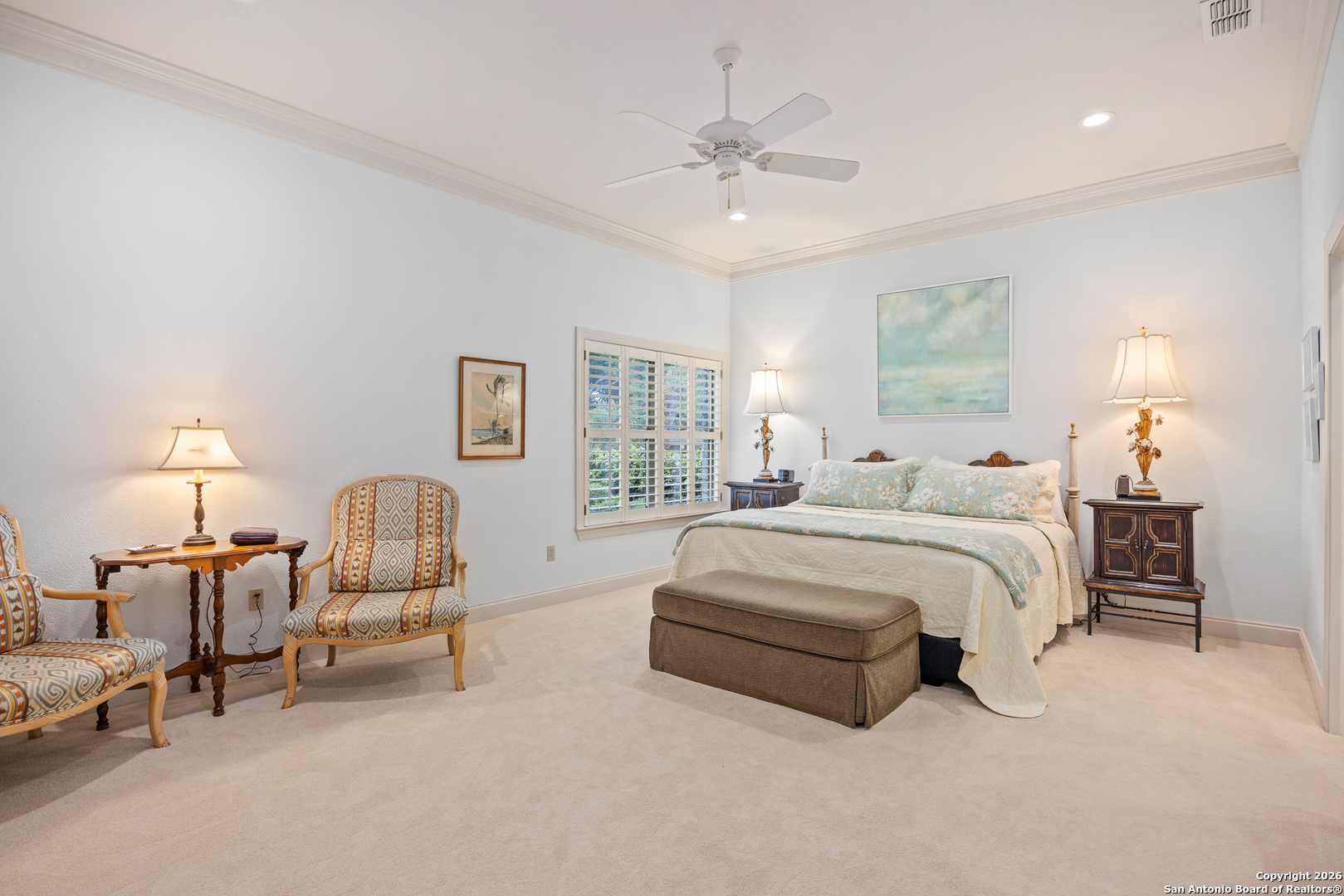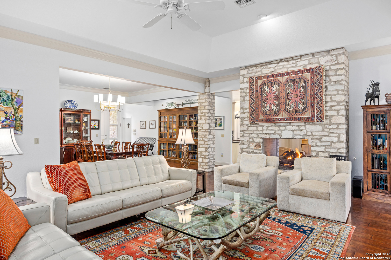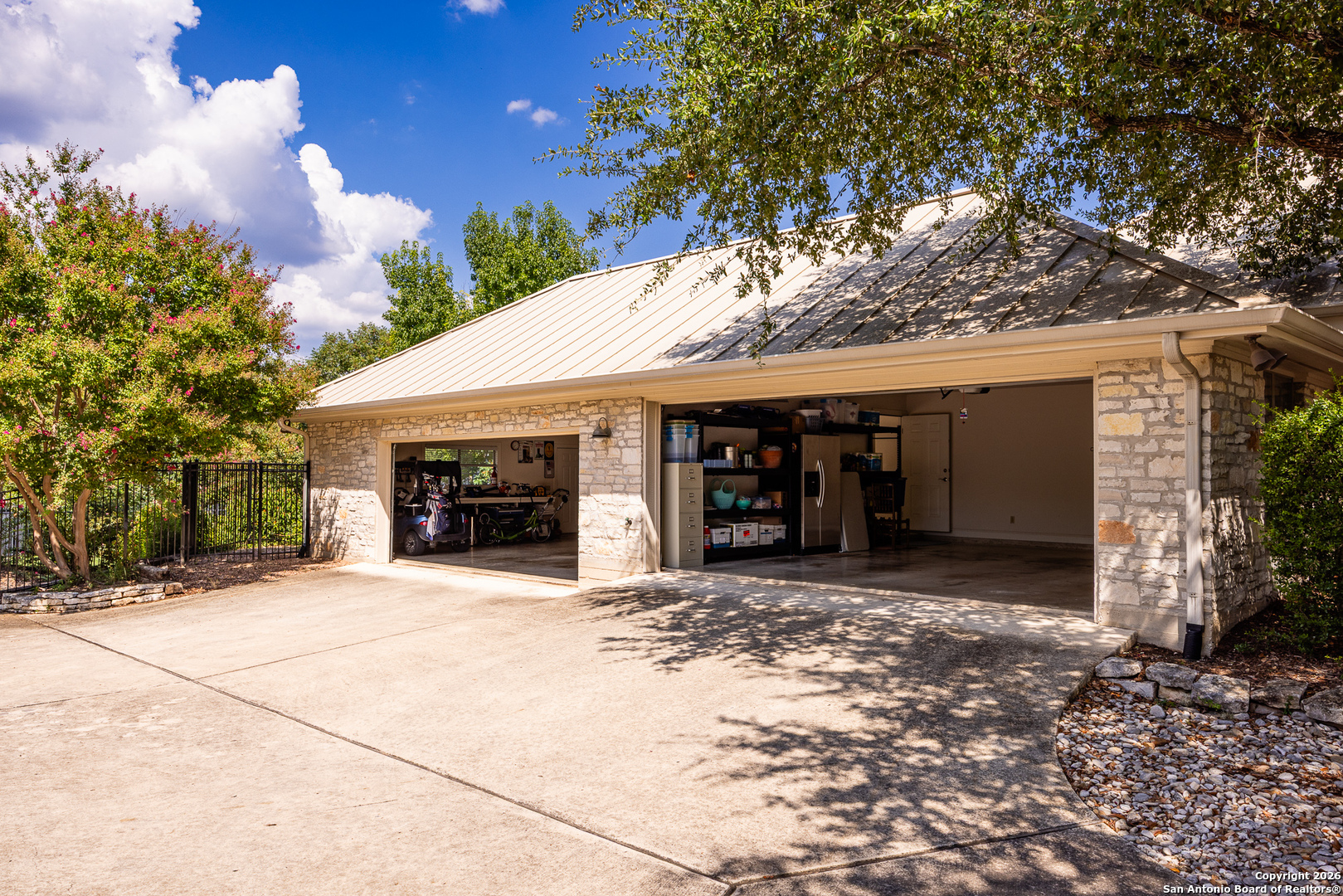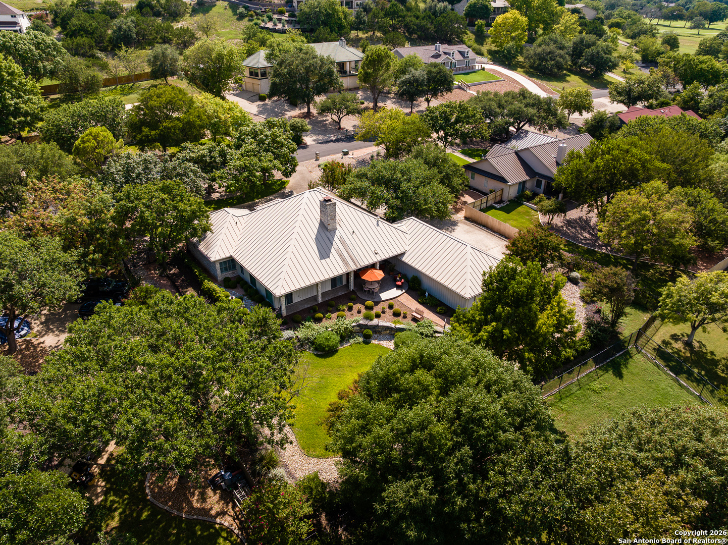 TEXAS HILL COUNTRY - Kerrville, Texas - Exceptional one-level living in Riverhill Golf Course Community. This 3,086 SF home offers a desirable split-bedroom design. The Primary bedroom offers a true retreat with dressing room, spa-style bath featuring double vanities, walk-in shower, soaking tub, and two spacious closets. Guests are welcome with two en-suite bedrooms designed for comfort and privacy. Spacious great room with wood flooring, 10 -foot ceilings, and a striking double-sided fireplace shared with the gourmet kitchen which creates warmth and ambiance for both living and entertaining spaces. A dedicated office adds flexibility for working from home. The side-entry four-car garage is ideal for vehicles, storage, or hobbies. Step outside to enjoy lush garden grounds and a fully fenced backyard, perfect for outdoor living, pets, or relaxing in privacy. Riverhill Country Club is a member only country club featuring 18-hole golf course, swimming pool, tennis facility and mansion dining. This membership can be purchased separately. No Homeowner fees.