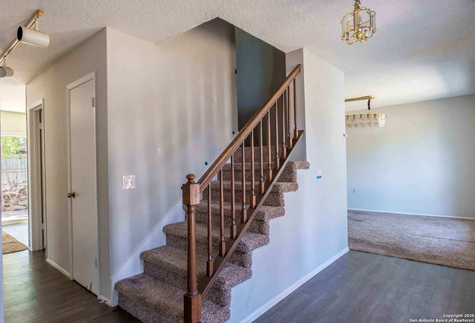 Set on a quiet cul-de-sac, in the established, peaceful, and thriving Valencia neighborhood in North San Antonio, the prime location of this spacious 4-bedroom, 2.5-bathroom home blends both privacy and proximity. The spacious living area of 2,111 sq ft split among two-stories is ideal for anyone seeking extra room to live and relax. The two-car attached garage and central HVAC add everyday convenience and comfort. Enjoy evenings in the open and bright living room, cook up your favorite meals in the eat-in kitchen, host gatherings in the formal dining room, and unwind in the private backyard. Make this home yours and enjoy this great enclave of the highly regarded Northeast ISD, with schools for all grade levels, a great variety of shopping options, many well-liked restaurants, and highway access, all minutes away.
