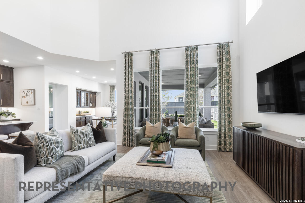 This modern open-concept home showcases dramatic 2-story ceilings that flow from front to back, enhanced by large windows for abundant natural light. The covered patio offers the perfect outdoor retreat. Inside, you'll find a private study, plus both a primary suite and a secondary bedroom on the main level. The primary bath features dual vanities, a sleek freestanding tub, large shower, private toilet room, and a spacious walk-in closet. Great use of space throughout! Upstairs includes a spacious loft, one bedroom with private bath, and two bedrooms connected by a Jack-and-Jill. Smart home technology, zoned AC for each floor, and a full sprinkler system ensure comfort and efficiency throughout. This one is beautiful! Our design experts planned a light, Zen interior with contrasting white and natural colors.