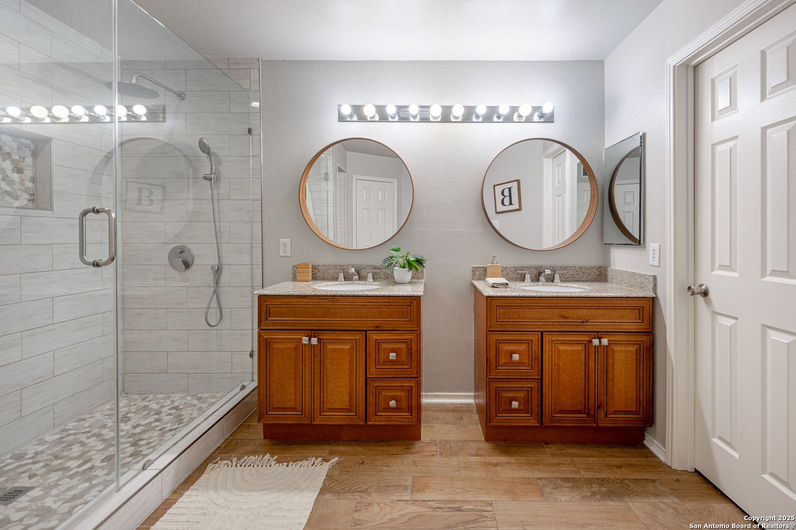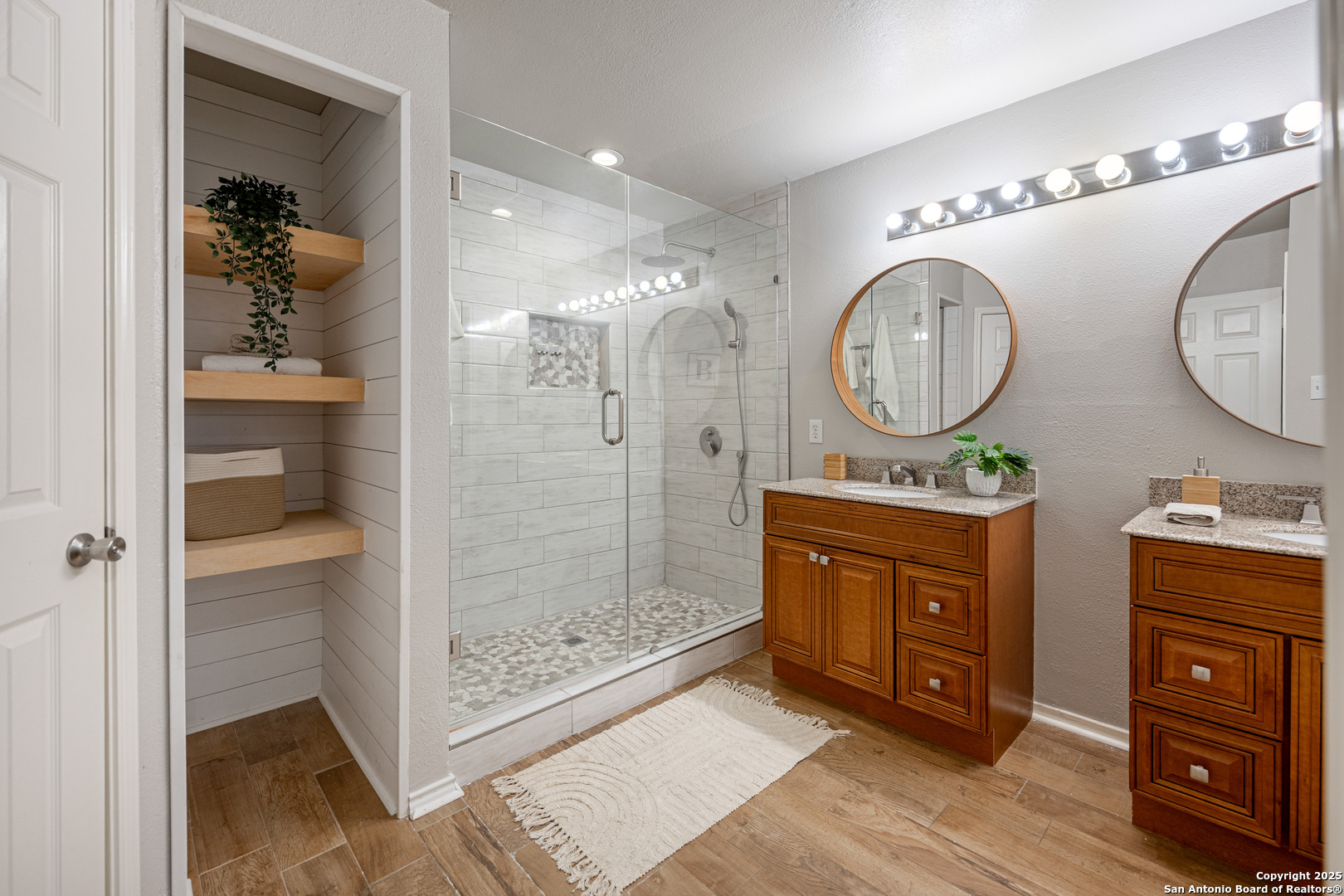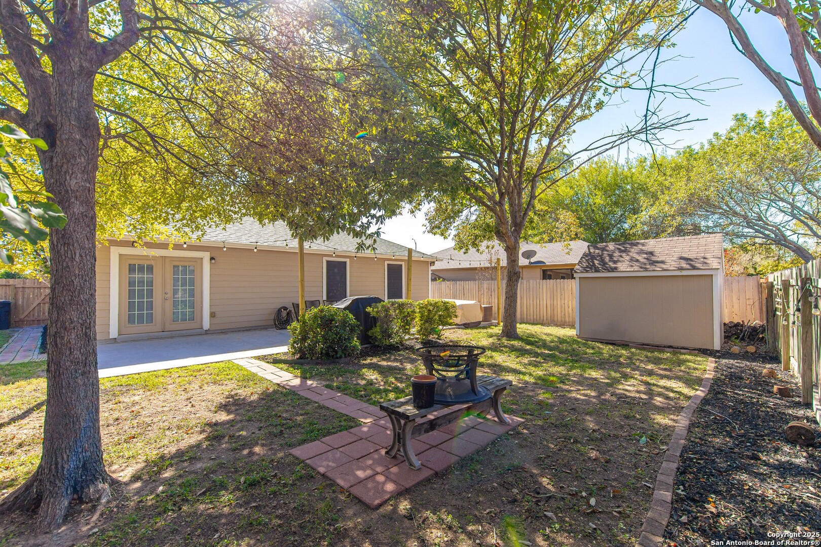 Darling Single Story Charm! Gated Neighborhood in Desirable 78247 Area! Exclusive and Pristine*Shows Like a Model*Spacious and Open*Custom Shutters*Natural Light*Double French Doors*Open Floorplan*Large Primary Suite w/ Full Bath*Oversized Shower w/ Mudset Tile Flooring, Double Vanities, Custom Touches To Include Lighting, Accents, Storage, Shelving*Large Walk-In Closet*Two Large Secondary Bedrooms*Full Bath w/ Tub/Shower Combo*Custom Kitchen w/ Custom Cabinetry, Counters, Appliances and Large Kitchen Island*Dining Area Overlooks Living Area & Kitchen*Arches, Accents, and So Much More*French Doors Lead to Inviting Private Level Lot-TREES! Shed, Privacy Fence, Extended Concrete Patio-Perfect for Outdoor Living and Entertaining*Two Car Garage w/ Water Softener System, Storage*This Home is a Must See!