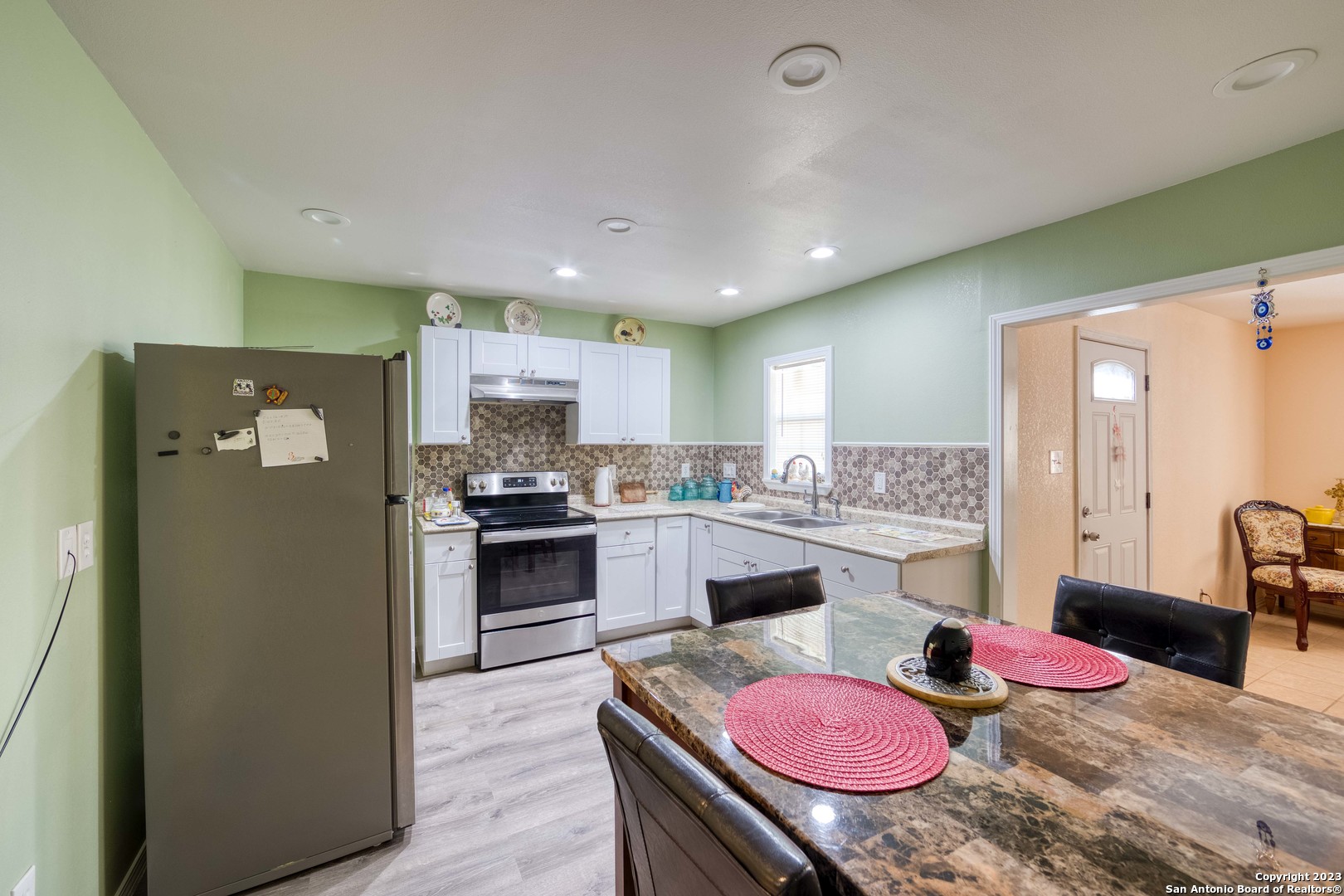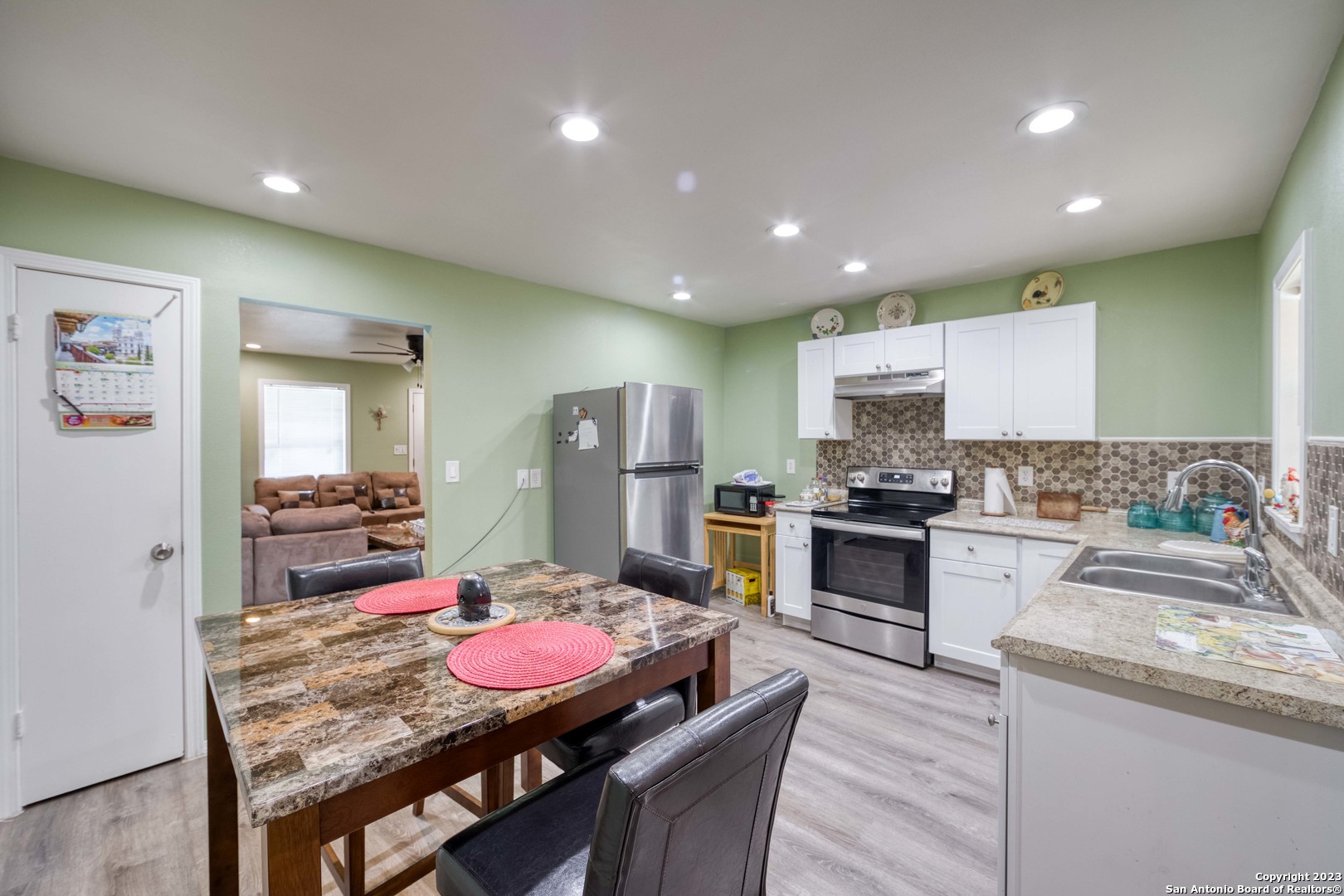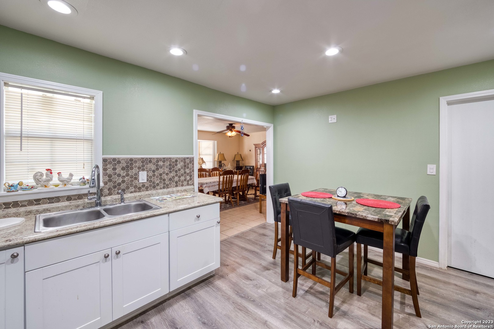 Come see this lovely home! You'll love the great curb appeal with colorful plants and a fenced yard for extra privacy. Inside, the updated kitchen features modern countertops and a stylish backsplash-perfect for cooking and entertaining. The open living area has ceramic tile floors and recessed lighting, giving it a warm, welcoming feel. Enjoy family time in the spacious backyard with a large patio, great for gatherings or relaxing evenings. The big dining room and cozy breakfast nook offer plenty of space for meals together.