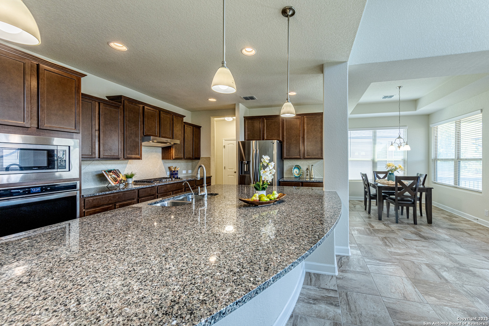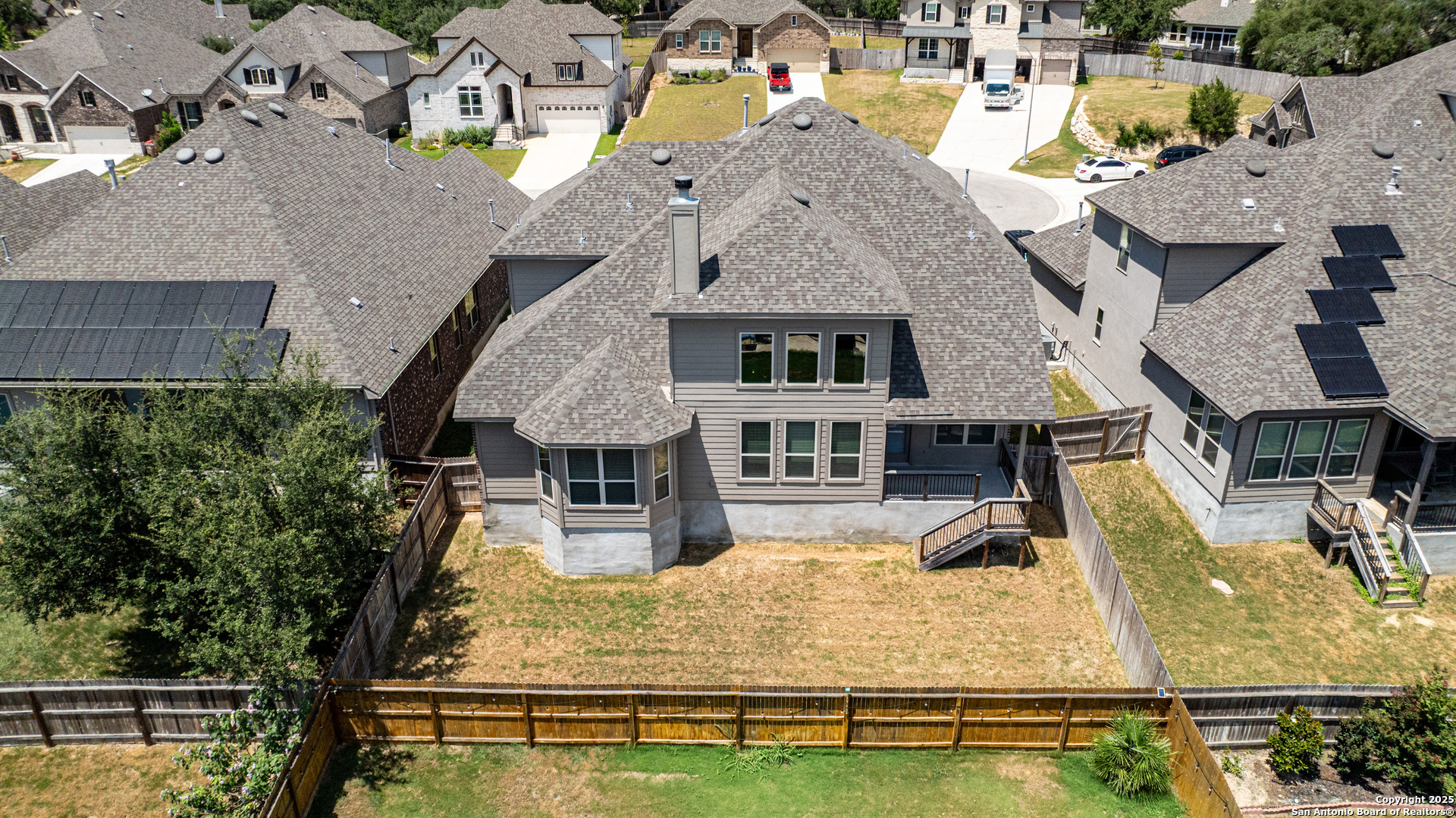 Just steps from the vibrant Singing Hills shopping center, this stunning two-story home offers the perfect blend of Hill Country charm and modern convenience. Featuring 4 bedrooms, a private office with overhead speakers, formal dining room, and a chef's kitchen complete with gas cooktop, oversized island, dry bar, and walk-in pantry. The spacious primary suite is located downstairs and includes dual vanities and two walk-in closets. The living room features built-in surround sound for immersive entertainment. Upstairs offers a dedicated media room with surround sound, a large flex/family room, and three additional bedrooms. Refrigerator, washer, dryer, and safe convey. A rare find in this sought-after community-just 30 minutes to San Antonio Airport.