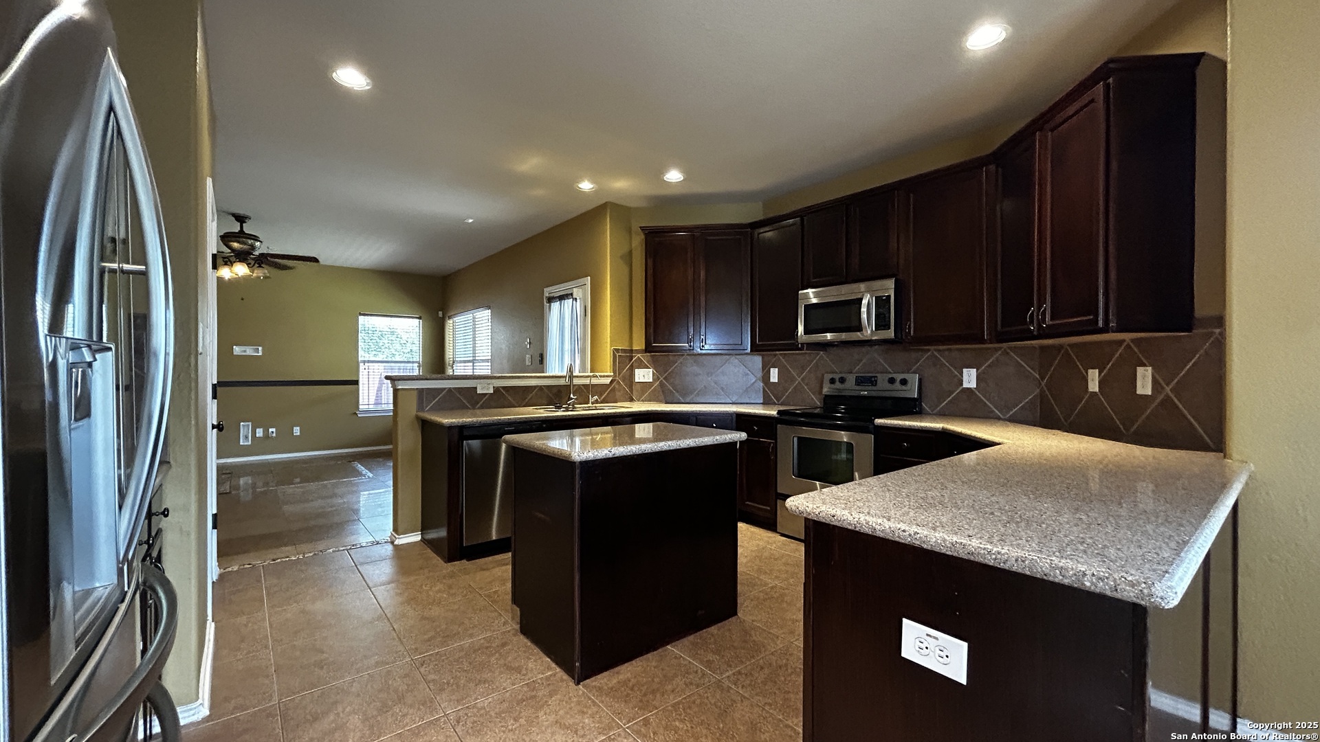 Located in the Villages of Westcreek near SeaWorld, this upgraded 4-bedroom, 3-bathroom home offers 3,021 sq ft of living space on a desirable corner lot. Features include an open living/dining area, gourmet kitchen with quartz counters and stainless steel appliances, a spacious family room with a wood-burning fireplace, and a downstairs guest suite. Upstairs, enjoy a large game room and Primary Bedroom with a sitting area, oversized tub, and dual vanities. The expansive covered patio and fenced yard are perfect for entertaining. Community amenities include pools, trails, playgrounds, and sports courts. Conveniently close to local schools, shopping, dining, and major employers. Refrigerator, washer, and dryer included.