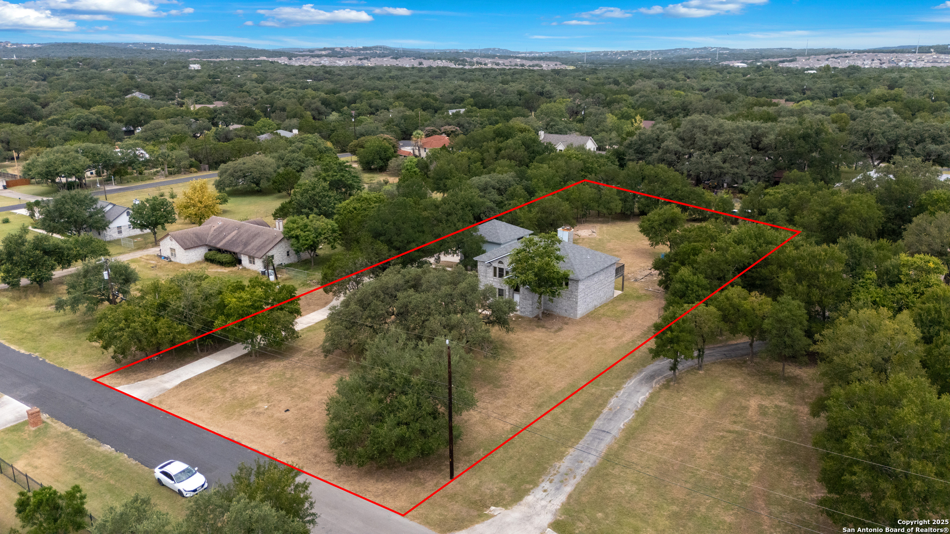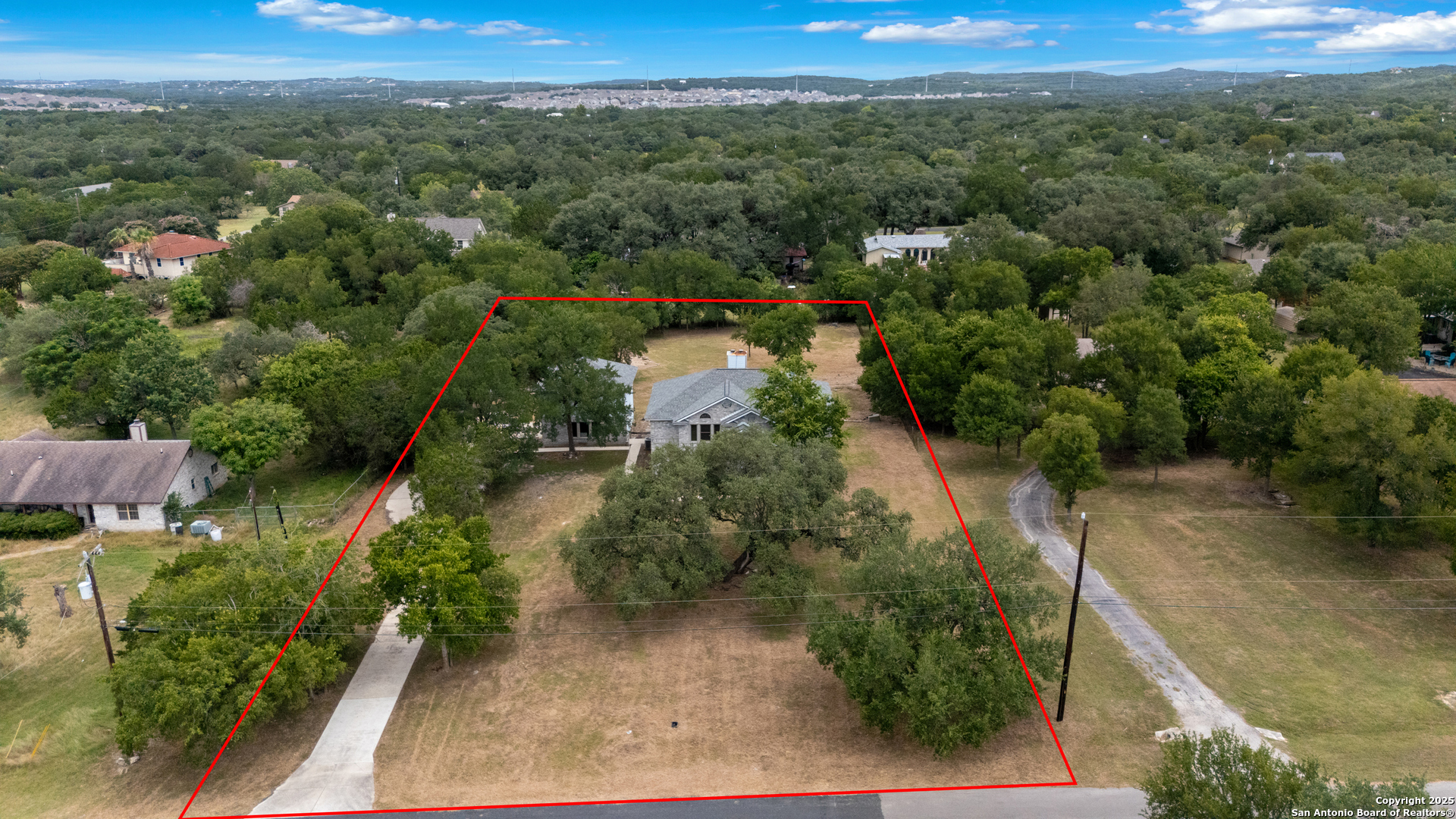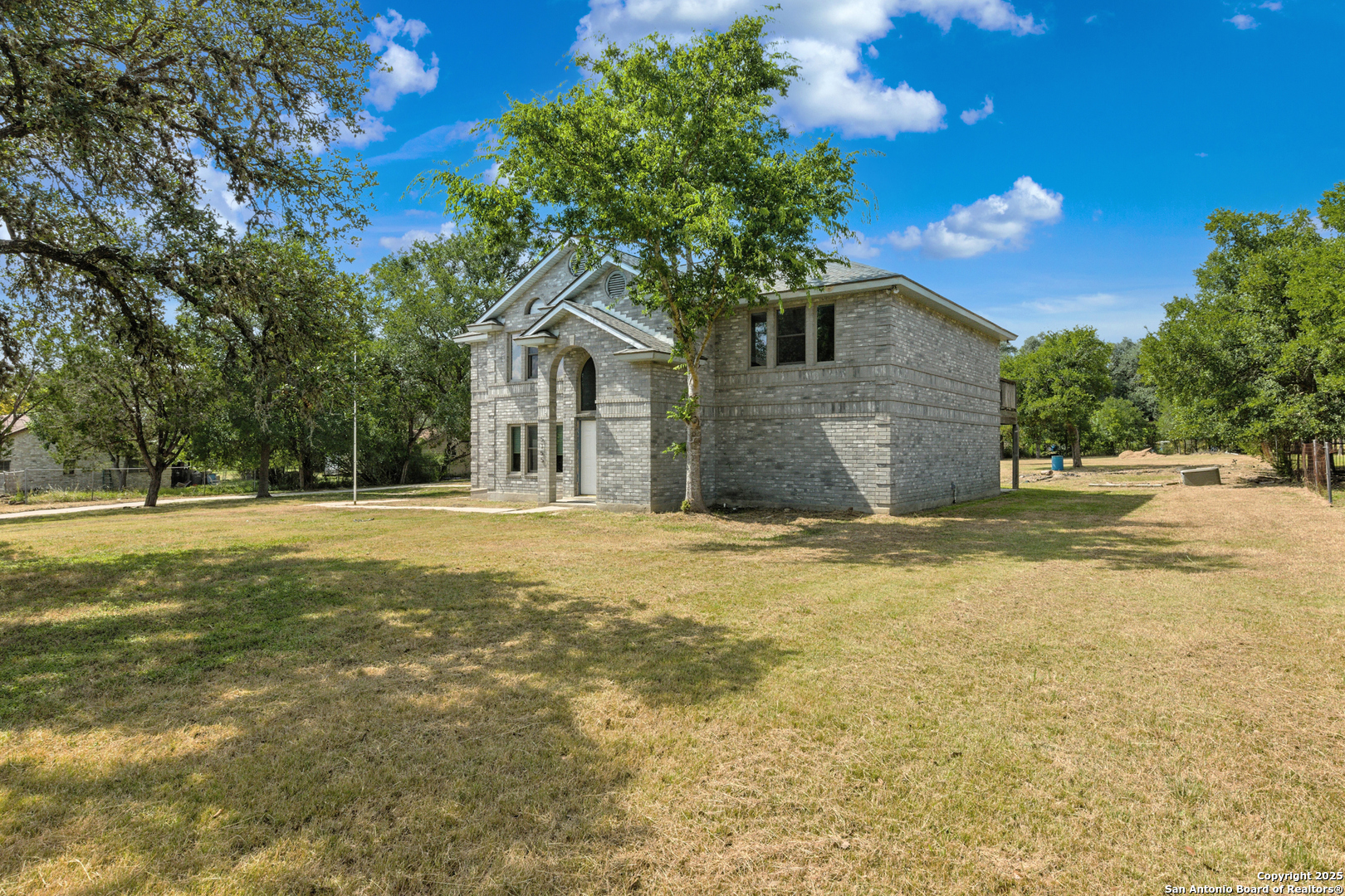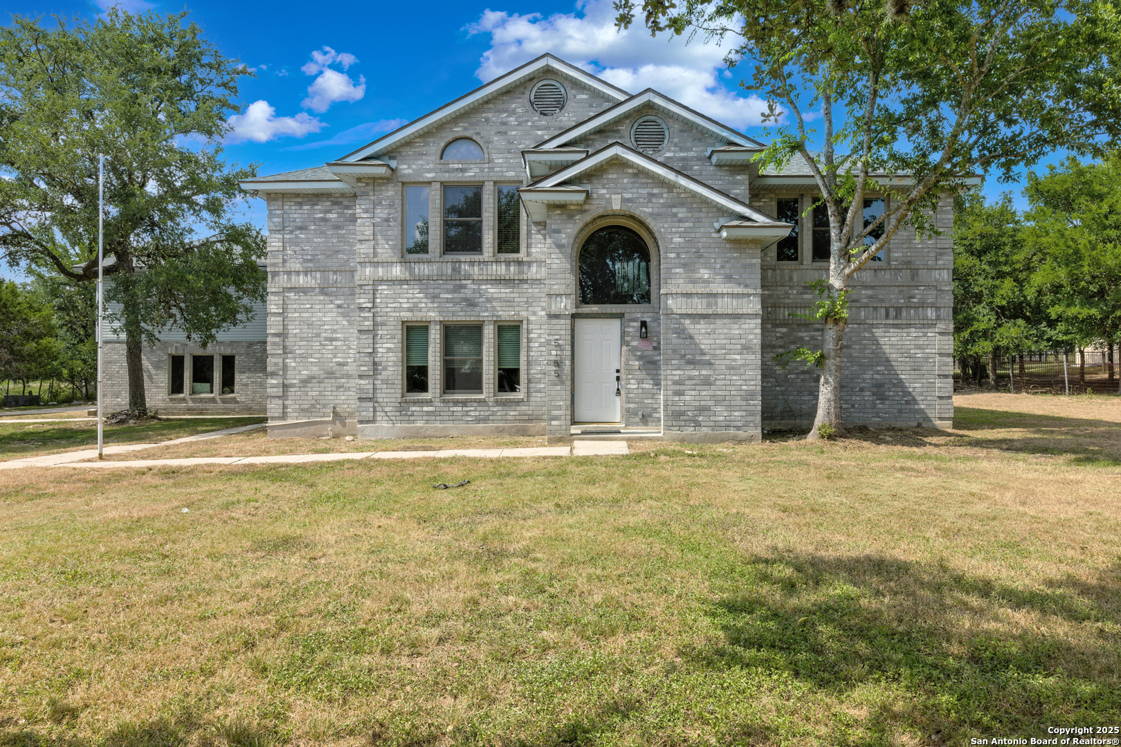Welcome to your dream home in the desirable Oak Village North community of Bulverde, nestled in the top-rated Comal ISD and zoned to the sought-after Johnson Ranch and Smithson Valley schools. This stunning two-story brick residence offers the perfect blend of privacy, space, and comfort. All set on a beautifully treed 1-acre lot. As you arrive, you'll be greeted by mature oak trees, a spacious detached garage, and a welcoming covered front patio perfect for morning coffee or evening relaxation. Step inside to nearly 3,000 square feet of living space thoughtfully designed with both functionality and a luxurious ambiance. The grand entry opens to high ceilings and two spacious living areas. Both featuring cozy fireplaces ideal for gathering or quiet evenings. A formal dining room provides the perfect setting for holiday meals, while the additional eat-in kitchen space is ideal for everyday living. The island kitchen is a chef's delight with ample counter space, a walk-in pantry, and both casual and formal dining options nearby. The primary suite is conveniently located downstairs, offering a private retreat with a walk-in closet and a luxurious full bath featuring double vanities. Upstairs, you'll find additional bedrooms and an immense balcony that overlooks the scenic backyard - a peaceful spot to unwind. Throughout the home, you'll find upgraded luxury vinyl flooring, plush carpet in select rooms, ceiling fans, and elegant touches like a chandelier and large windows bringing in natural light. Step outside to enjoy the expansive backyard with mature trees, ideal for play, gardening, or entertaining under the large covered patio. Whether you're hosting summer BBQs or simply enjoying the quiet peace, this outdoor space offers endless possibilities. Located in the heart of Bulverde, you're just a short drive from the natural wonders of the Texas Hill Country, including the Guadalupe River, Canyon Lake, and the famous Natural Bridge Caverns. Enjoy the charm of small-town living with the convenience of shopping, dining, and entertainment just minutes away. Don't miss your opportunity to own a spacious retreat with modern comforts and refreshed character, all on a rare 1-acre lot in one of the most desirable parts of Texas. Schedule your showing today!