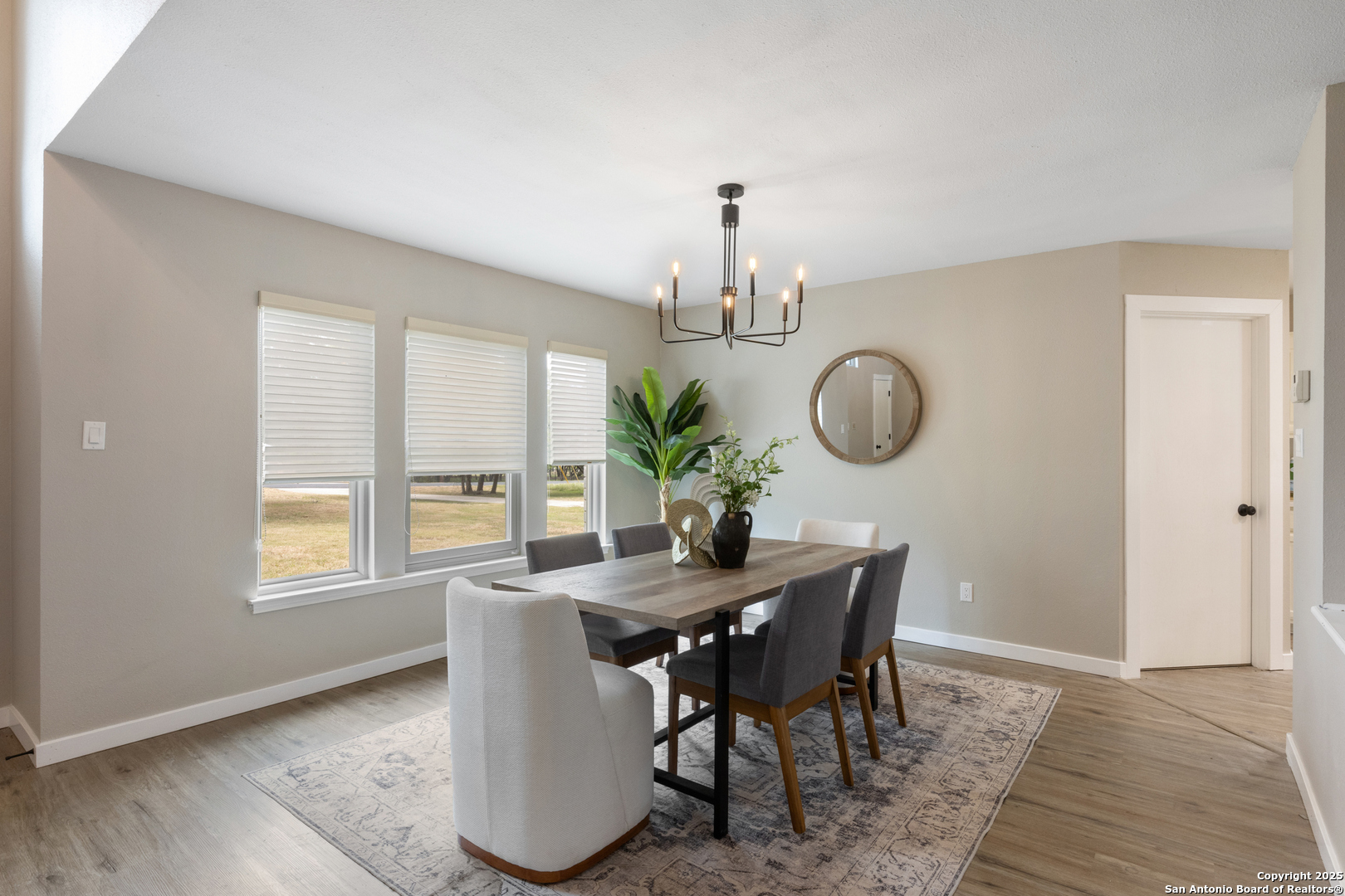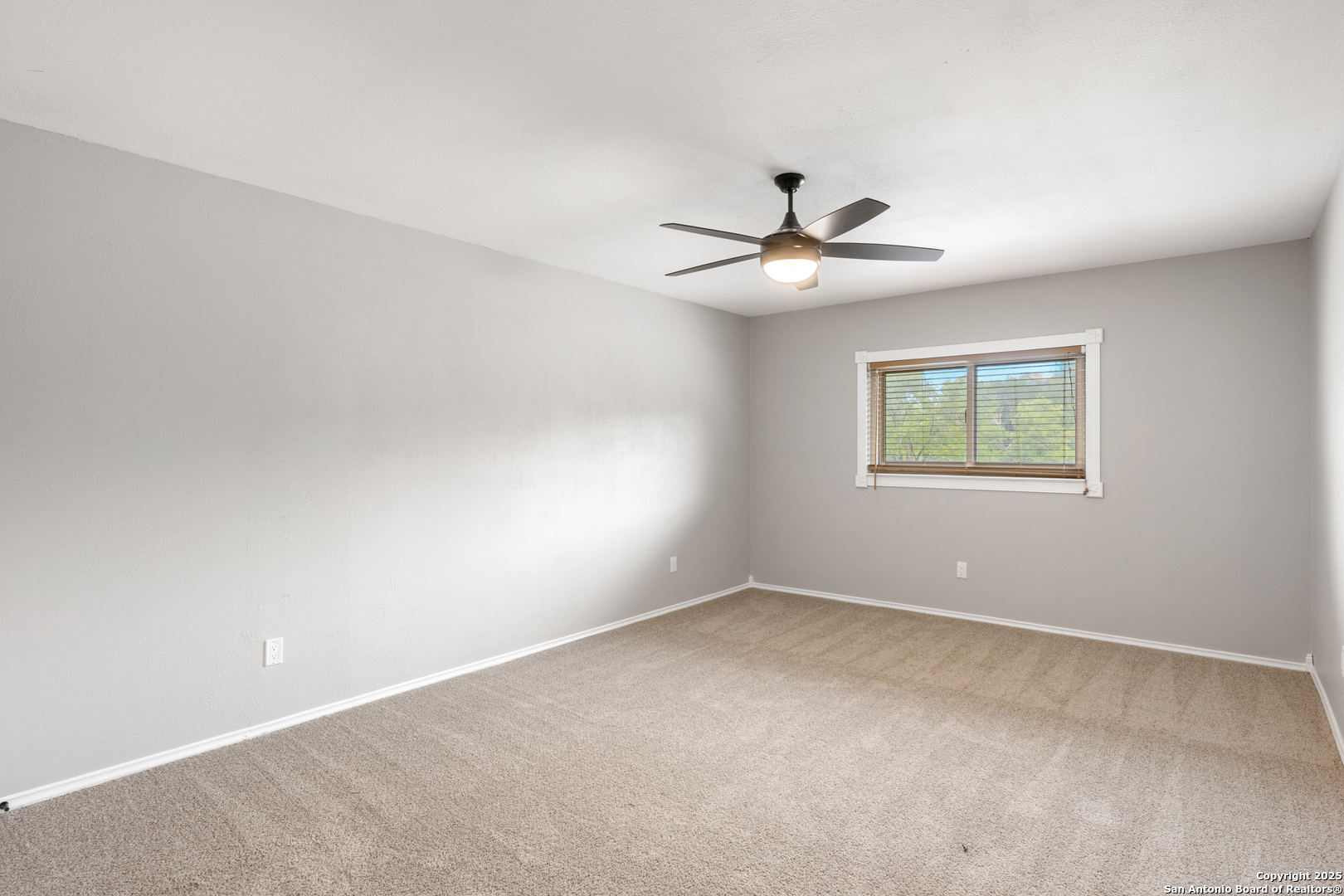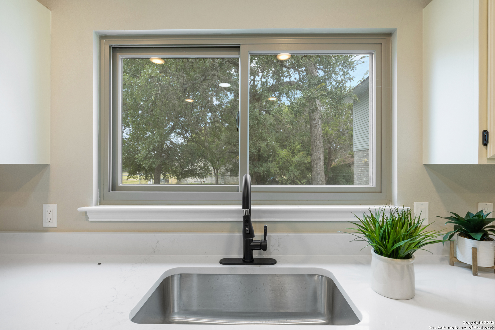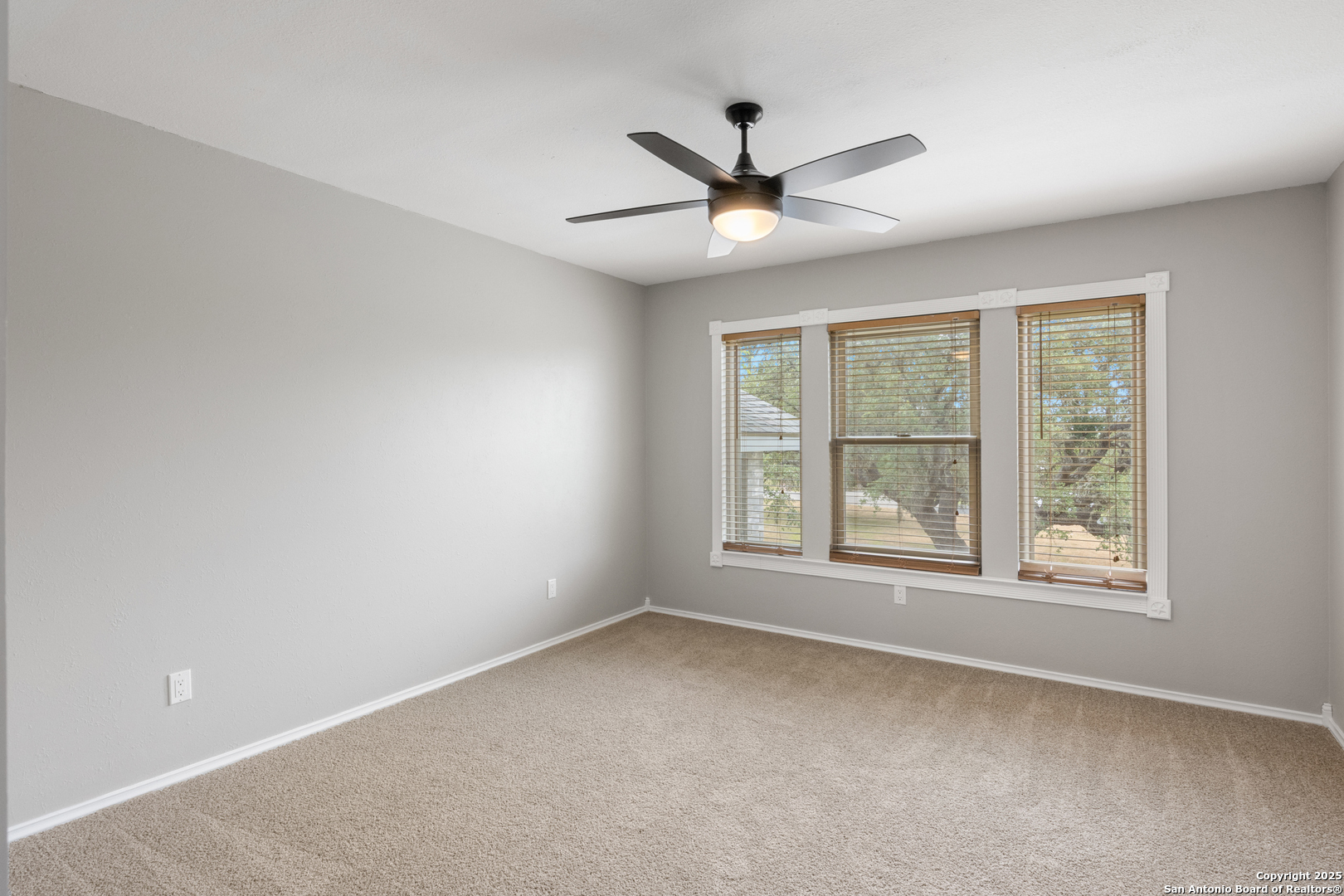 Welcome to your dream home in the desirable Oak Village North community of Bulverde, nestled in the top-rated Comal ISD and zoned to the sought-after Johnson Ranch and Smithson Valley schools. This stunning two-story brick residence offers the perfect blend of privacy, space, and comfort. All set on a beautifully treed 1-acre lot. As you arrive, you'll be greeted by mature oak trees, a spacious detached garage, and a welcoming covered front patio perfect for morning coffee or evening relaxation. Step inside to nearly 3,000 square feet of living space thoughtfully designed with both functionality and a luxurious ambiance. The grand entry opens to high ceilings and two spacious living areas. Both featuring cozy fireplaces ideal for gathering or quiet evenings. A formal dining room provides the perfect setting for holiday meals, while the additional eat-in kitchen space is ideal for everyday living. The island kitchen is a chef's delight with ample counter space, a walk-in pantry, and both casual and formal dining options nearby. The primary suite is conveniently located downstairs, offering a private retreat with a walk-in closet and a luxurious full bath featuring double vanities. Upstairs, you'll find additional bedrooms and an immense balcony that overlooks the scenic backyard - a peaceful spot to unwind. Throughout the home, you'll find upgraded luxury vinyl flooring, plush carpet in select rooms, ceiling fans, and elegant touches like a chandelier and large windows bringing in natural light. Step outside to enjoy the expansive backyard with mature trees, ideal for play, gardening, or entertaining under the large covered patio. Whether you're hosting summer BBQs or simply enjoying the quiet peace, this outdoor space offers endless possibilities. Located in the heart of Bulverde, you're just a short drive from the natural wonders of the Texas Hill Country, including the Guadalupe River, Canyon Lake, and the famous Natural Bridge Caverns. Enjoy the charm of small-town living with the convenience of shopping, dining, and entertainment just minutes away. Don't miss your opportunity to own a spacious retreat with modern comforts and refreshed character, all on a rare 1-acre lot in one of the most desirable parts of Texas. Schedule your showing today!