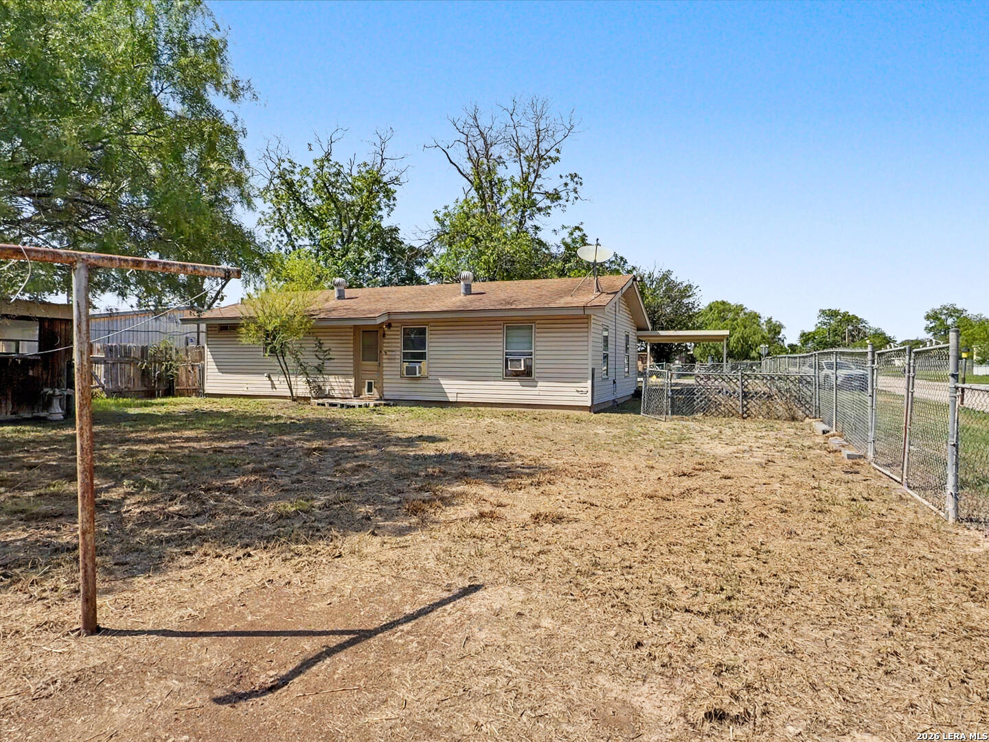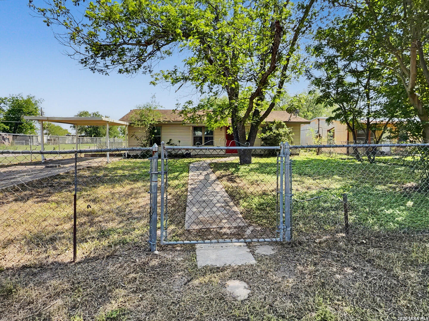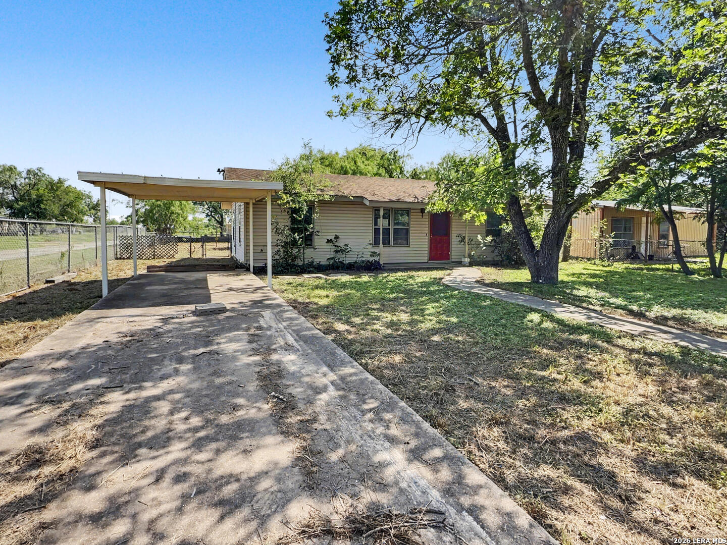 Opportunity awaits at 517 E Daniel St in Uvalde. This 3-bedroom, 1-bath home offers a practical layout and sits on a spacious lot with mature trees that provide natural shade. The fully fenced yard includes a cross-fenced backyard, offering flexibility for pets, gardening, or outdoor activities. Conveniently located with access to local community amenities, including Memorial Park for outdoor recreation, El Progreso Memorial Library for reading and study spaces, and Uvalde Memorial Golf Course for leisure activities. Everyday shopping, dining, and essential services are also within reach. The home presents an opportunity for updates and improvements, making it a potential option for buyers looking to personalize a property or invest. Whether you're seeking a primary residence or an investment opportunity, this property offers a canvas with potential in an established residential setting.