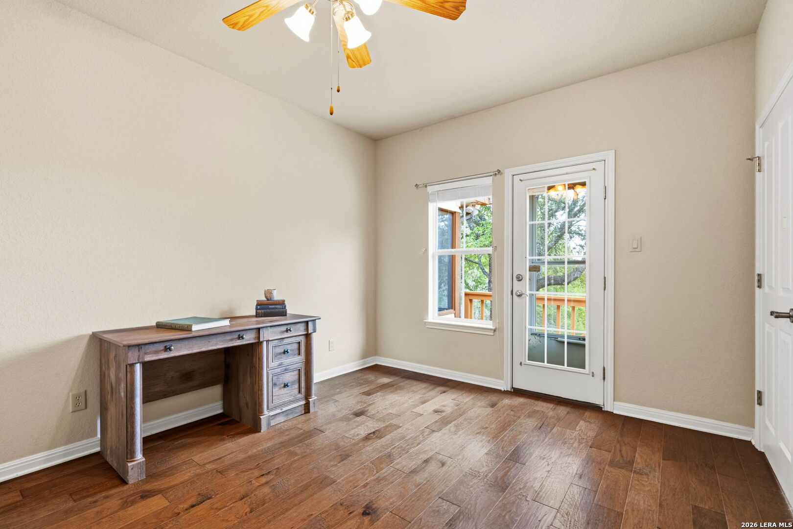 Original owner had custom built by J Long, Builder in the popular neighborhood known as The Crossing at Kenberg. Situated between Bergheim and Kendalia, The Crossing features amazing community amenities such as a River Park on the Guadalupe and picnic areas. Home features stone exterior, covered front porch, screened back porch and expansive deck overlooking a wooded bluff view. Property is fenced and gated with automatic opener. Gleaming wood floors, stone woodburning fireplace and open floorplan are hallmarks of 517 Mountain Creek Trail. Featuring a split floorplan, the Primary Bedroom opens to office with cabinet (could function as 4th bedroom if needed). The secondary bedrooms connect via a Jack n Jill bath. The built-in desk with shelving is versatile and could be converted to a bar very easily. The laundry room has built-in cabinets and counters, roof for an extra refrigerator plus a utility closet. Garage features an exterior pedestrian door plus a small storage room and there is a Water Softener. The Crossing is a great location with good access to Boerne, Bulverde, Spring Branch, San Antonio and Blanco. The country lifestyle has never been better!