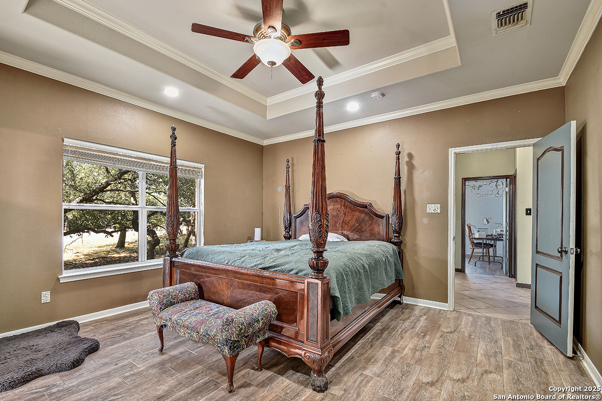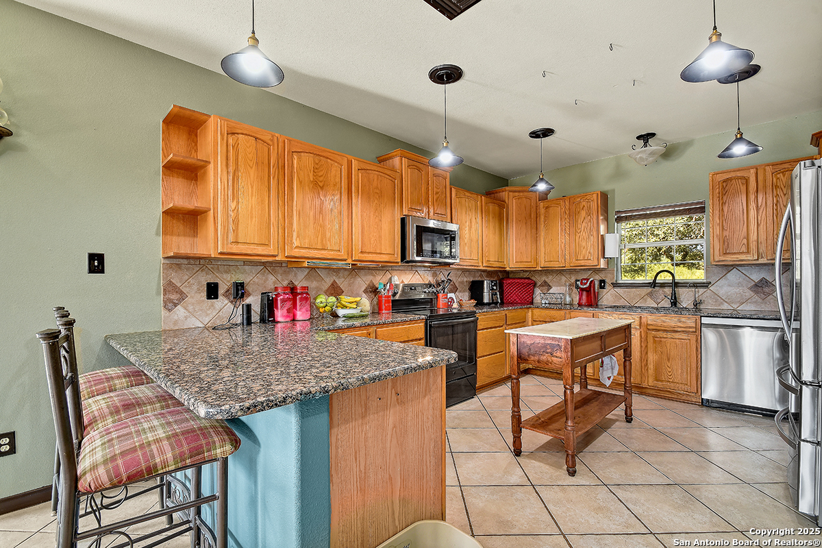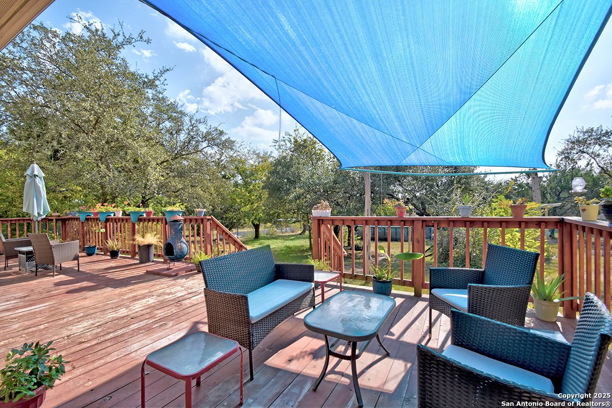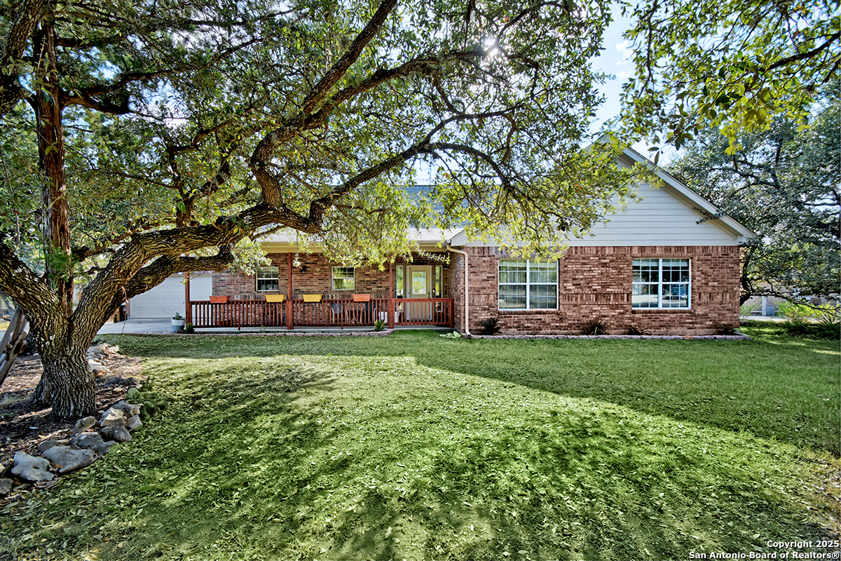 Located in the heart of Timberwood Park set on a beautiful 3/4-acre, tree-studded lot, this spacious single-story home with bonus space offers classic Hill Country charm, abundant wildlife, and room to spread out-inside and out. With 3 bedrooms, 2 baths, and an expansive open-concept living area, this property delivers both comfort and potential in one of San Antonio's most sought-after acreage communities. Inside, you'll find a wide-open living room anchored by large windows that flood the space with natural light, tray ceilings with recessed lighting, dual ceiling fans, and tile flooring throughout the main areas-perfect for entertaining or everyday living. The generously sized kitchen features solid wood cabinetry, granite countertops, stainless steel appliances, and a roomy island that adds extra prep and storage space. The adjoining dining area offers peaceful views of the backyard and an easy flow for family gatherings. The spacious primary suite includes a tray ceiling, large picture window overlooking the oak trees, and a private bath with a separate shower, soaking tub, and an extended vanity. Secondary bedrooms are well-sized with ample closet space, and the additional flex room can easily function as a home office, hobby room, or study area. Step outside and enjoy true Hill Country living-towering mature oaks, shaded lawn areas, natural landscaping, and frequent visits from local deer create a serene outdoor retreat. The covered front porch and large yard offer endless potential for outdoor seating, entertaining, or future enhancements. R1esidents enjoy spacious lots, beautiful scenery, and access to a renowned 30-acre private neighborhood park with a fishing lake, pool, sports courts, clubhouse, and regular community events. All of this with no city taxes and just minutes from shopping, dining, and top-rated Comal ISD schools. A rare find on a large lot with privacy, wildlife, and timeless charm-518 Oracle Dr is your chance to bring your vision to a highly desirable Hill Country setting. Come see it today!