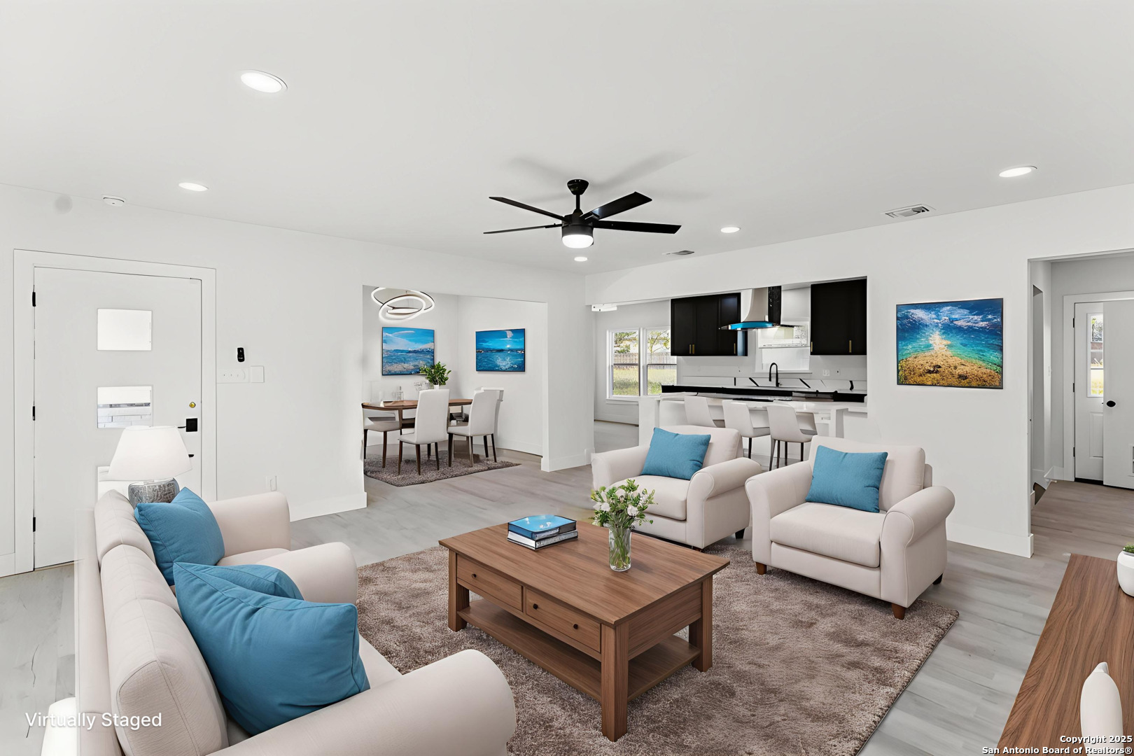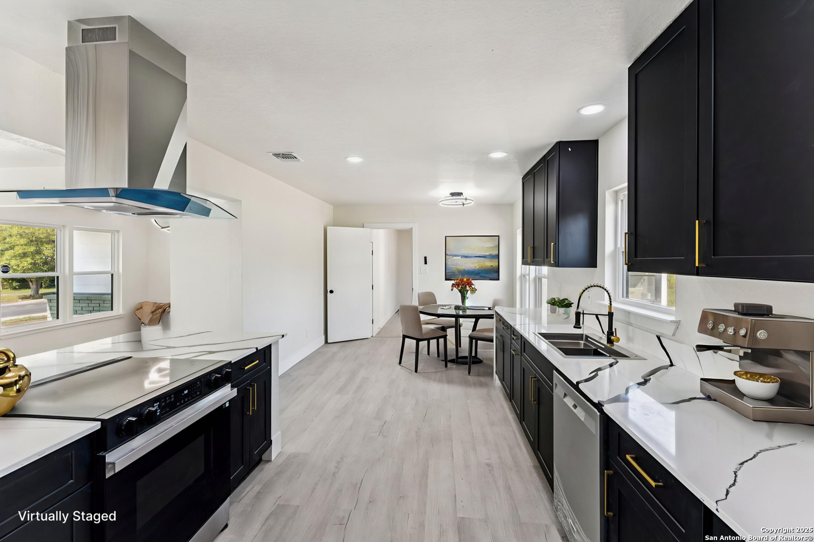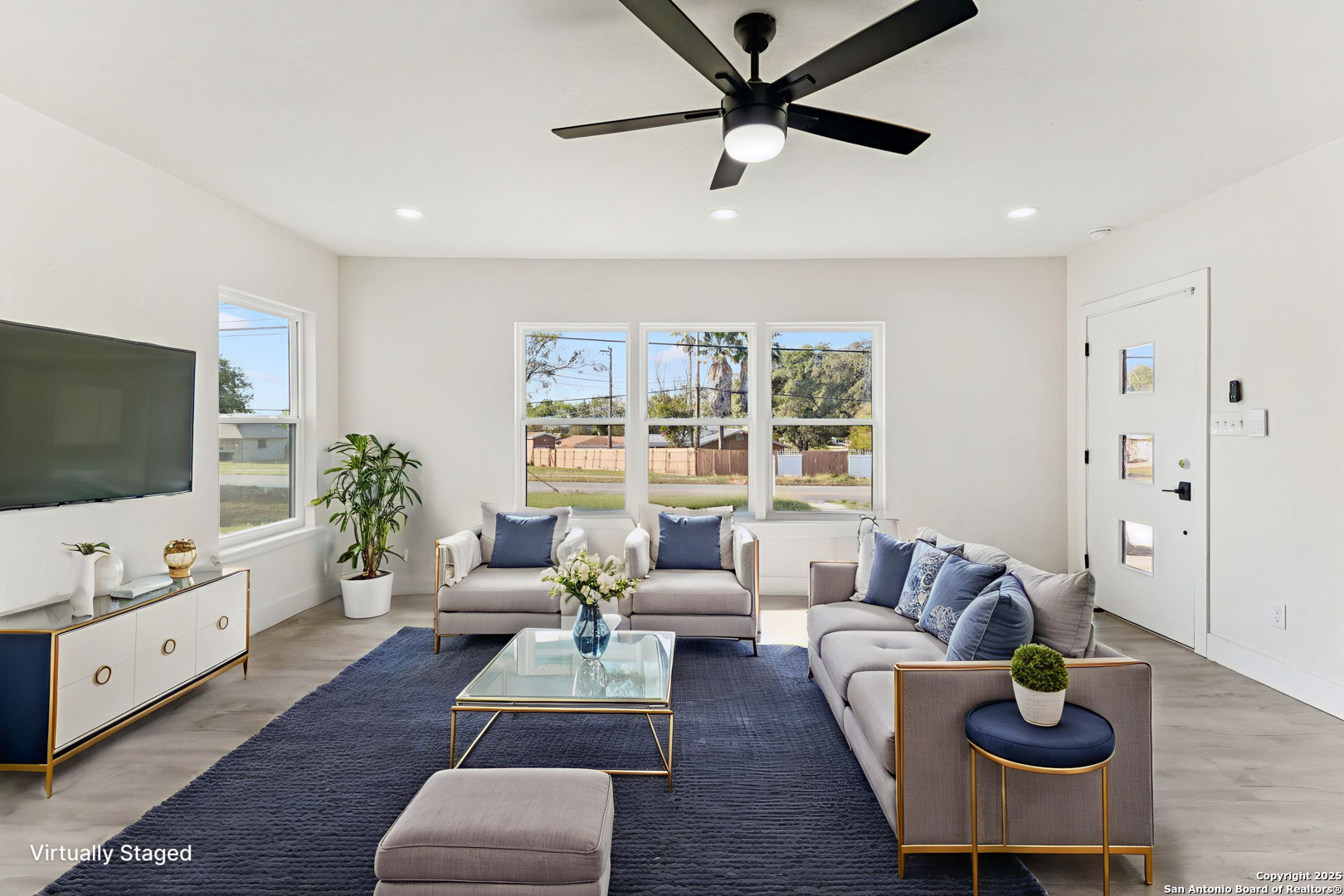 Welcome to 519 Jackson Keller Rd - a completely renovated 4-bedroom, 3-bathroom home in the heart of North Central San Antonio! This 2,673 sq ft home sits on an expansive 0.49-acre lot and features an impressive list of upgrades that make it truly move-in ready. From the moment you arrive, you'll notice the fresh curb appeal, thanks to the brand-new roof, windows, garage doors, and exterior paint. Step inside to a bright and modern open-concept layout perfect for both relaxing and entertaining. The home showcases a fully updated kitchen with brand-new cabinets, stainless steel appliances, modern fixtures, and quartz countertops. Each of the three bathrooms has been completely remodeled with contemporary tile work, new vanities, and designer finishes. You'll love the versatility of the newly added in-law suite or game room, complete with its own private bathroom - ideal for multi-generational living or guests. Other major upgrades include a new water heater, new electrical panel and complete rewiring, new sewer line, and brand-new HVAC system for year-round comfort. The home also features a spacious laundry room, a private dining area, and generous storage throughout. Outside, the oversized driveway allows parking for up to 6 vehicles, in addition to the 2-car garage with modern new doors. All of this is nestled in a convenient location just minutes from San Antonio International Airport, North Star Mall, The Quarry Market, Hardberger Park, and top-rated NEISD schools. With nearly every major system replaced or upgraded, this home offers peace of mind and modern living at its finest. Don't miss your chance to own this truly turn-key home!