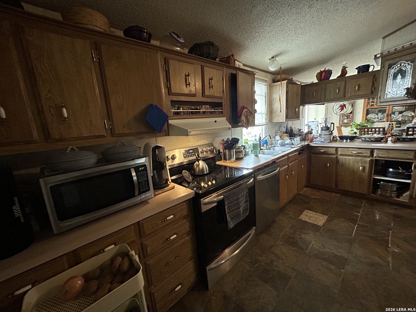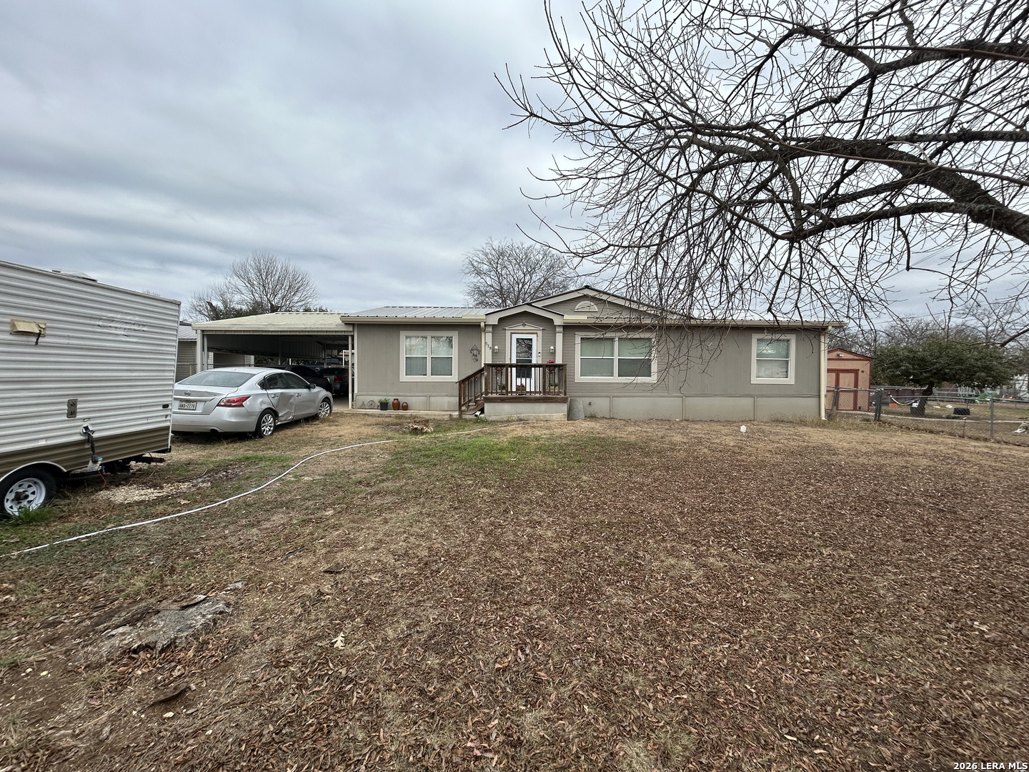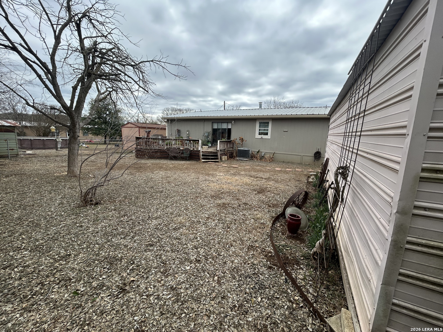 Discover this move-in-ready property in a prime Kerrville location. Recent upgrades include interior paint, PEX plumbing, and a dishwasher, along with a walk-in tub and a water heater equipped with a pressure gauge. The durable metal roof covers both the main structure and the two-car carport. Outdoor features include a spacious deck, a 15x20 storage building, a dog kennel, and a hot house. Situated in a desirable area, you are minutes from schools, convenience stores, and recreation. Bring your preferred flooring to complete the interior of this well-maintained space.