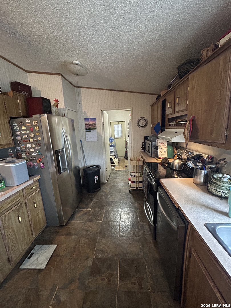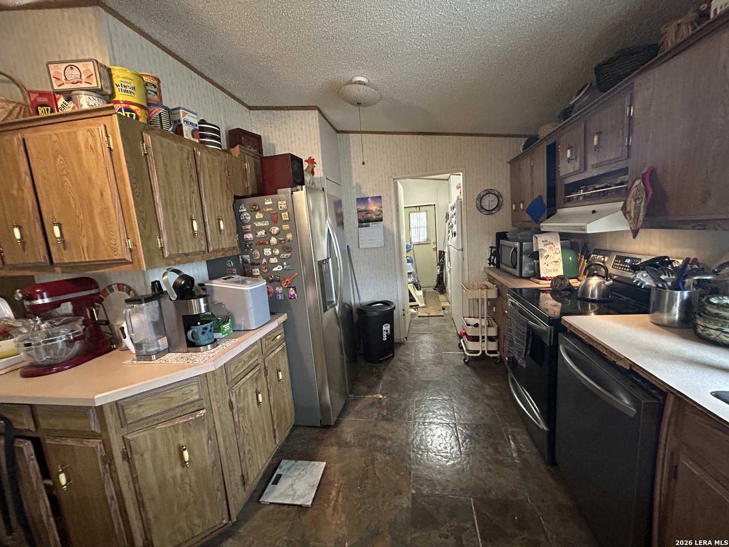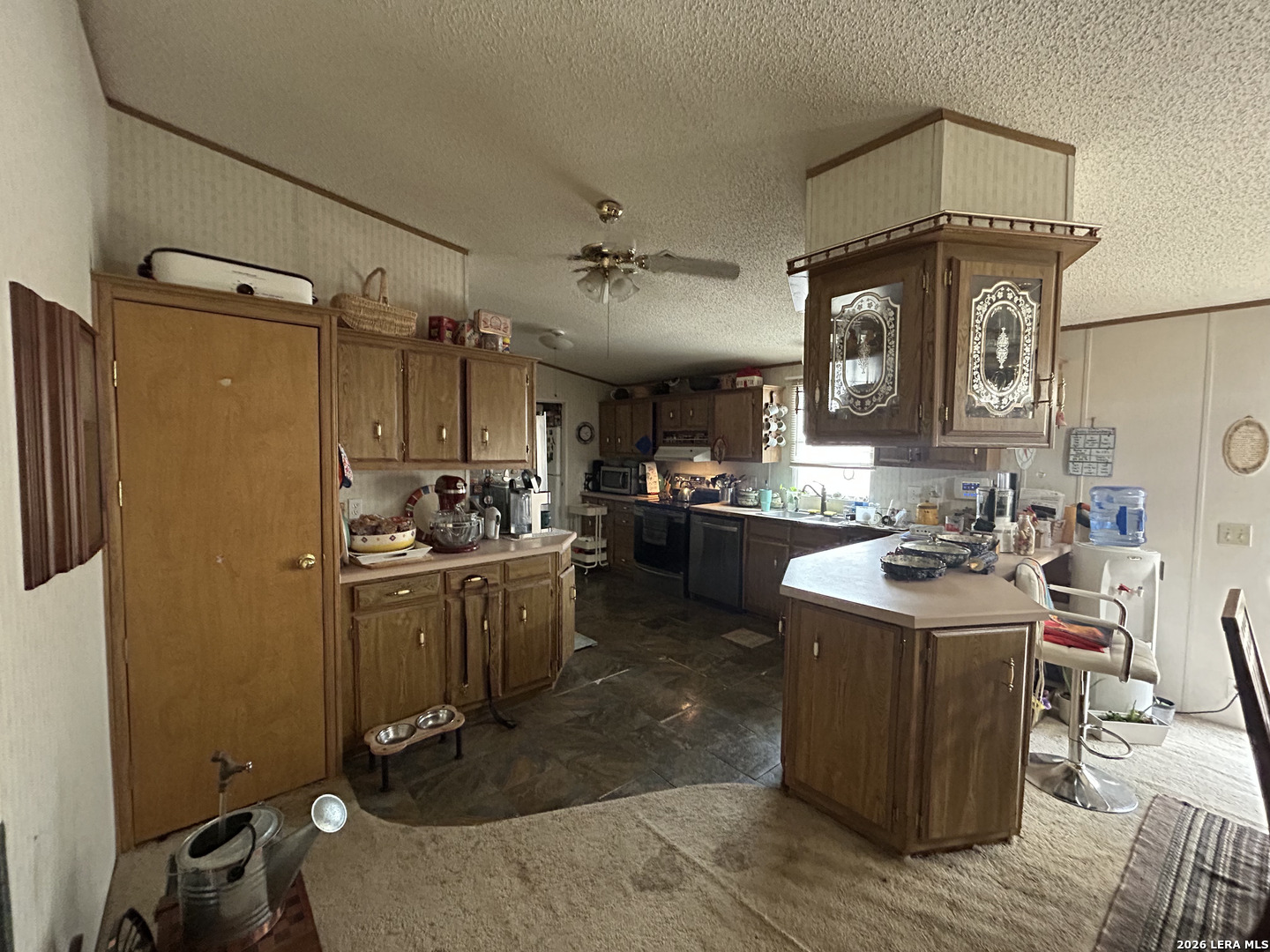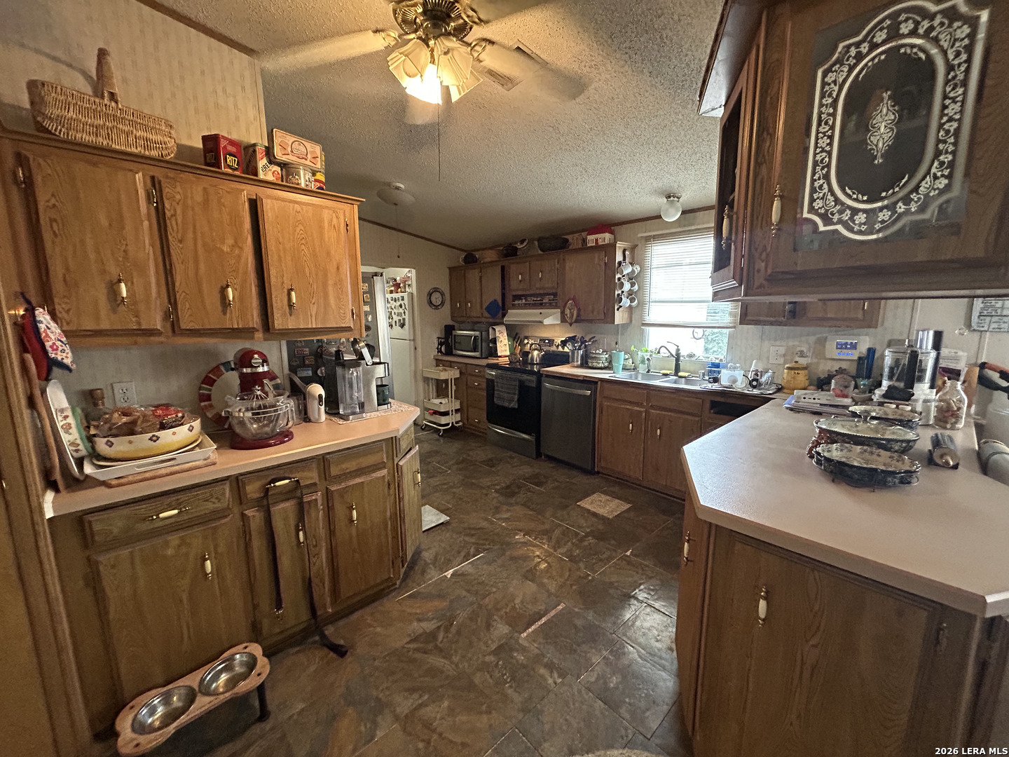 Discover this move-in-ready property in a prime Kerrville location. Recent upgrades include interior paint, PEX plumbing, and a dishwasher, along with a walk-in tub and a water heater equipped with a pressure gauge. The durable metal roof covers both the main structure and the two-car carport. Outdoor features include a spacious deck, a 15x20 storage building, a dog kennel, and a hot house. Situated in a desirable area, you are minutes from schools, convenience stores, and recreation. Bring your preferred flooring to complete the interior of this well-maintained space.