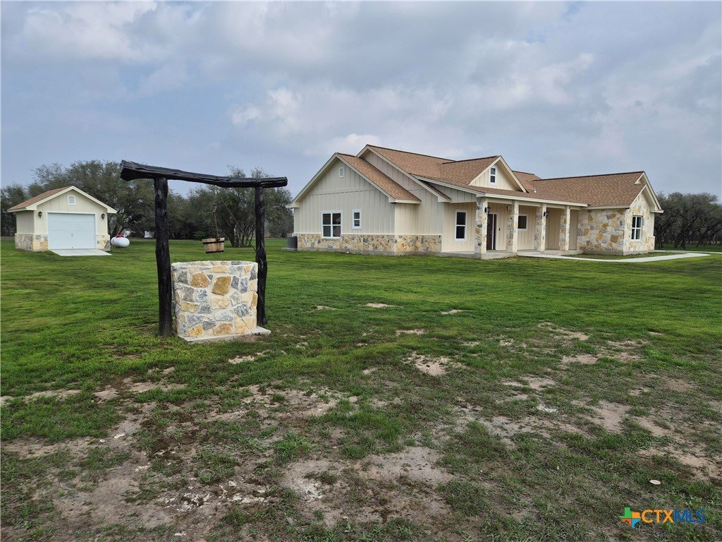 520 Essence Dr Victoria, TX. Premium New Construction on 3 Private Acres in Serenity Estates. 4 Bedrooms (or 3 + Office) | 2 Bathrooms | 2,020 Sq Ft Living Area | Expansive Porches (715 Sq Ft) 2-Car Garage (615 Sq Ft) 216 Sq Ft Storage Building | 3-Acre lot with wooded park-like side yard. Flexible Layout, Open-Concept Living, Gourmet Kitchen (with premium built-in appliances), practical extras (mud room, large utility room, and equipment room). Beautiful built-in rock fireplace. Premium touches throughout and engineered for strength and longevity. This brand-new 2026 construction delivers premium quality, thoughtful design, and abundant space on a peaceful 3-acre lot. Rural tranquility and nearby Victoria amenities.