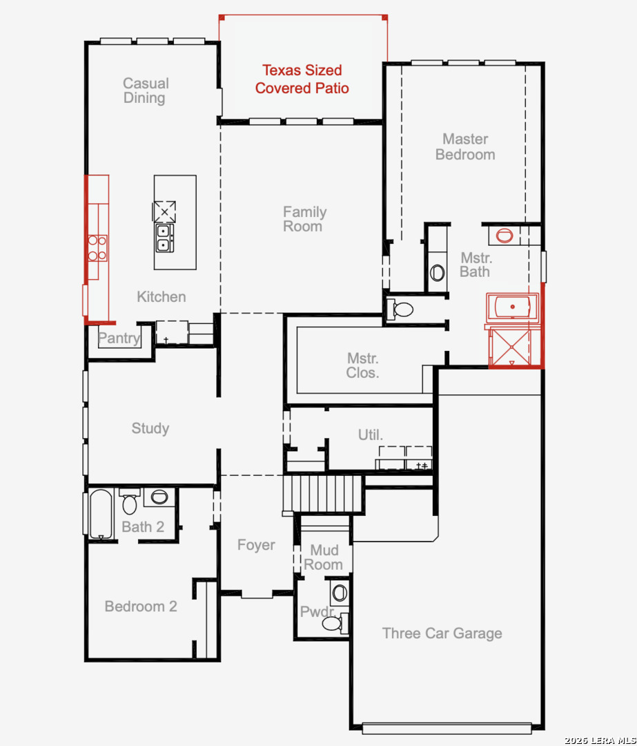 This stunning 2-story home at 520 Paramus Park in Buffalo Crossing truly stands out with its upgraded C2 front elevation, featuring beautiful stucco and stone. Offering 5 bedrooms and 4.5 bathrooms, this home includes a private study, soaring high ceilings in the main living area, and a spacious game room perfect for entertaining. The gourmet kitchen is designed to impress with sleek quartz countertops and a large island, all overlooking the open-concept living space. The primary suite is a true retreat, showcasing a spa-like bathroom with a freestanding tub and elegant mud-set shower details. With an additional 5th bedroom and 4th full bathroom, this home offers the perfect setup for guests or multi-generational living. Step outside to enjoy the Texas covered patio ideal for relaxing or hosting. Don't miss your chance to tour this incredible home in Buffalo Crossing!