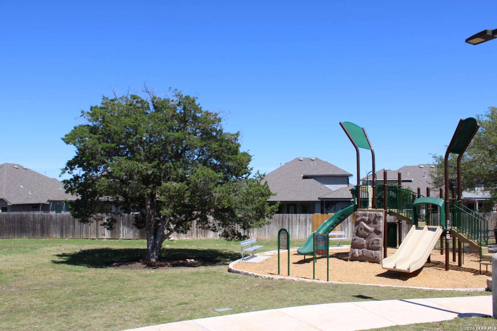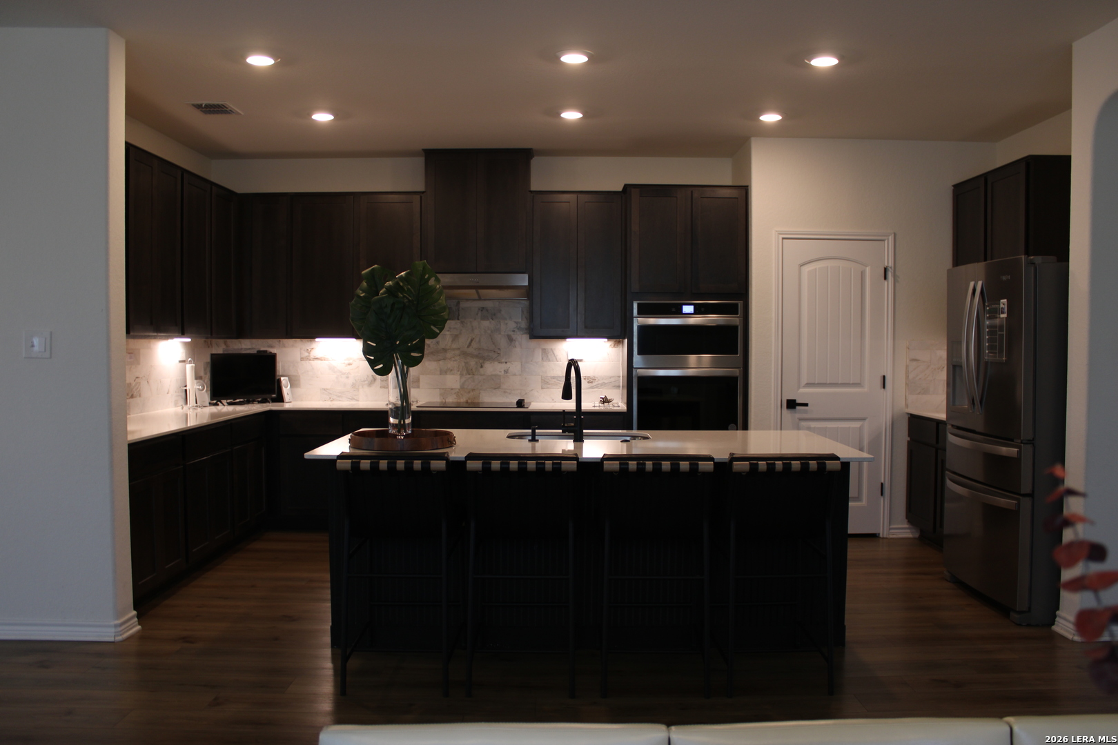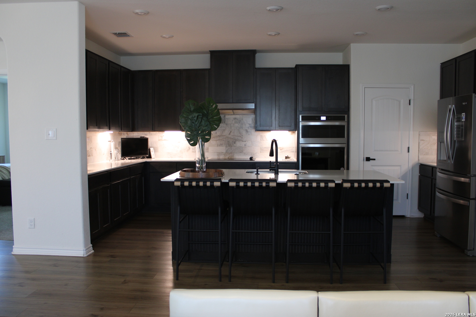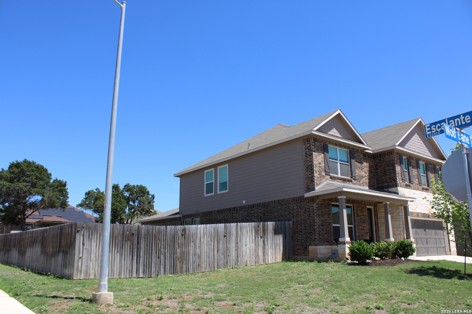 Welcome to this exceptional home in Canyon Crest at Evans! Located at 5203 Wolf Bane Dr in San Antonio, this beautifully built 2023 corner residence offers a perfect blend of modern design, smart features, and everyday comfort. This spacious home features 5 bedrooms, 3 full bathrooms, and 1 half bath. One of the bedrooms includes its own private bathroom, making it ideal for guests or family. Four bedrooms offer generously sized closets, providing ample storage throughout the home. A dedicated office space creates the perfect environment for working from home or studying. The expansive family room offers a comfortable setting for gatherings and relaxation. The kitchen has been thoughtfully upgraded with a stylish backsplash, enhanced cabinetry with soft-close drawers, and improved interior organization for added functionality. Smart home features include upgraded lighting and smart appliances such as the oven and microwave, bringing convenience and efficiency to your daily routine. Additional upgrades include modern light fixtures throughout and a whole-house water softener and filtration system for enhanced water quality. Situated on a corner lot, the property offers a large backyard with plenty of space to design your own outdoor retreat, whether that includes a patio, outdoor kitchen, or pool. The home also includes a two-car garage and is located in a quiet, well-maintained community. Residents enjoy access to a beautiful community pool and playground, providing great spaces to relax and enjoy outdoor activities. Conveniently located near hospitals, healthcare facilities, fitness centers, supermarkets, restaurants, and more, this home offers easy access to everything you need. This is a move-in ready property that combines space, functionality, and modern upgrades-an excellent opportunity to make it your own!