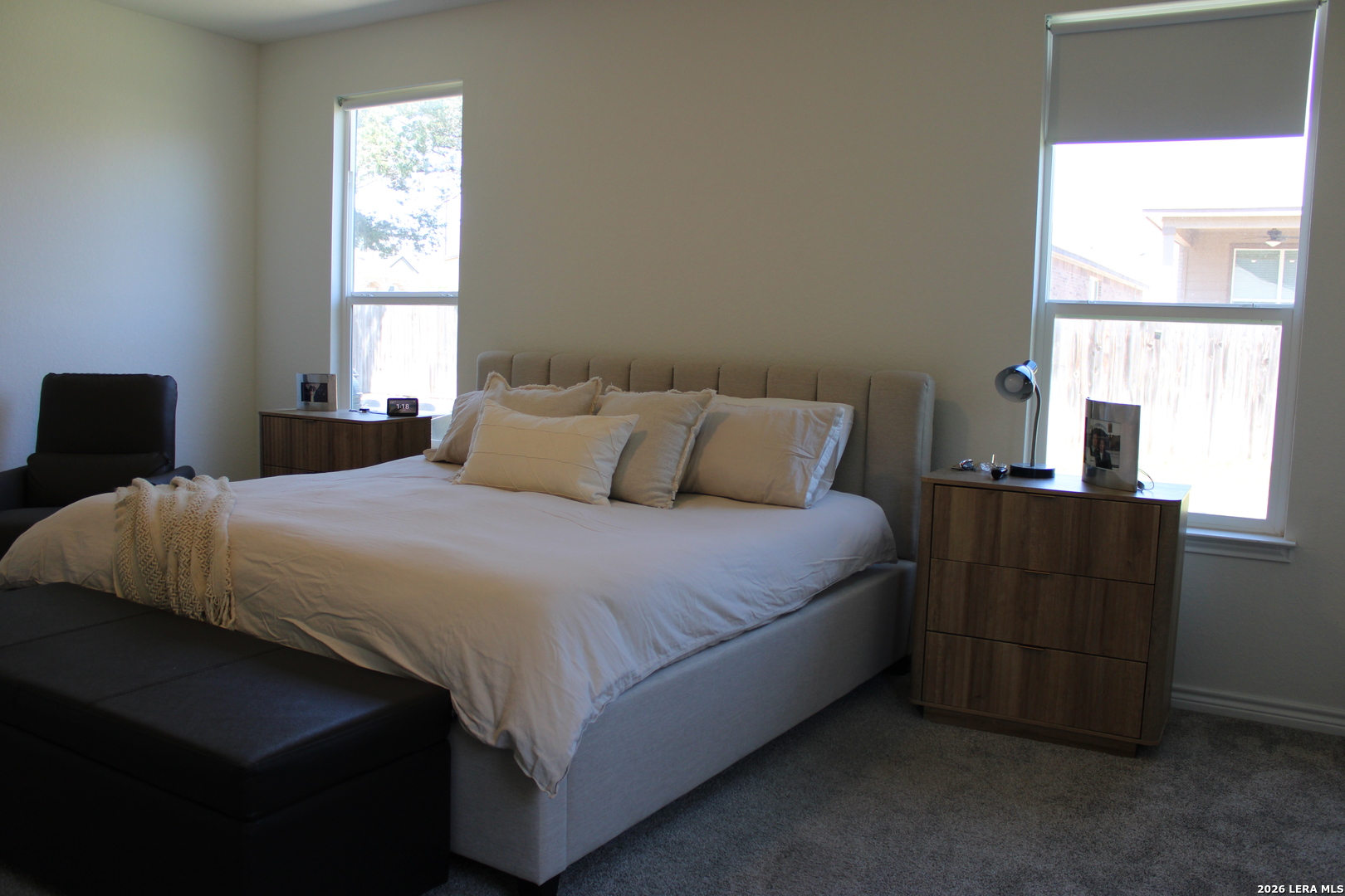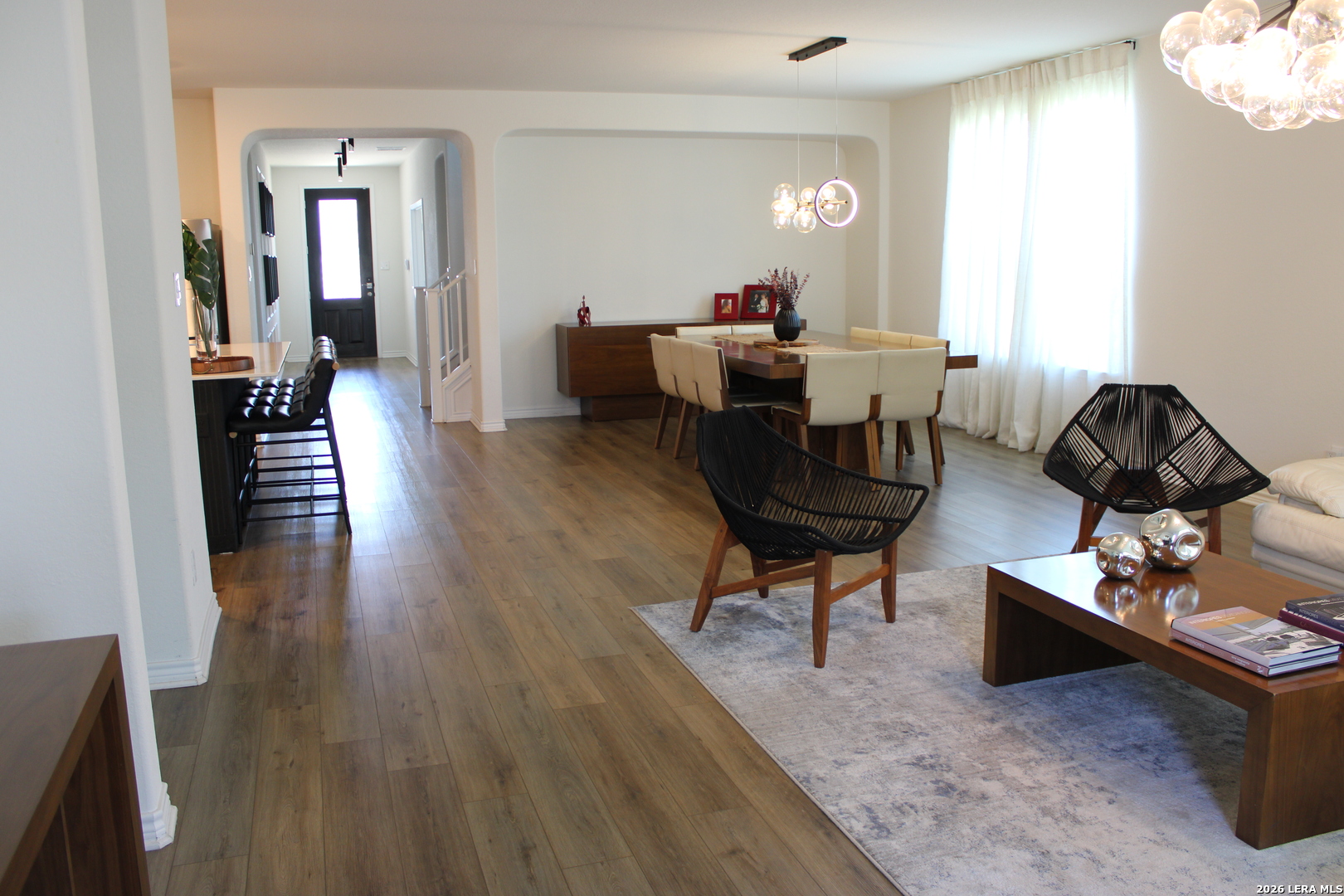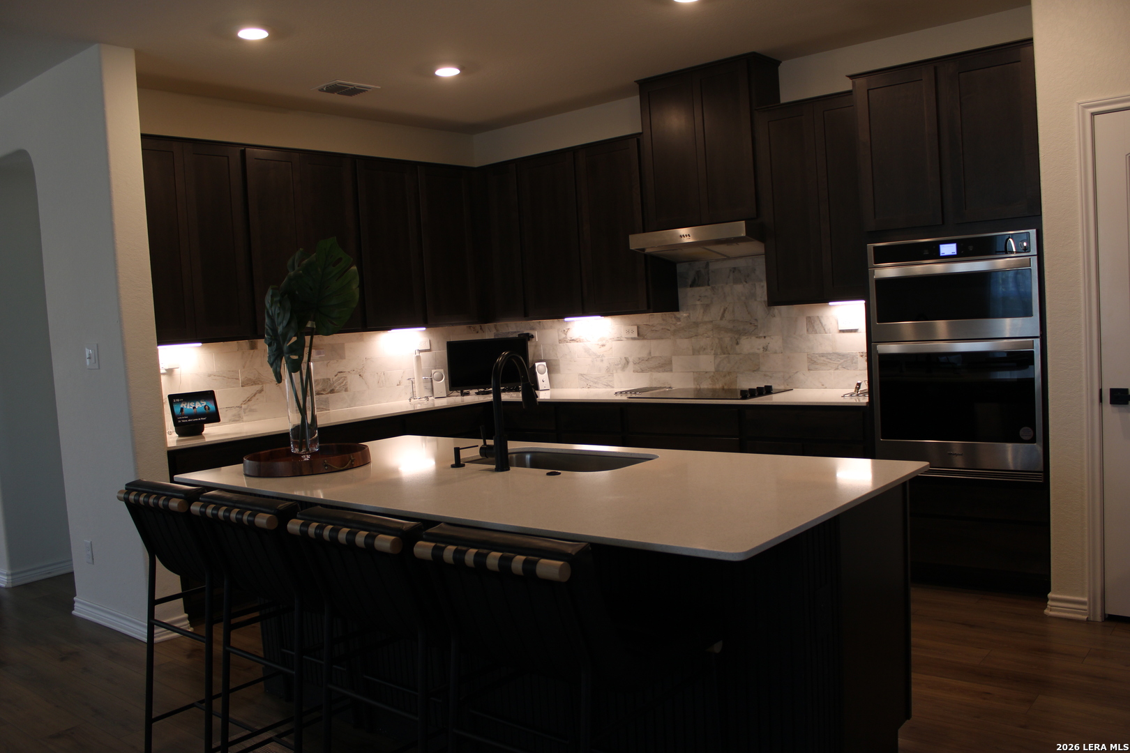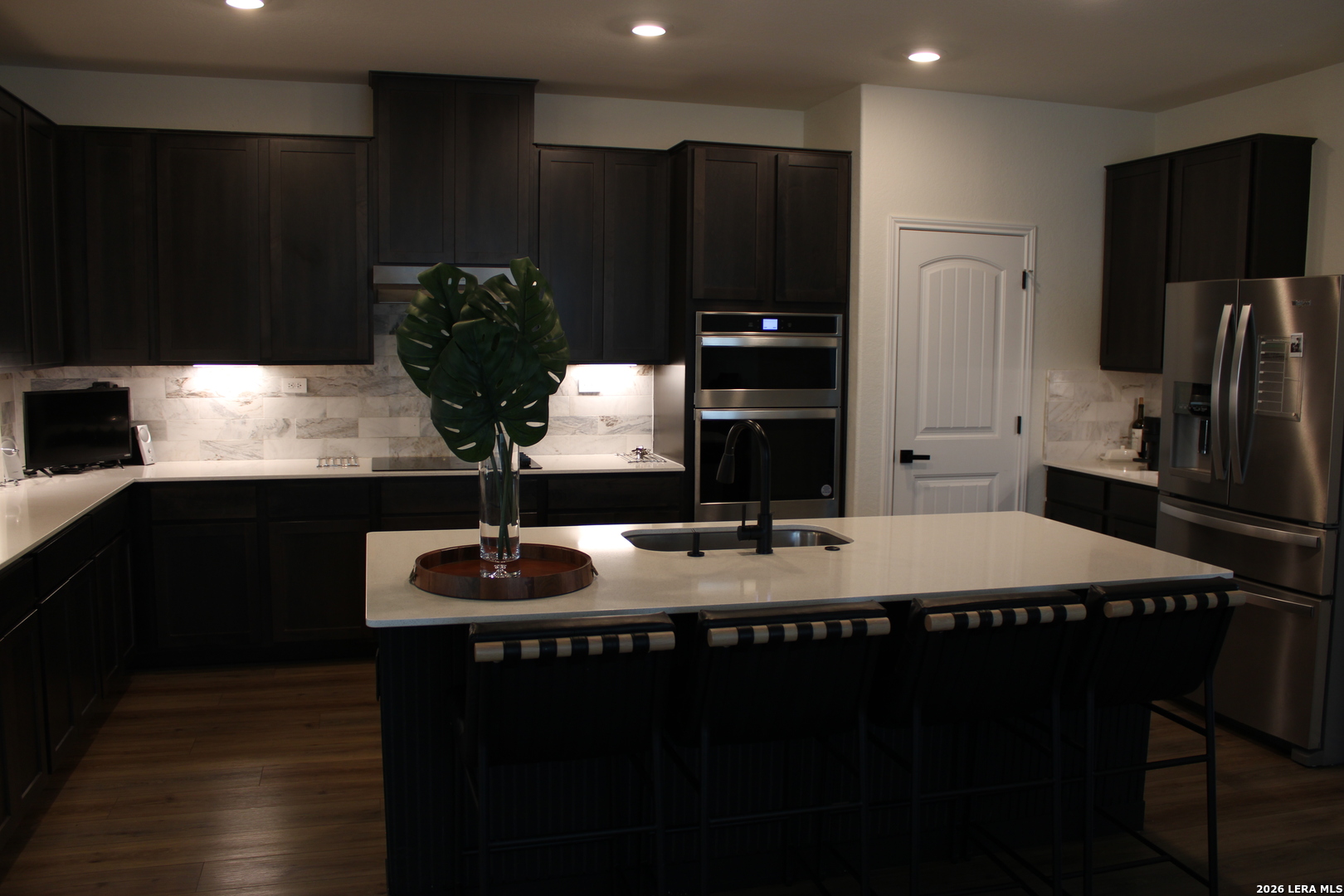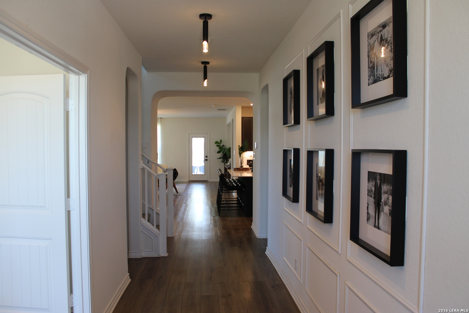 Welcome to this exceptional home in Canyon Crest at Evans! Located at 5203 Wolf Bane Dr in San Antonio, this beautifully built 2023 corner residence offers a perfect blend of modern design, smart features, and everyday comfort. This spacious home features 5 bedrooms, 3 full bathrooms, and 1 half bath. One of the bedrooms includes its own private bathroom, making it ideal for guests or family. Four bedrooms offer generously sized closets, providing ample storage throughout the home. A dedicated office space creates the perfect environment for working from home or studying. The expansive family room offers a comfortable setting for gatherings and relaxation. The kitchen has been thoughtfully upgraded with a stylish backsplash, enhanced cabinetry with soft-close drawers, and improved interior organization for added functionality. Smart home features include upgraded lighting and smart appliances such as the oven and microwave, bringing convenience and efficiency to your daily routine. Additional upgrades include modern light fixtures throughout and a whole-house water softener and filtration system for enhanced water quality. Situated on a corner lot, the property offers a large backyard with plenty of space to design your own outdoor retreat, whether that includes a patio, outdoor kitchen, or pool. The home also includes a two-car garage and is located in a quiet, well-maintained community. Residents enjoy access to a beautiful community pool and playground, providing great spaces to relax and enjoy outdoor activities. Conveniently located near hospitals, healthcare facilities, fitness centers, supermarkets, restaurants, and more, this home offers easy access to everything you need. This is a move-in ready property that combines space, functionality, and modern upgrades-an excellent opportunity to make it your own!