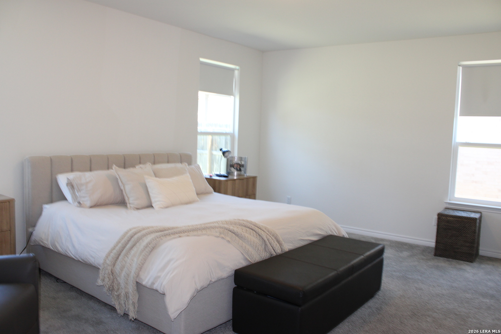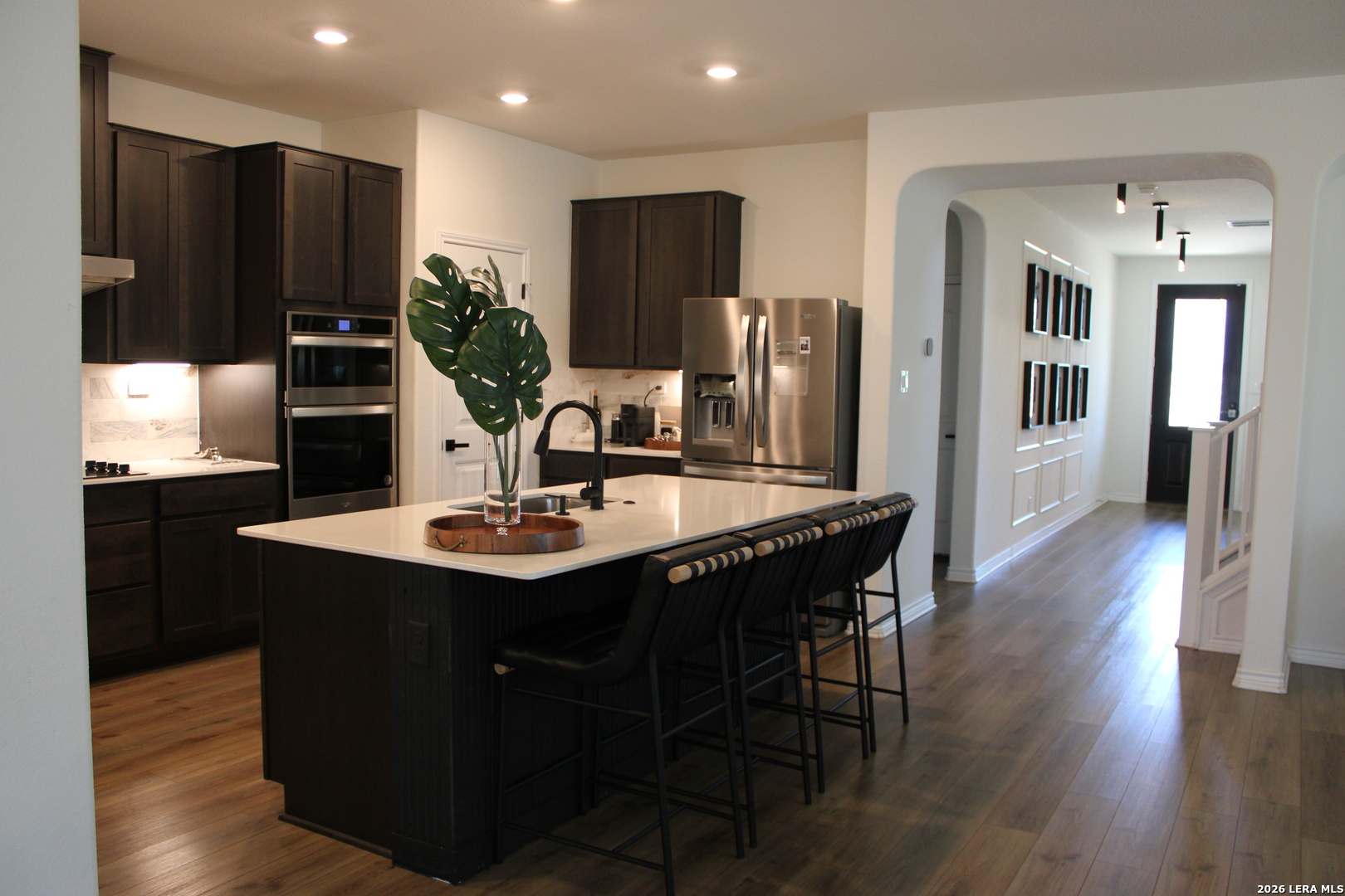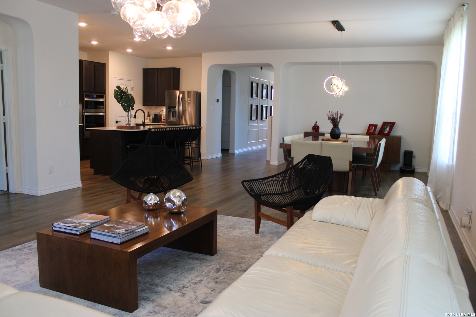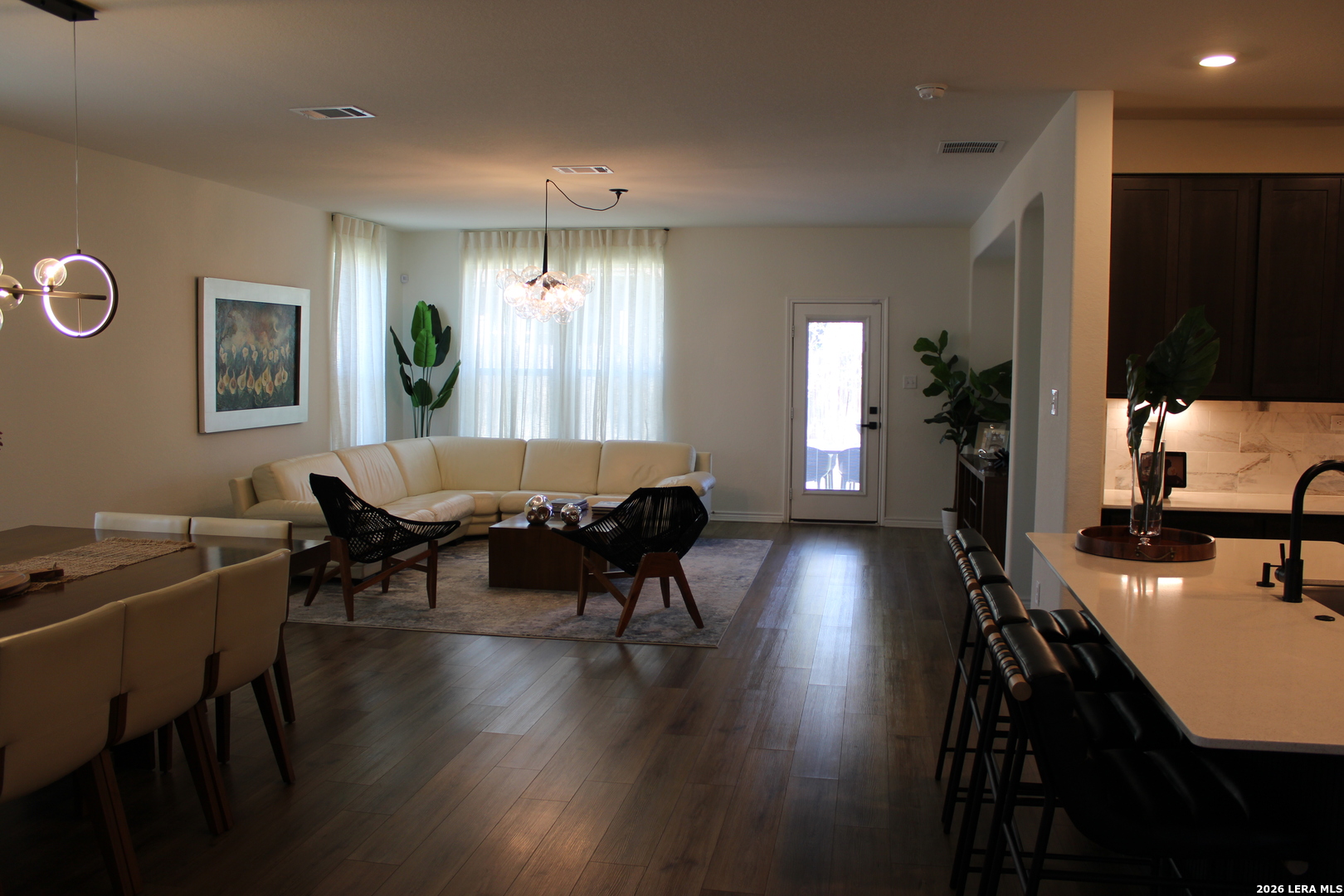 Welcome to this exceptional home in Canyon Crest at Evans! Located at 5203 Wolf Bane Dr in San Antonio, this beautifully built 2023 corner residence offers a perfect blend of modern design, smart features, and everyday comfort. This spacious home features 5 bedrooms, 3 full bathrooms, and 1 half bath. One of the bedrooms includes its own private bathroom, making it ideal for guests or family. Four bedrooms offer generously sized closets, providing ample storage throughout the home. A dedicated office space creates the perfect environment for working from home or studying. The expansive family room offers a comfortable setting for gatherings and relaxation. The kitchen has been thoughtfully upgraded with a stylish backsplash, enhanced cabinetry with soft-close drawers, and improved interior organization for added functionality. Smart home features include upgraded lighting and smart appliances such as the oven and microwave, bringing convenience and efficiency to your daily routine. Additional upgrades include modern light fixtures throughout and a whole-house water softener and filtration system for enhanced water quality. Situated on a corner lot, the property offers a large backyard with plenty of space to design your own outdoor retreat, whether that includes a patio, outdoor kitchen, or pool. The home also includes a two-car garage and is located in a quiet, well-maintained community. Residents enjoy access to a beautiful community pool and playground, providing great spaces to relax and enjoy outdoor activities. Conveniently located near hospitals, healthcare facilities, fitness centers, supermarkets, restaurants, and more, this home offers easy access to everything you need. This is a move-in ready property that combines space, functionality, and modern upgrades-an excellent opportunity to make it your own!