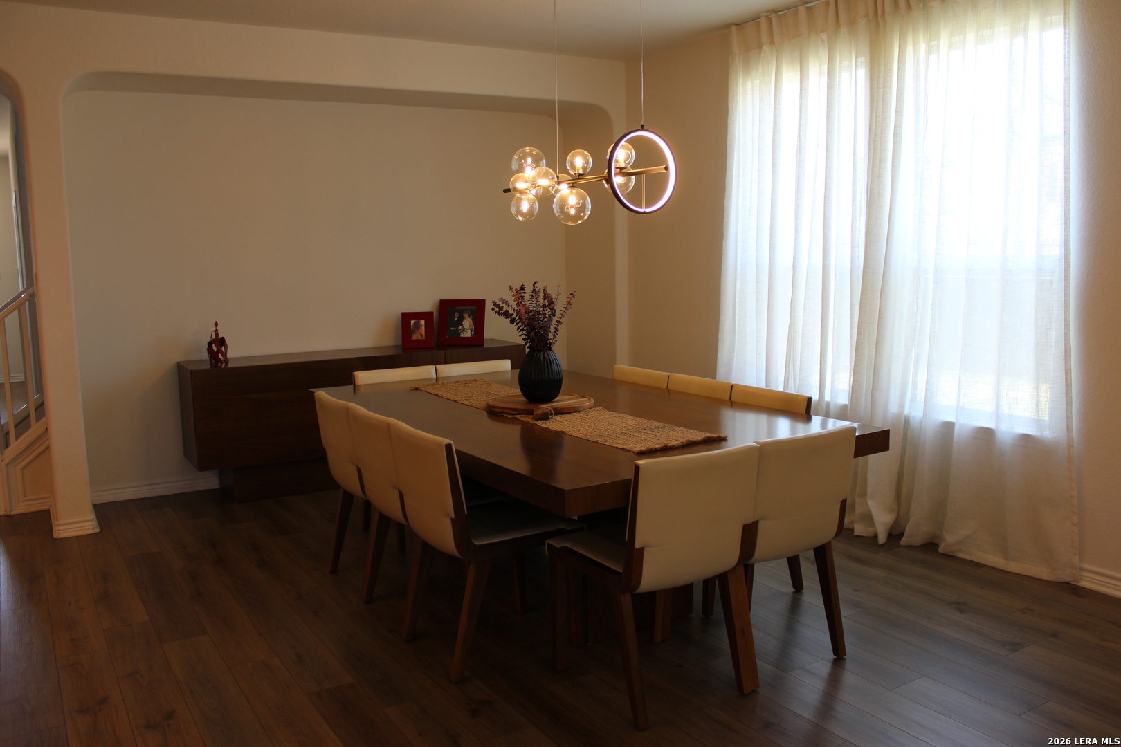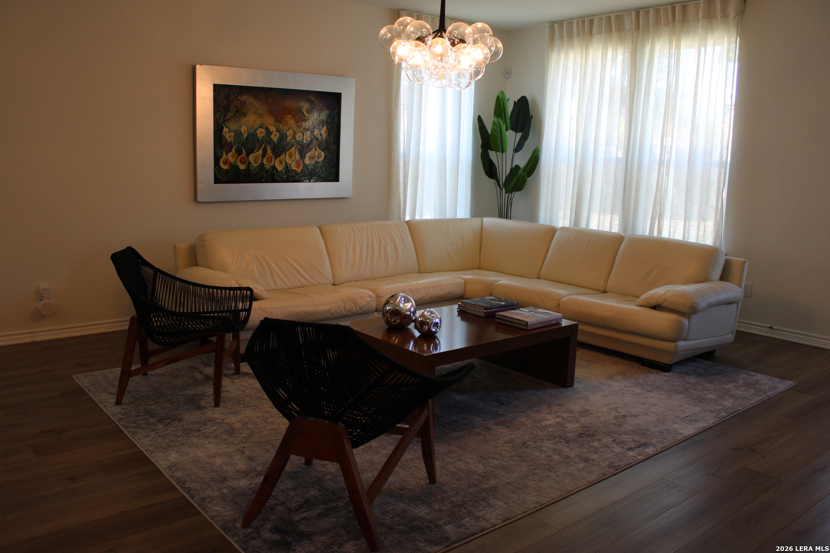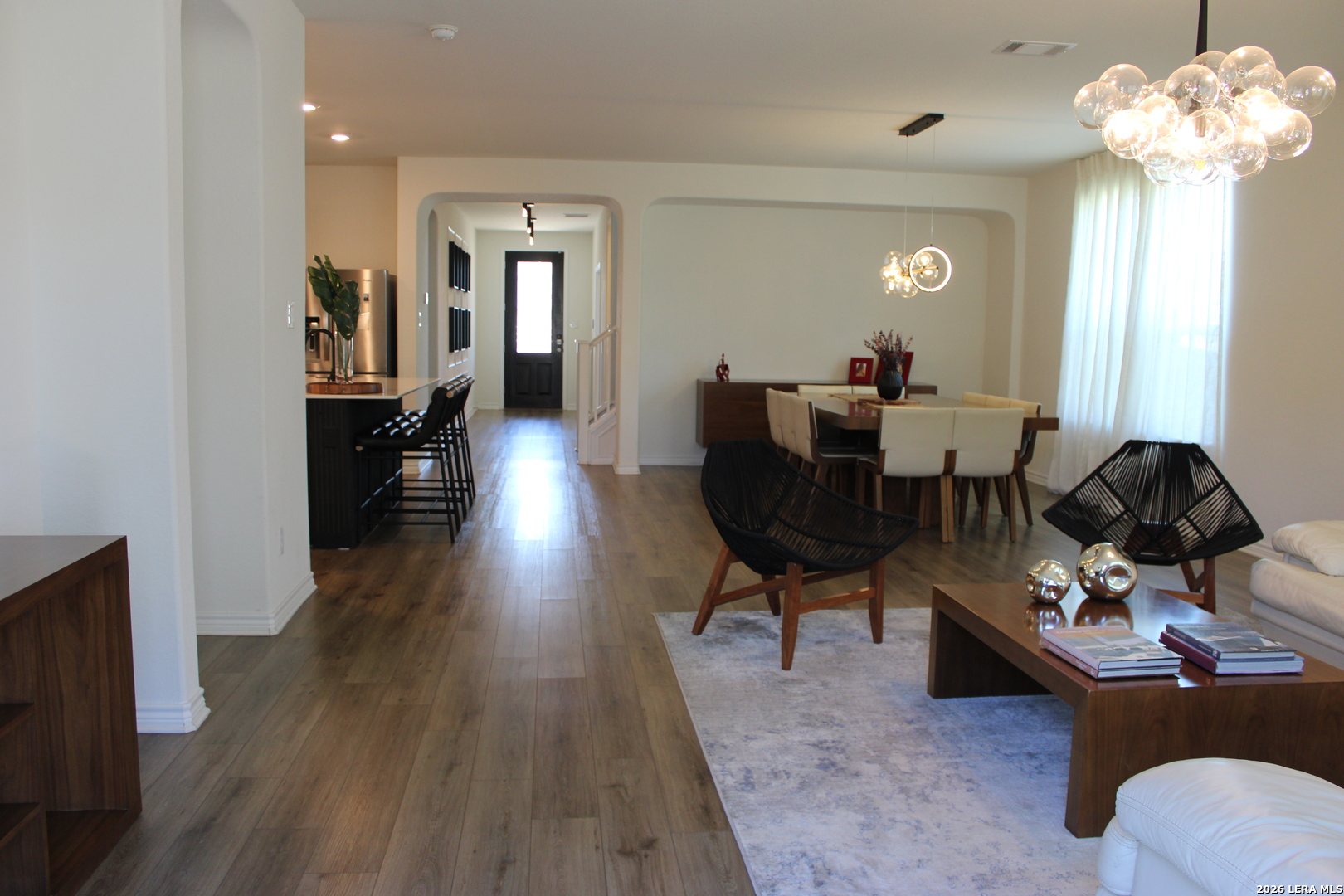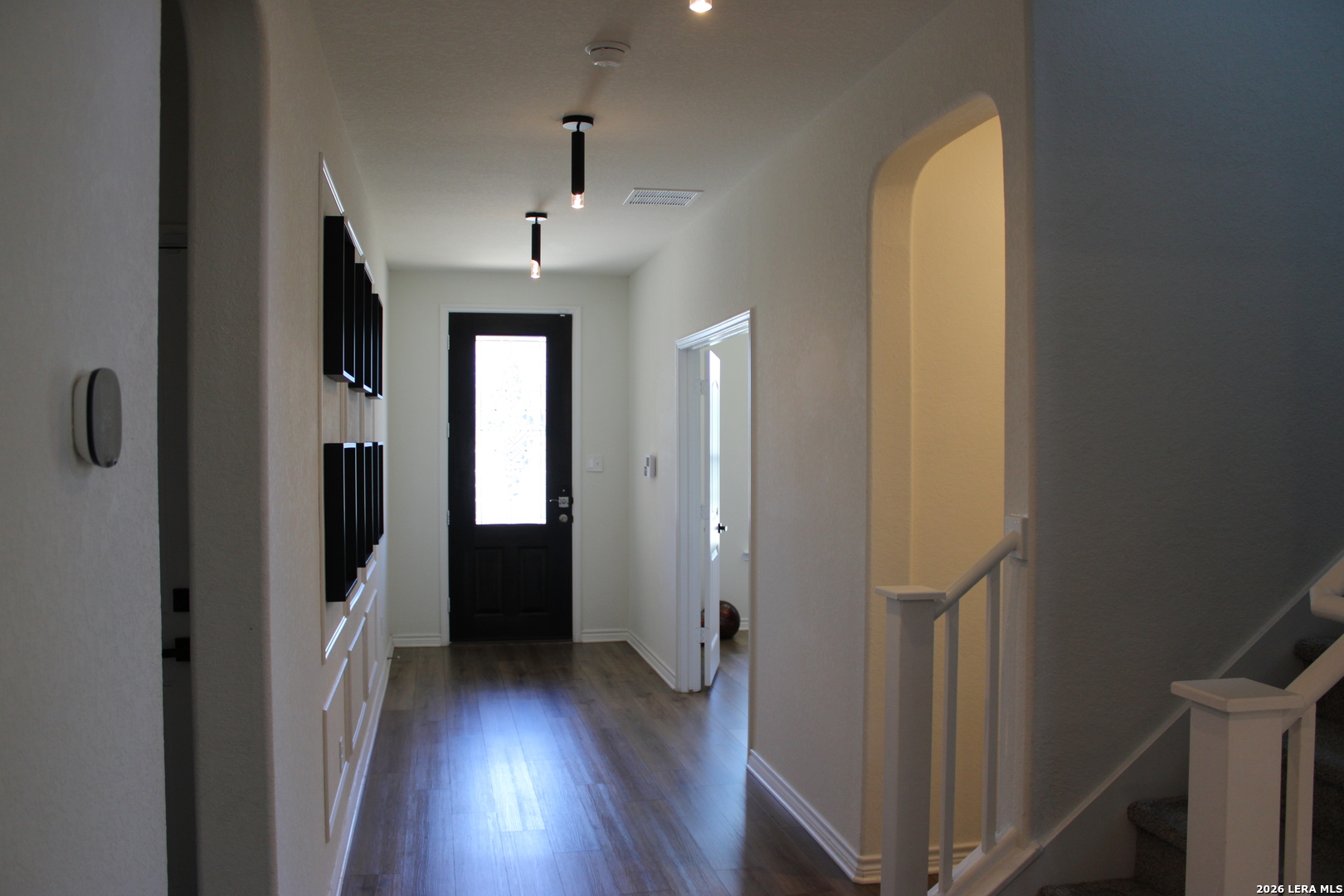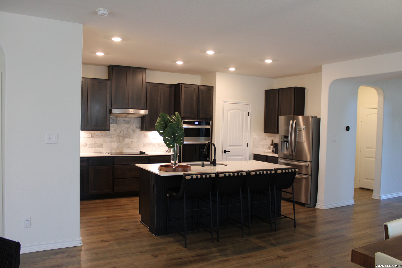 Welcome to this exceptional home in Canyon Crest at Evans! Located at 5203 Wolf Bane Dr in San Antonio, this beautifully built 2023 corner residence offers a perfect blend of modern design, smart features, and everyday comfort. This spacious home features 5 bedrooms, 3 full bathrooms, and 1 half bath. One of the bedrooms includes its own private bathroom, making it ideal for guests or family. Four bedrooms offer generously sized closets, providing ample storage throughout the home. A dedicated office space creates the perfect environment for working from home or studying. The expansive family room offers a comfortable setting for gatherings and relaxation. The kitchen has been thoughtfully upgraded with a stylish backsplash, enhanced cabinetry with soft-close drawers, and improved interior organization for added functionality. Smart home features include upgraded lighting and smart appliances such as the oven and microwave, bringing convenience and efficiency to your daily routine. Additional upgrades include modern light fixtures throughout and a whole-house water softener and filtration system for enhanced water quality. Situated on a corner lot, the property offers a large backyard with plenty of space to design your own outdoor retreat, whether that includes a patio, outdoor kitchen, or pool. The home also includes a two-car garage and is located in a quiet, well-maintained community. Residents enjoy access to a beautiful community pool and playground, providing great spaces to relax and enjoy outdoor activities. Conveniently located near hospitals, healthcare facilities, fitness centers, supermarkets, restaurants, and more, this home offers easy access to everything you need. This is a move-in ready property that combines space, functionality, and modern upgrades-an excellent opportunity to make it your own!