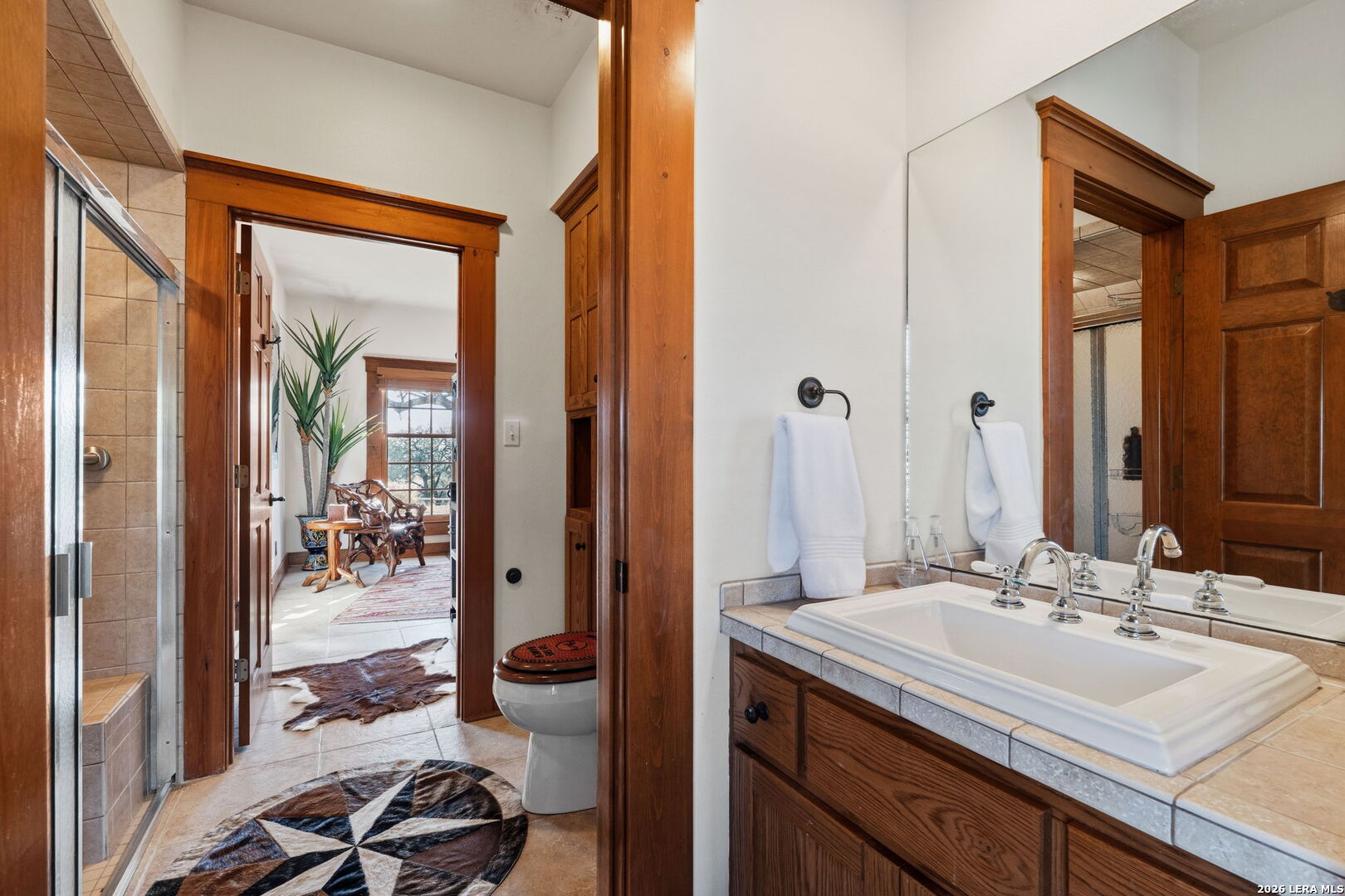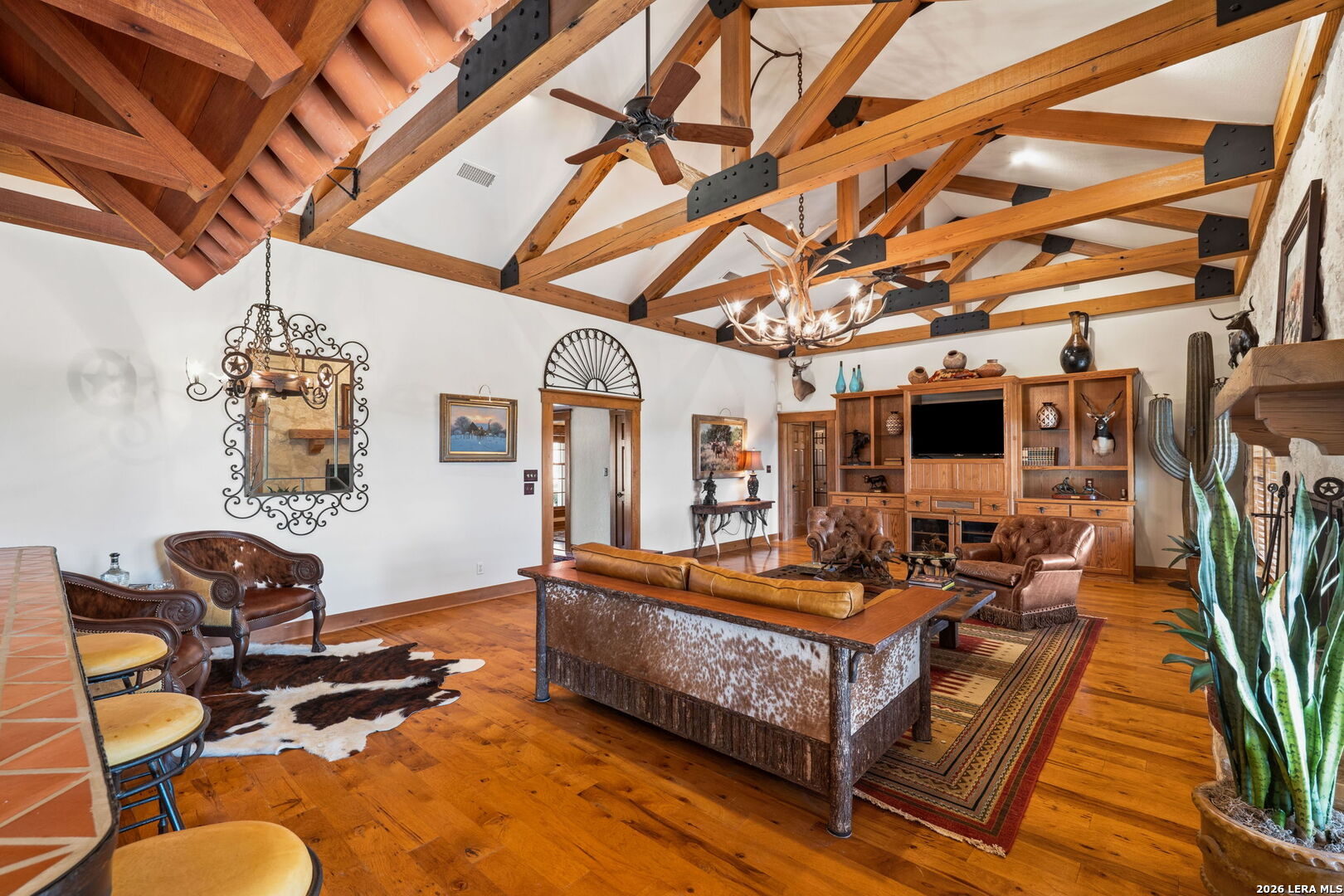Welcome to the Rocking K Ranch! Located between Comfort and Center Point, Texas, this exceptional 60 acre country estate embodies the beauty and tranquility of the Texas Hill Country. Whether seeking a tranquil personal retreat or a legacy family ranch, this property offers endless possibilities for those seeking a truly remarkable lifestyle. Situated within exclusive Bluff Creek Ranch, a gated community offering security and privacy, Bluff Creek Ranch is comprised of approximately 1,000+ acres of pristine land, providing both a serene backdrop and an intimate sense of community. The Rocking K Ranch presents a unique opportunity of living in a refined and secure community with equestrian, livestock, and hunting opportunities presenting the very best Texas Hill Country has to offer. This southwestern-style property offers breathtaking panoramic views, unmatched privacy, and limitless opportunities for outdoor adventure and an authentic western lifestyle. The centerpiece of the property is a beautifully constructed limestone main home situated on a hilltop overlooking the Guadalupe River Valley and panoramic views. Inside, the residence exudes western character with its classic Hill Country elegance. Exposed wooden beams stretch across a vaulted ceiling, while an antler chandelier commands attention in the spacious living area, complete with a stunning stone fireplace. Rich hardwood floors and southwestern-inspired decor complete the inviting ambiance. An expansive Owner's suite offers dual closets, views and outside entrance. The main home also features a formal dining room and a beautiful office with built-ins & closet, offering functionality alongside its western charm. Attached to the main house is a 2-bedroom, 1-bath guest quarters, complete with a small kitchenette and living space with fireplace offering a warm and welcoming space for family and friends. A matching attached 3 car garage flanks the other side of the home to provide architectural symmetry. The Texas Hill Country is a scenic region known for its rugged landscapes, abundant wildlife and relaxed lifestyle. Panoramic views sweep across the 60 acres of elm, live oak and cypress trees with a wet weather creek greeting you at the gated entrance. Additional structures include a large 50'x30' (approx) workshop w/ 1/2 bath, covered patio for views and storage room (12' x 40') + covered equipment storage shed. Completely fenced with a mix of Pipe Fencing and Ranch fencing, you'll enjoy the vistas and native wildlife, including Axis & White Tail Deer, Turkey and hogs. There are 2 wells to service the property. Bluff Creek Ranch offers quick access to the Guadalupe River which is perfect for fly fishing and tubing! Enjoy the abundance of nearby recreational activities including thriving Texas wineries and golf courses such as The Buckhorn, Riverhill & Comanche Trace. There are fun restaurants nearby such as High's Cafe & Zanzenburg Tavern, great shopping such as 8th St. Marketplace, East End Market and Central Provisions are nearby...Just 15 minutes to Kerrville, 8 minutes to Comfort, 30 minutes to Boerne, 30 minutes to Fredericksburg, less than 1 hour from San Antonio and 2 hours from Austin, the Rocking K Ranch is set up and ready for you.