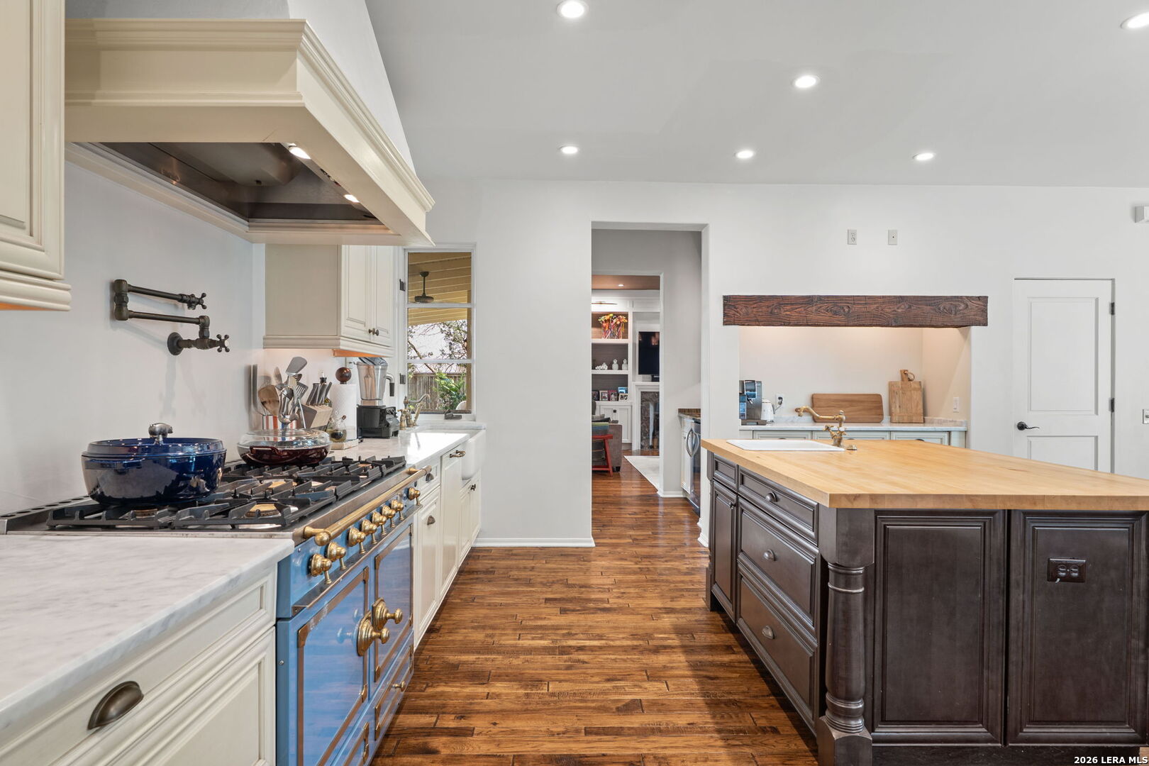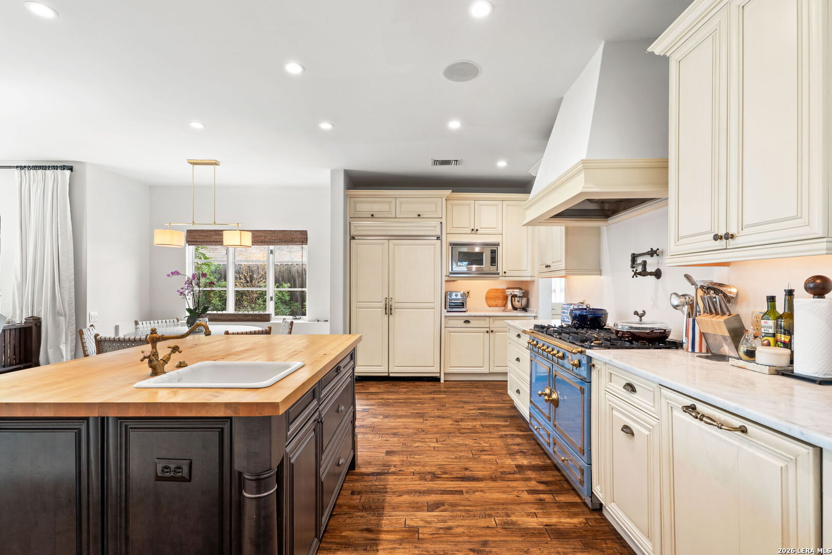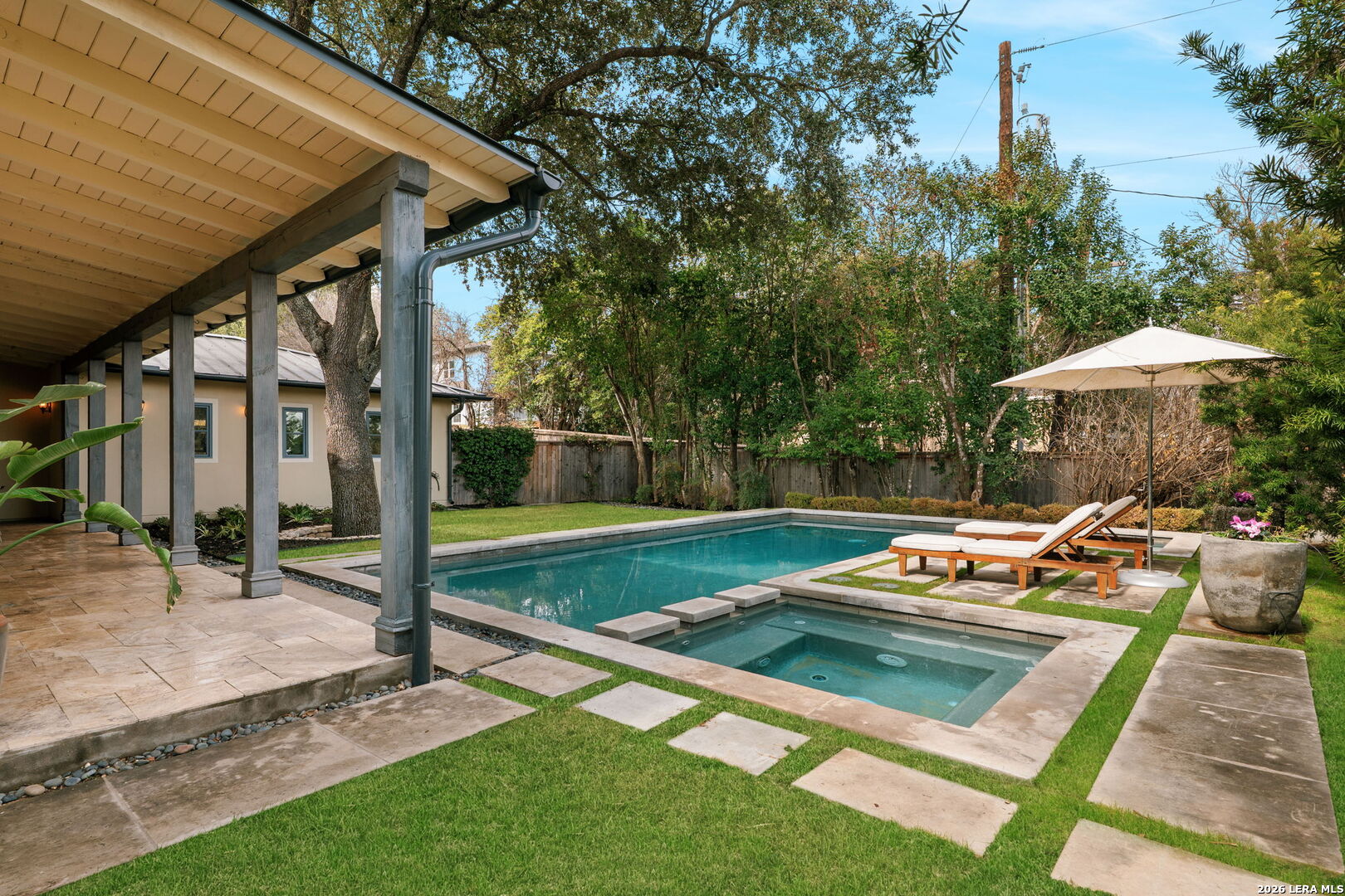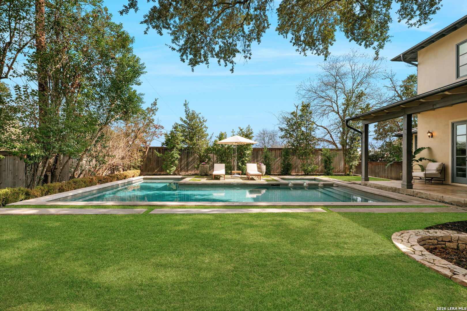 Located in prestigious Terrell Hills, this refined 4-bedroom, 3.5-bath residence offers three generous living areas and an effortless blend of elegance and comfort. The downstairs primary suite provides a private retreat with a beautifully appointed bath and serene backyard views. At the heart of the home, a designer kitchen anchored by a striking La Cornue range elevates both everyday living and entertaining. Expansive interiors open to a resort-style backyard featuring a stunning pool - creating the ultimate setting for sophisticated Texas living.