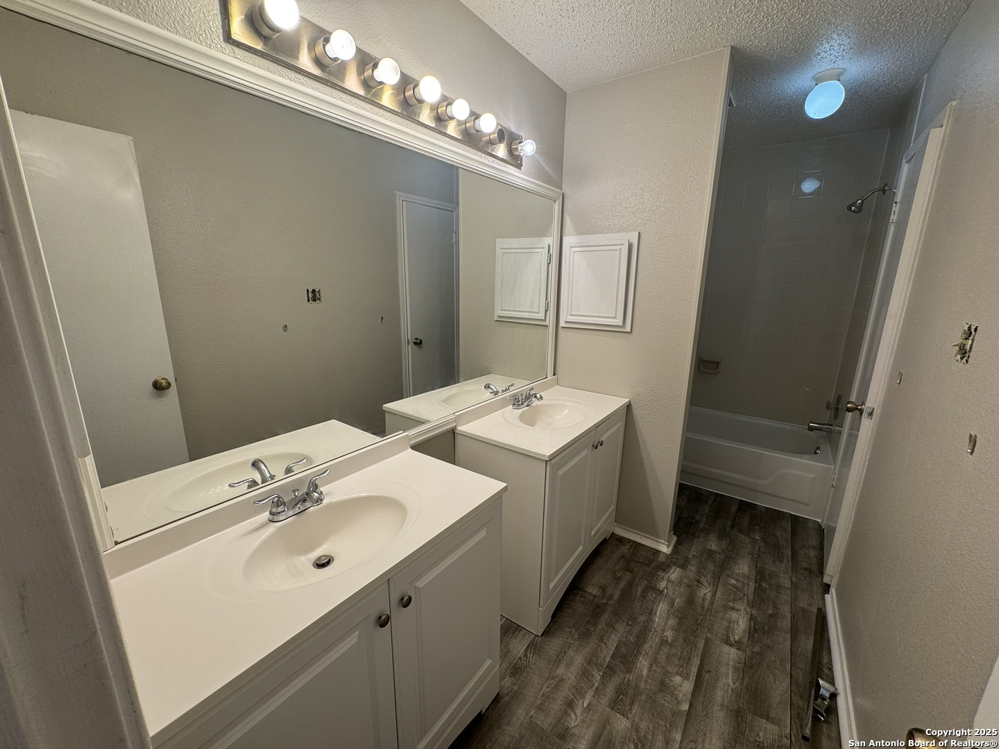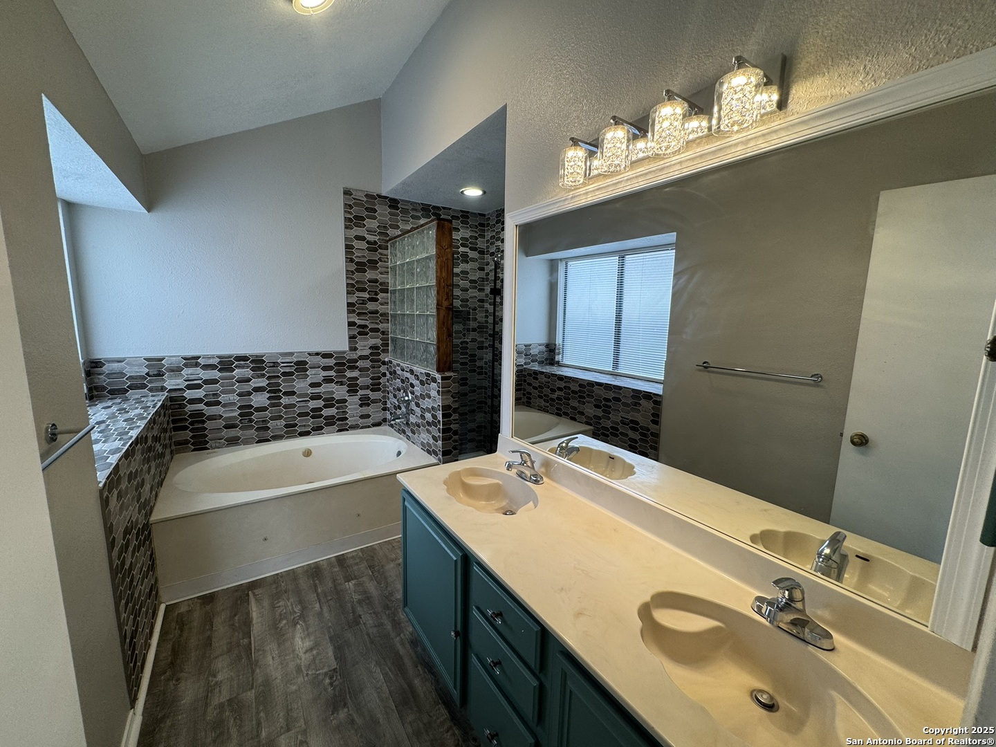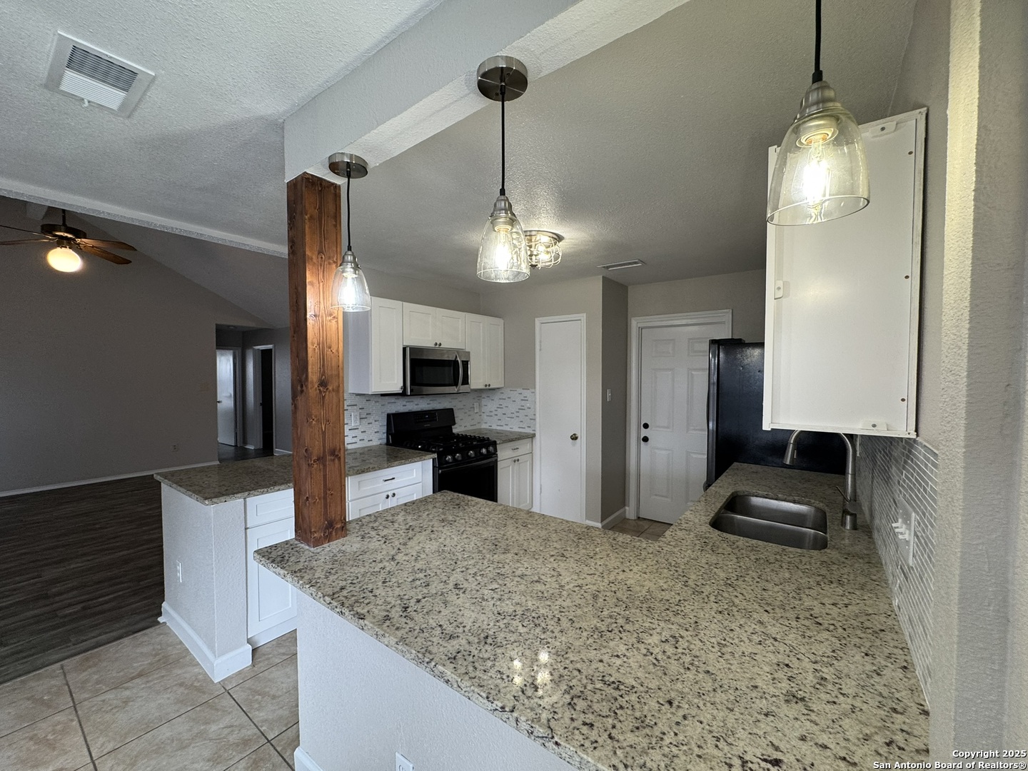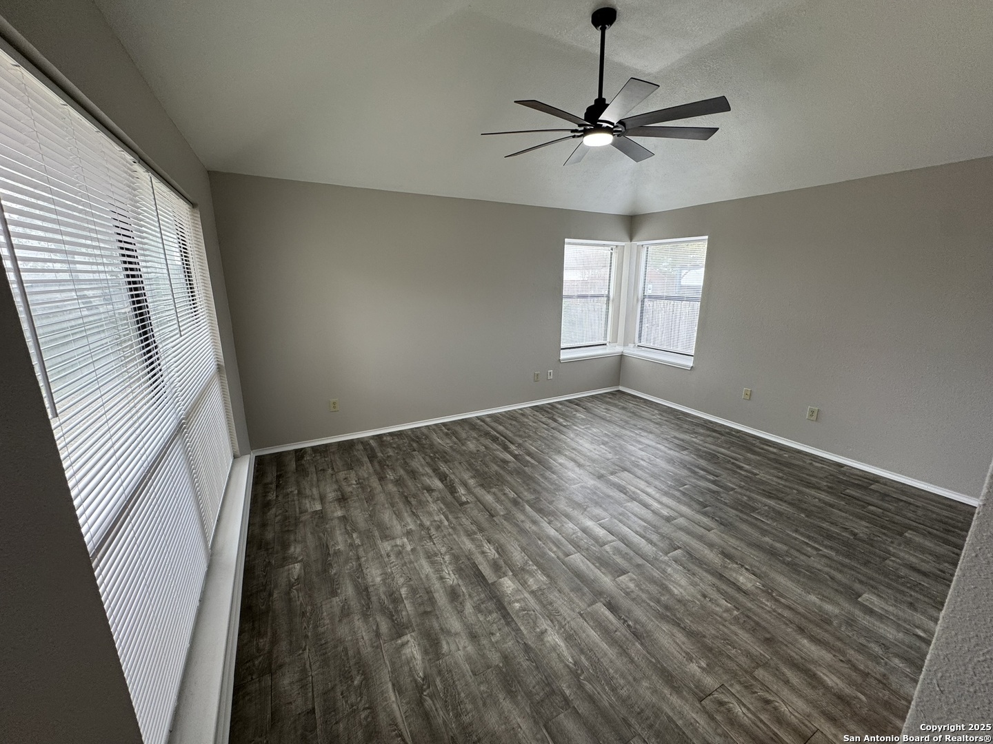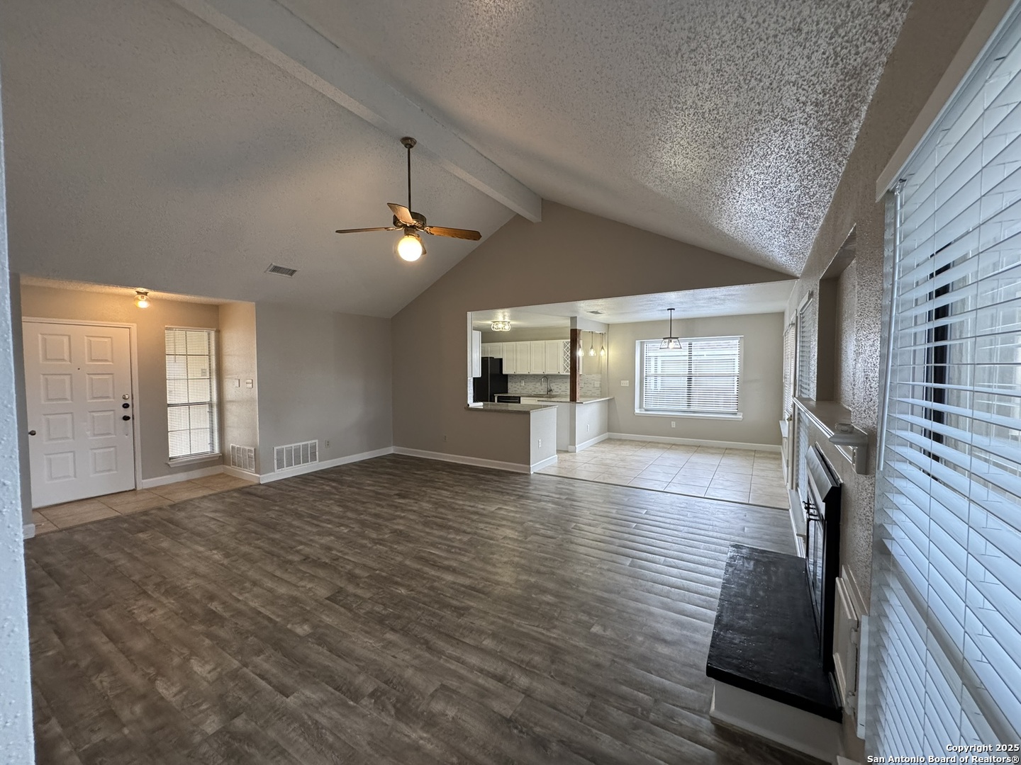 Ready for move-in! This very well-maintained 3-bedroom home in East San Antonio offers a spacious and inviting layout flooded with natural light. You're welcomed by a large living room that flows seamlessly into the dining area and kitchen, all centered around a beautiful fireplace that anchors the open-concept space. The kitchen comes fully equipped with all appliances included in the rent, and you'll find washer/dryer connections conveniently located in the garage. The generously sized master bedroom features an en-suite bathroom with a relaxing soaking tub and walk-in closet. The two additional bedrooms share a separate bathroom with a double vanity, providing ample space, convenience and storage. Step outside to enjoy a covered deck overlooking the nicely sized backyard. Additional, two car garage for extra storage right off kitchen.