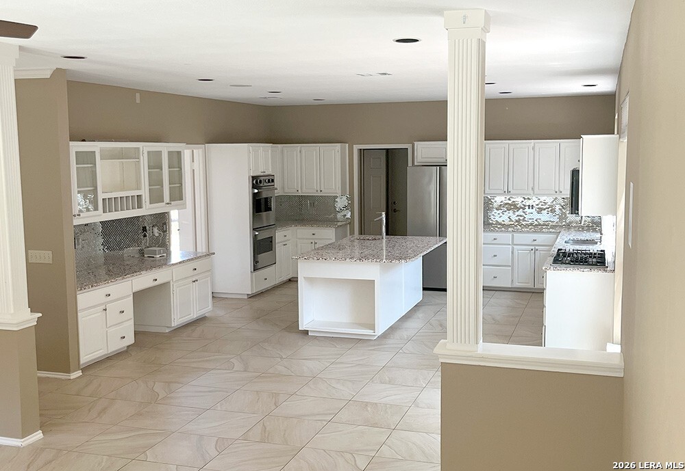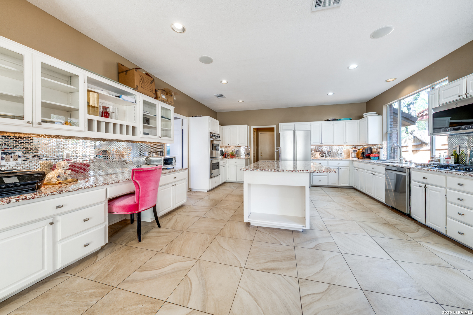 Located in the exclusive guarded community of Mission Ridge, this elegant home offers an open floor plan with 4 bedrooms, 3.5 baths, and a study that may serve as a 5th bedroom. The spacious living area with fireplace flows into a well-appointed kitchen featuring a large center island, abundant prep space, and gas cooking. The first-floor primary suite includes two oversized walk-in closets and a luxurious bath with dual vanities, marble flooring, and a glass block shower. Step outside to enjoy your own private swimming pool, perfect for relaxing or entertaining. Additional highlights include a new A/C installed in 2025 and reflective attic lining for enhanced energy efficiency and year-round comfort.
