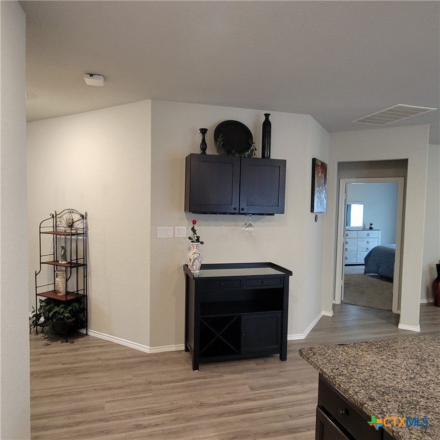 Beautiful home in the Hidden Trails subdivision. This home has an open floor plan with many extras. The home greets you with a long foyer as you enter the home. A large master bedroom and bathroom with a large master closet. The master-living area allows for relaxation in the large soaking tub. It has two secondary bedrooms and a full bath. The open floor plan provides a beautiful kitchen, dining and living room combo area. It has a bar area that is great for entertaining family and friends. It comes with a small, covered porch out back with an extended brick patio and a large backyard with plenty of space for BBQ's or gatherings. A small garden shed for storage. The home also has a modern sprinkler system front and back, a tankless gas water heater and whole house water softener. It also has amenities to set up a smart house system of your choice. The house has been recently re-roofed with high quality architectural shingles with rain gutters added to front and back. The spacious two car garage has a shelf area for extra storage. There are plenty of amenities for you to enjoy in the Hidden Trails Subdivision with multiple parks, pools and trails. There is also shopping and dining withing driving distance.