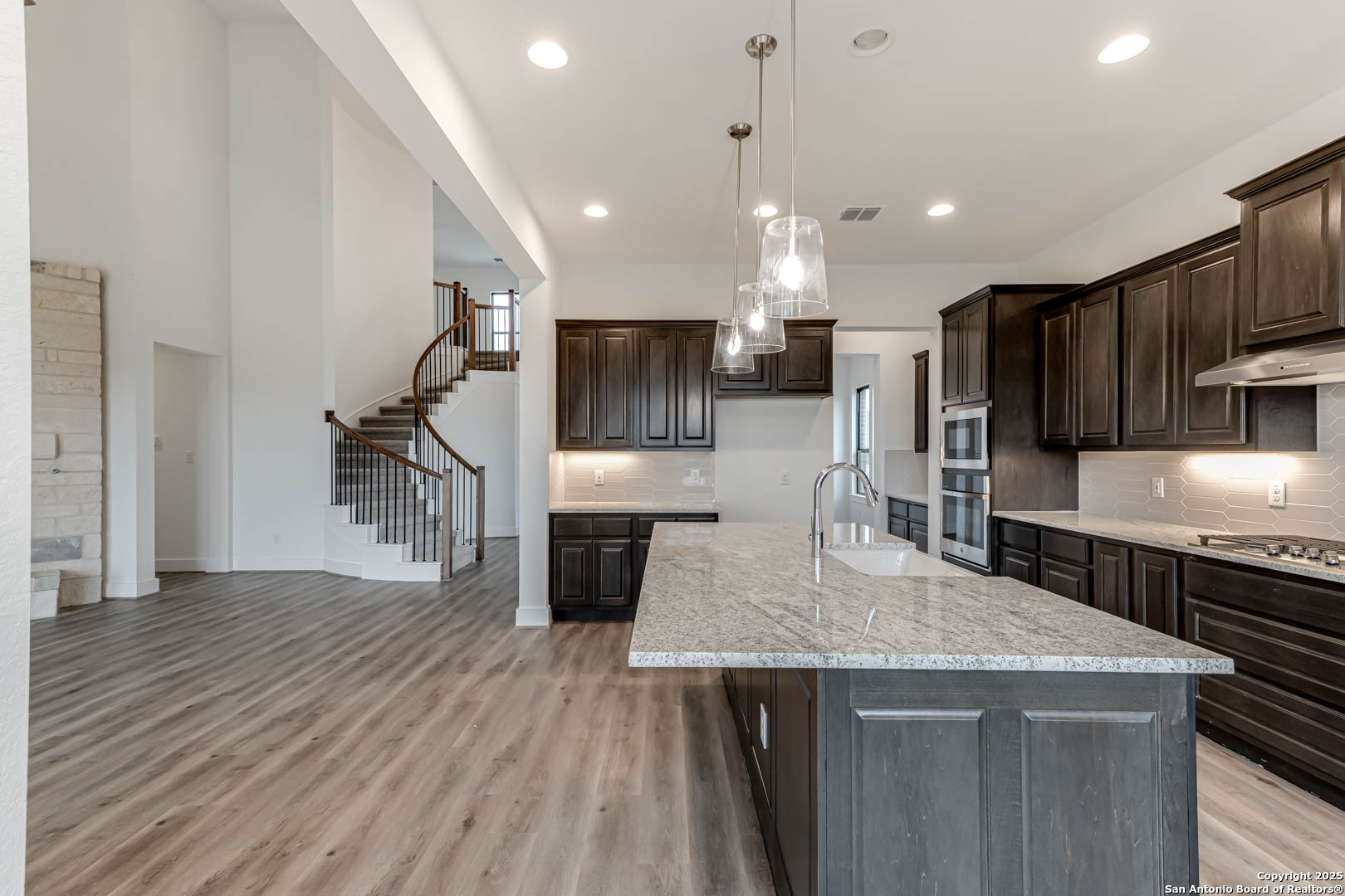 Welcome to this stunning 2-story home, boasting impressive curb appeal and nestled on a spacious 0.66-acre lot. The residence features a 3-car garage and high ceilings that create an inviting atmosphere throughout. A spectacular curved stairwell serves as a striking focal point as you enter. Step outside to the extended covered patio, perfect for entertaining or enjoying peaceful evenings. The gourmet kitchen is a chef's delight, equipped with an upgraded 36" cooktop and a convenient built-in desk in the