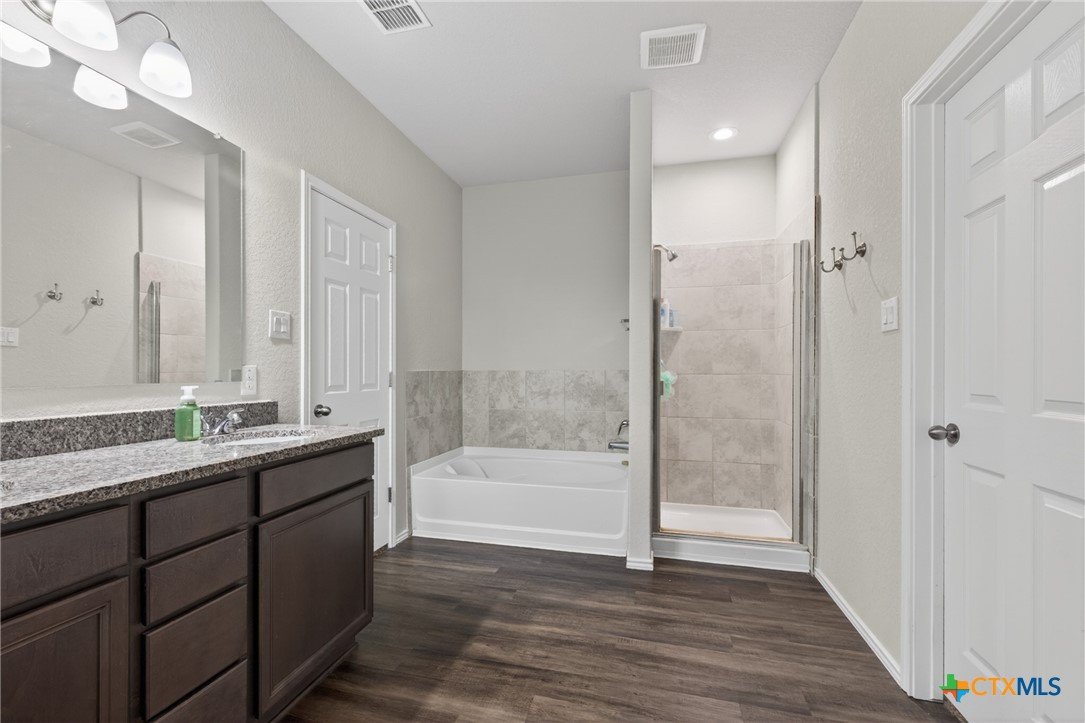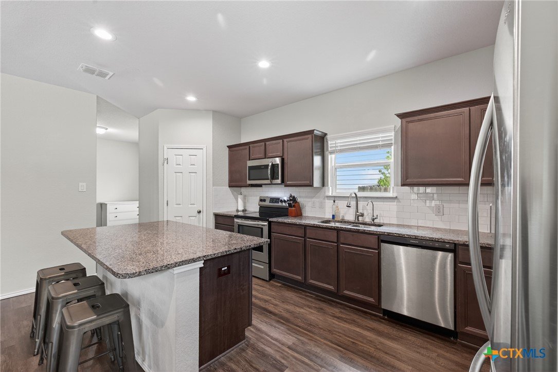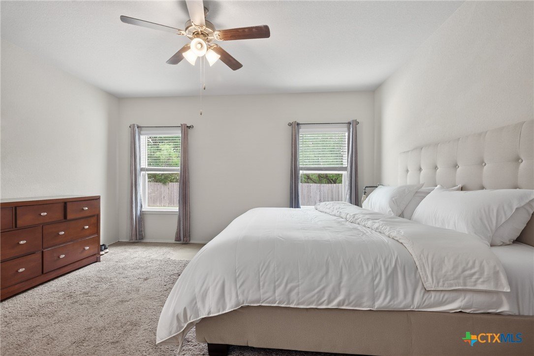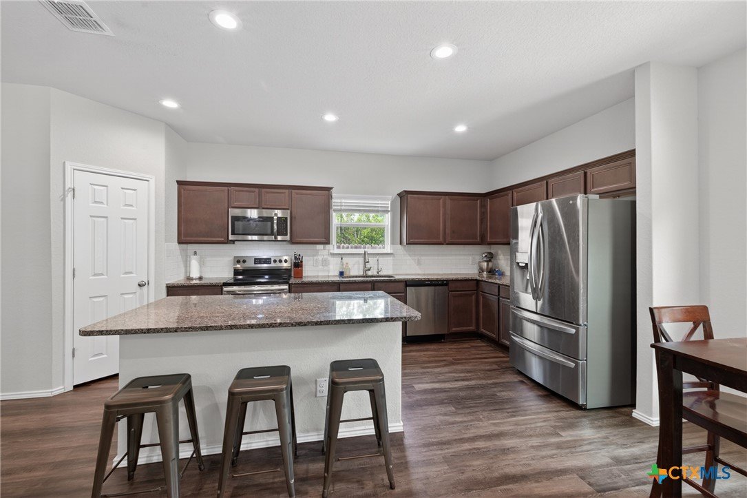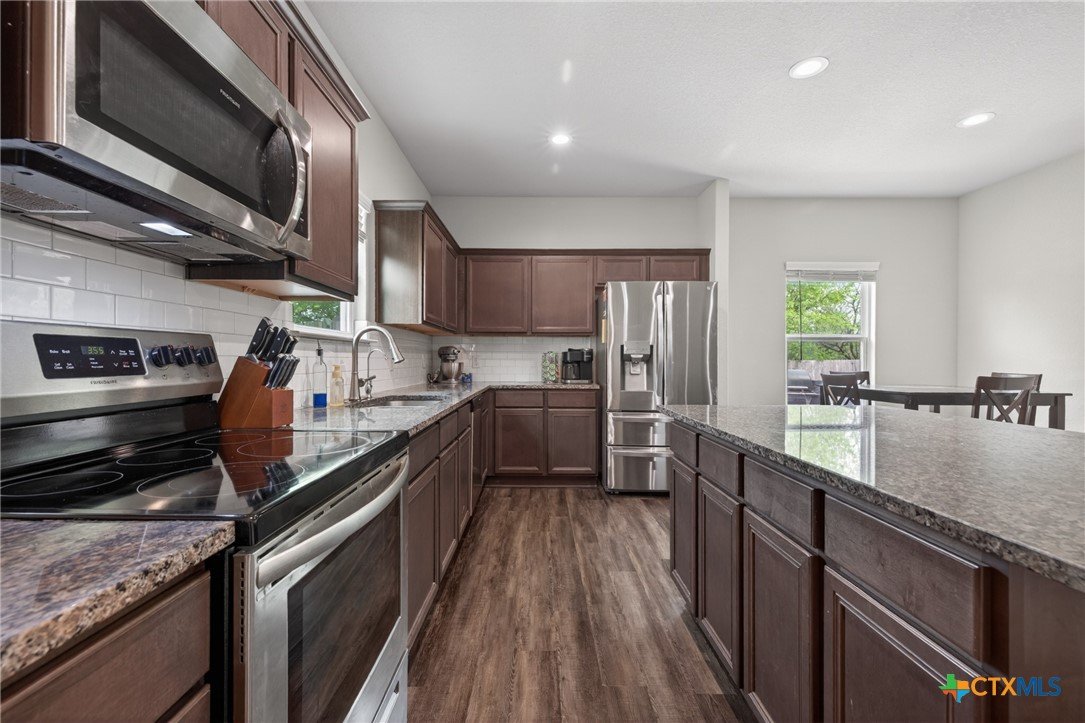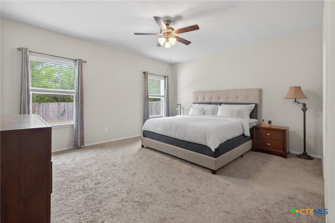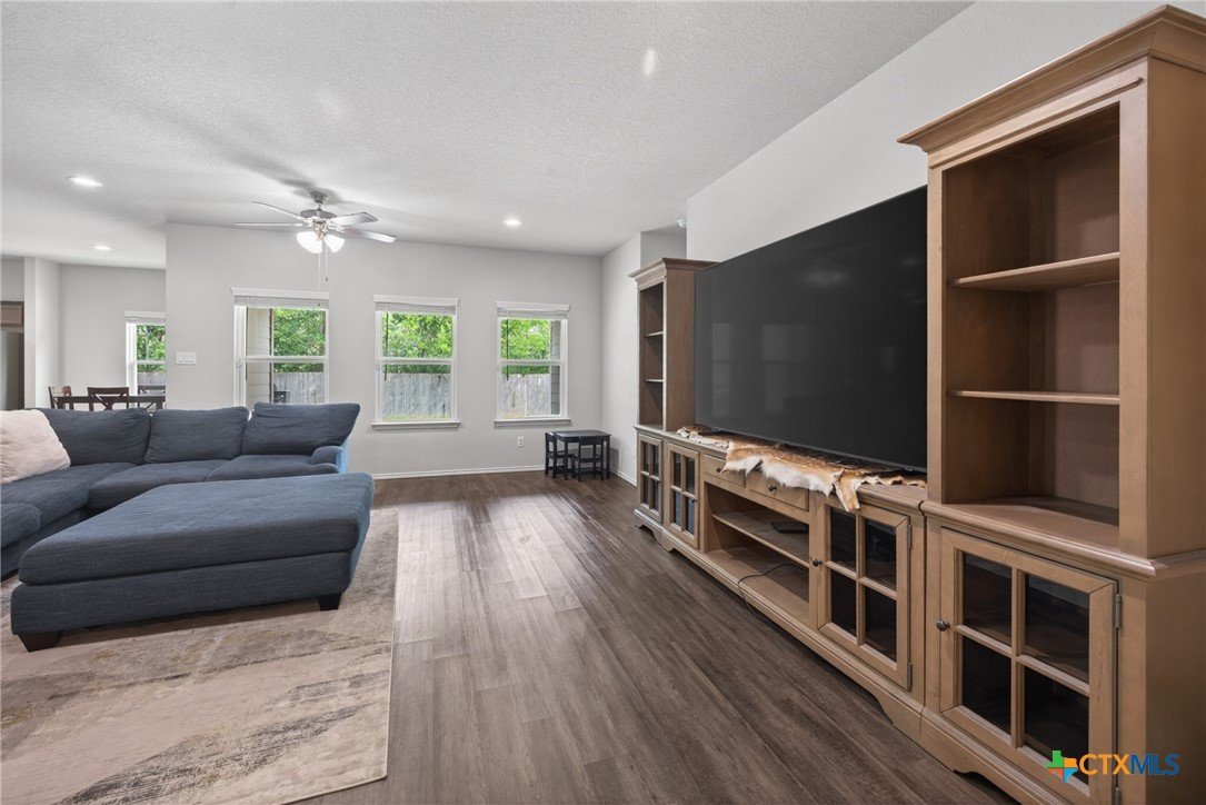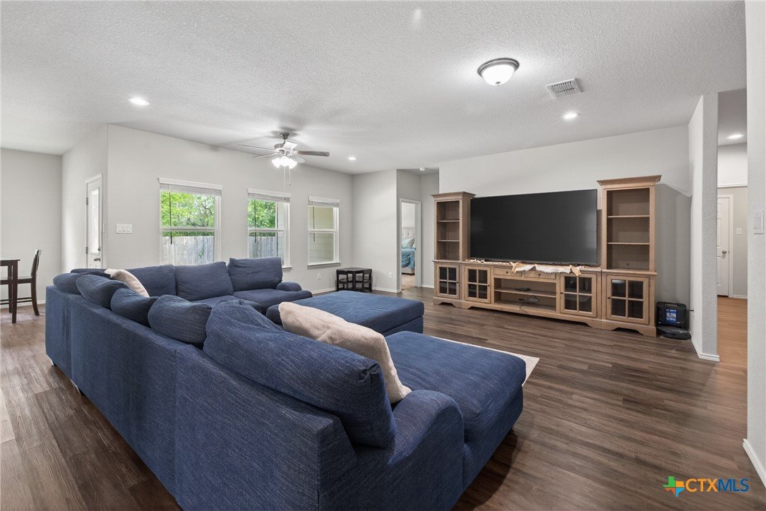 Discover modern comfort and effortless style in this beautifully maintained 3-bedroom, 2-bath home offering 1,966 square feet of thoughtfully designed living space. Built in 2019, this move-in-ready home features an open-concept layout that creates a bright, welcoming atmosphere perfect for both everyday living and entertaining. At the heart of the home, the spacious kitchen shines with granite countertops, an oversized island, abundant cabinetry, and generous prep space—ideal for gathering with family and friends. Two dining areas provide flexibility for casual meals or hosting special occasions with ease. The split floor plan offers privacy and functionality, with a peaceful primary suite designed as a relaxing retreat. Two additional bedrooms provide plenty of space for family, guests, or a home office. Storage is abundant throughout the home, giving you room for everything you need. Step outside to enjoy a large backyard with a covered patio, perfect for outdoor entertaining or quiet evenings at home. There are no direct back neighbors so it allows for privacy and the feel of being in the country with the convenience of being in town. Ideally located near everything New Braunfels has to offer, including downtown, Gruene Historic District, and the Creekside Town Center shopping area. Don’t miss your opportunity to make this exceptional home yours—schedule your showing today!
