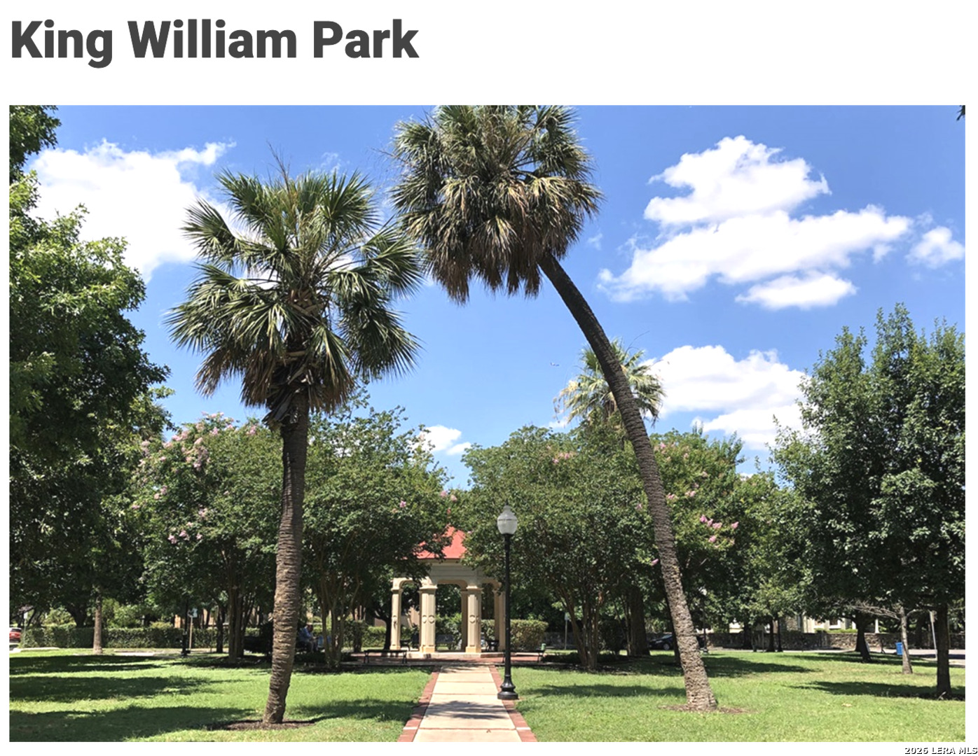 This property is located in beautiful Historic King William district, a short walk to the San Antonio River Walk, cross over bridge to Blue Star Art Complex or hike King Williams Park and bike trails near Roosevelt Park, many area restaurants off South Alamo Street, and other attractions for entertaining. USTA Southwest Campus a short drive. Newly renovated apartment with original wood floors, high ceiling, Granit counter tops, stainless steel appliances, washer/dryer already installed. Great covered parking space for all residents. Quite and family friendly.