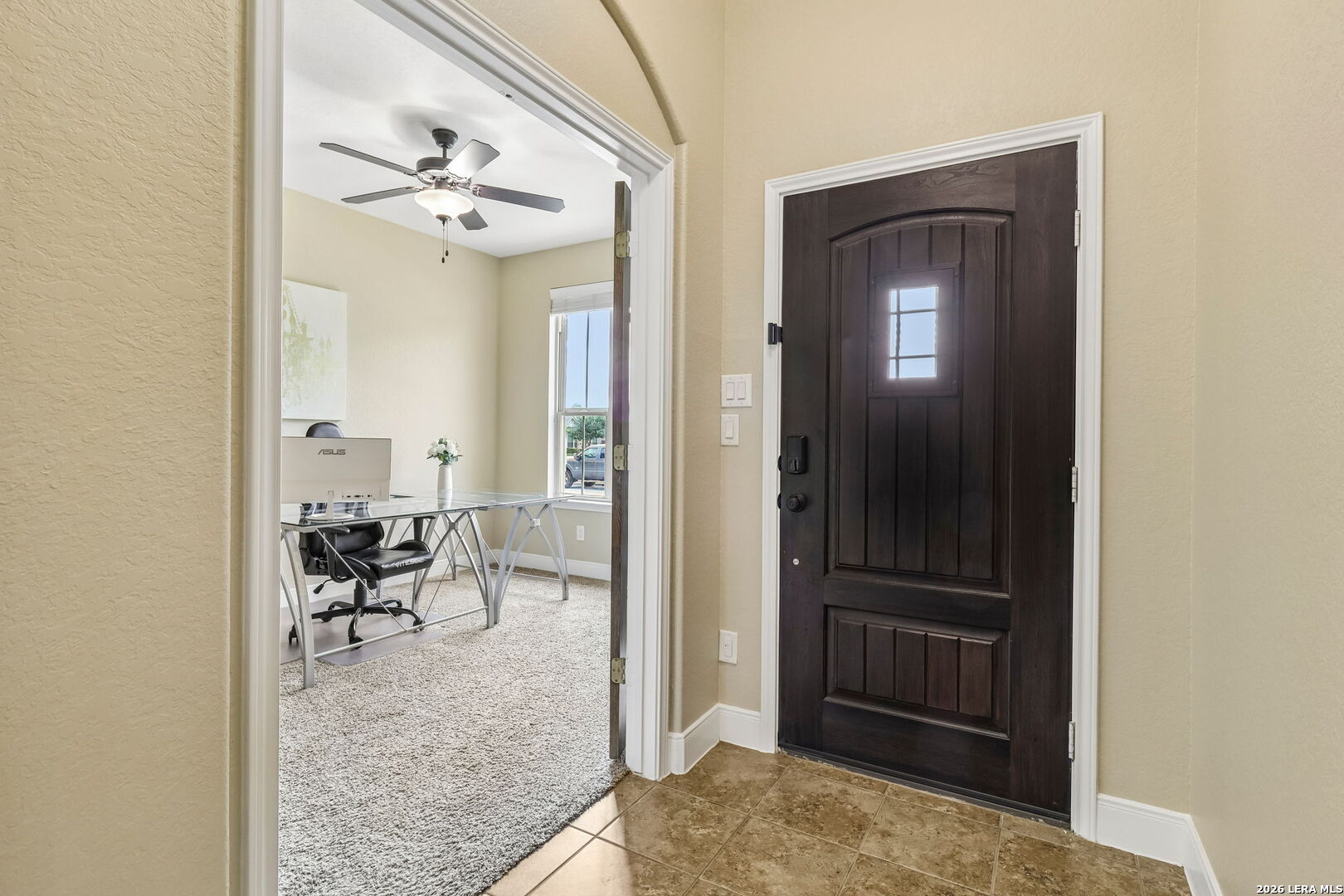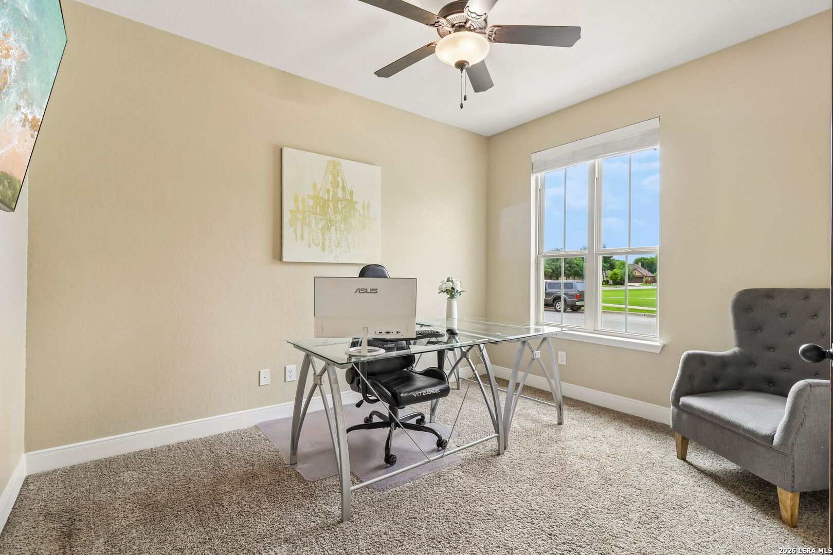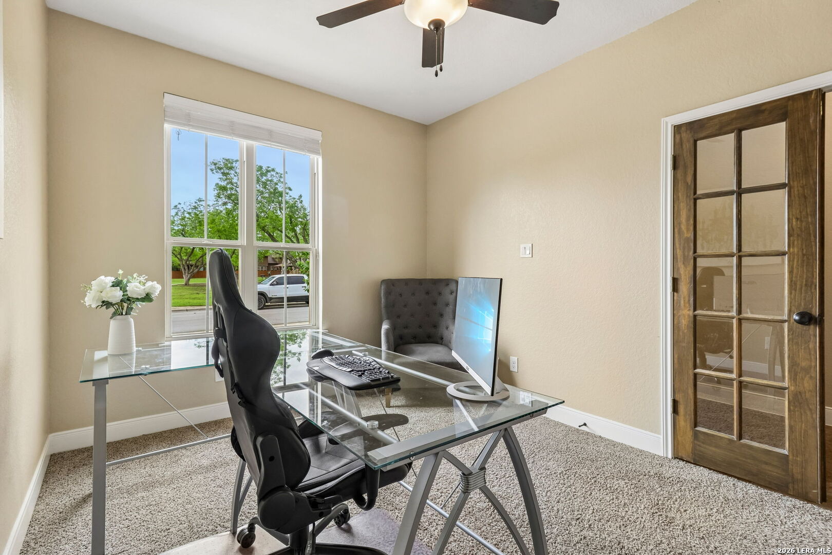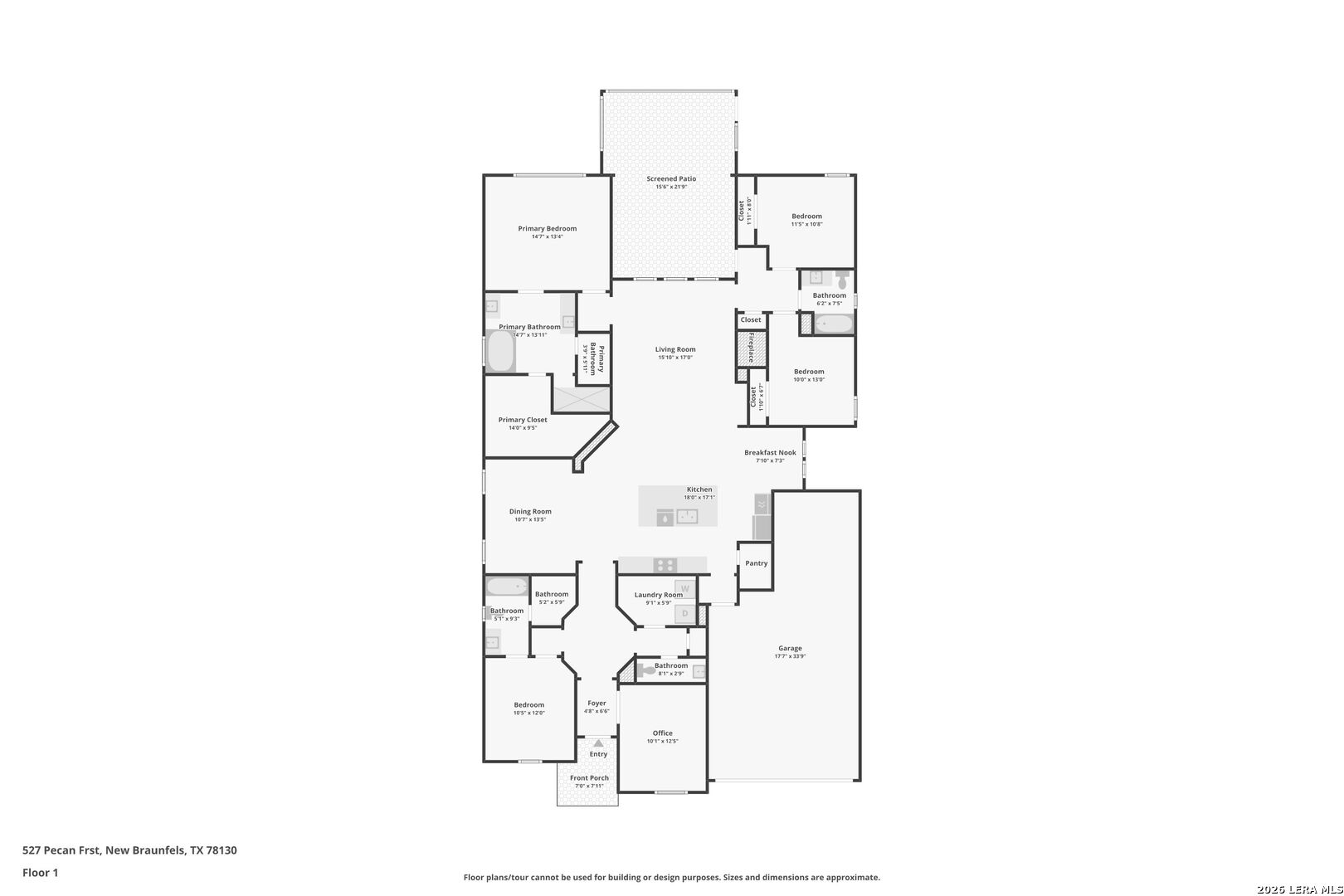 Sellers are offering a $10k buyer credit for acceptable offers. Some homes check a few boxes. This one checks all of them and then adds a massive enclosed patio just to show off. Nestled in one of the most popular neighborhoods in east New Braunfels near Countyline Road, this rare single-story stunner offers 4 bedrooms, 3.5 baths, a dedicated home office, and a tandem 2.5-car garage, all without a single staircase in sight. The owners have treated this home like the gem it is. Thoughtful upgrades include professionally improved drainage on both sides of the property, fresh sod, beautifully enhanced landscaping, and a sprawling enclosed patio built for everything from Sunday football to Friday night dinners under the stars. Step outside and you are looking directly at the neighborhood park. Walk or bike to Fischer Park, grab a cup at On the Grind Coffee, or catch dinner at the beloved Texas Bistro, all just minutes from your front door. IH-35 is a quick 5-minute drive, putting San Antonio and Austin well within reach. The Guadalupe River is just around the corner for tubing, kayaking, and quintessential Texas Hill Country living. Students attend the highly acclaimed New Braunfels ISD schools, consistently recognized for academic excellence. One-story homes with this floor plan, in a neighborhood this connected and walkable, rarely hit the market. This one is ready for its next chapter. Do not wait.