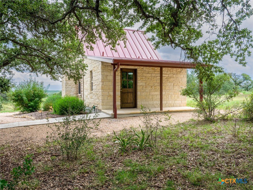 Welcome to your serene retreat in a gated community! This exquisite 2-bedroom, 2.5-bath custom home boasts a study and a loft, offering ample space for both relaxation and productivity. Nestled on 6.25 acres, you'll enjoy breathtaking views and the charm of exotic wildlife roaming freely in your own backyard. The heart of this home features an open-concept living area that seamlessly connects to a gourmet kitchen, perfect for entertaining. The spacious primary suite is a private haven, complete with an en-suite bath w/jacuzzi tub &walk in shower, a sitting area w/fireplace, a private screen porch directly off the bedroom, & a massive master closet. The additional bedroom offers comfort and versatility, and gives room for guests in the main house. Step outside to discover an incredibly charming 1-bedroom, 1-bath guest house, complete w/a full kitchen, & a full bath w/ a walk-in shower—ideal for visitors or as an additional private space. The property also features a 36,000 gallon rainwater collection system as well as a 35GPM well, ensuring sustainability while minimizing your environmental footprint. For hobbyists or those needing extra storage, the 3-car garage doubles as a workshop, and the upstairs game room provides the perfect setting for leisure activities. While you’ll feel miles away from it all, this home is conveniently located close to town, offering the best of both worlds: tranquility and accessibility. Don’t miss this rare opportunity to own a piece of Hill Country paradise!